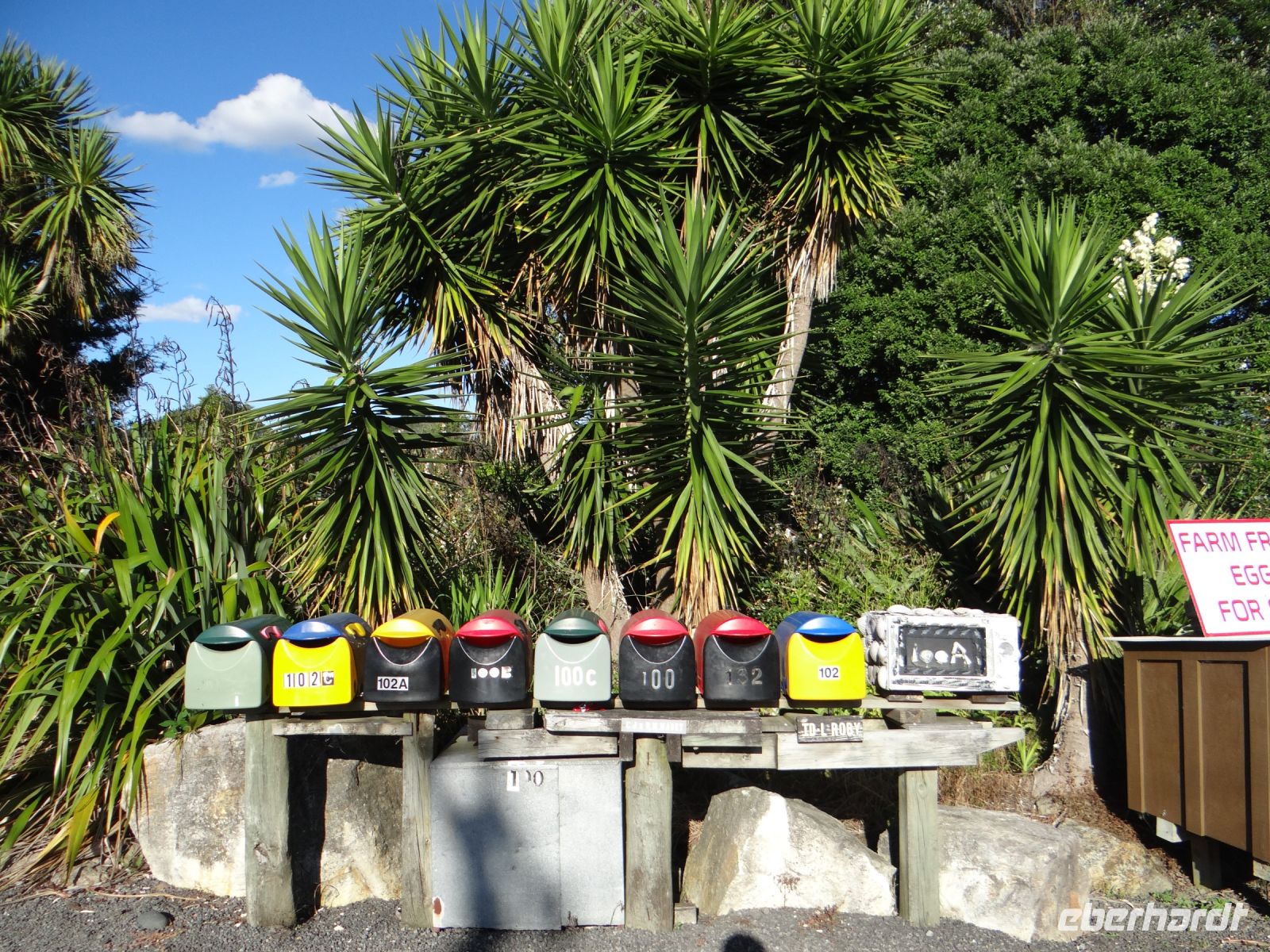 Unser Highway führt mitten durch den Ort Wellsford, wo wir eine Pause machen. Gegenüber ein Gedenkort für die Gefallenen. Vom Café Cozy aus hat man den Blick auf das, was auf der Straße vorbeikommt.