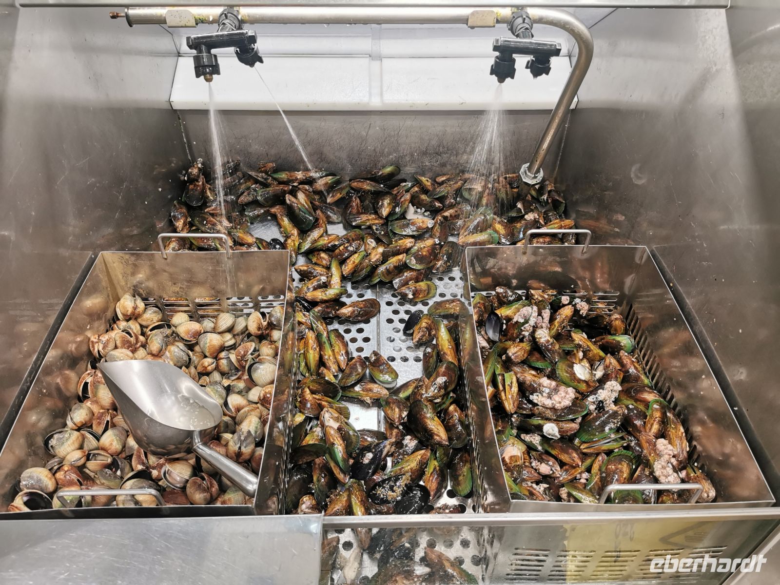Das Wasserspiel zeigt Fontänen, Licht und Farben und auf Wasserschleiern werden Laserprojektionen gezeigt. Ganz nett. Doch die beiden Shows waren die Rennerei nicht wert. Da hätten wir uns lieber in Ruhe frischgemacht, wären in Ruhe zur Marina Bay gelaufen, hätten auf dem Weg was gegessen und die Wassershow aus der Entfernung betrachtet. Und wir hätten keinen verloren. Nun sind wir doch ein wenig hungrig und kehren auf dem Rückweg in einer Zeile von Garküchen ein, um dann erschöpft und gut gesättigt im Hotel in unsere Betten zu sinken.