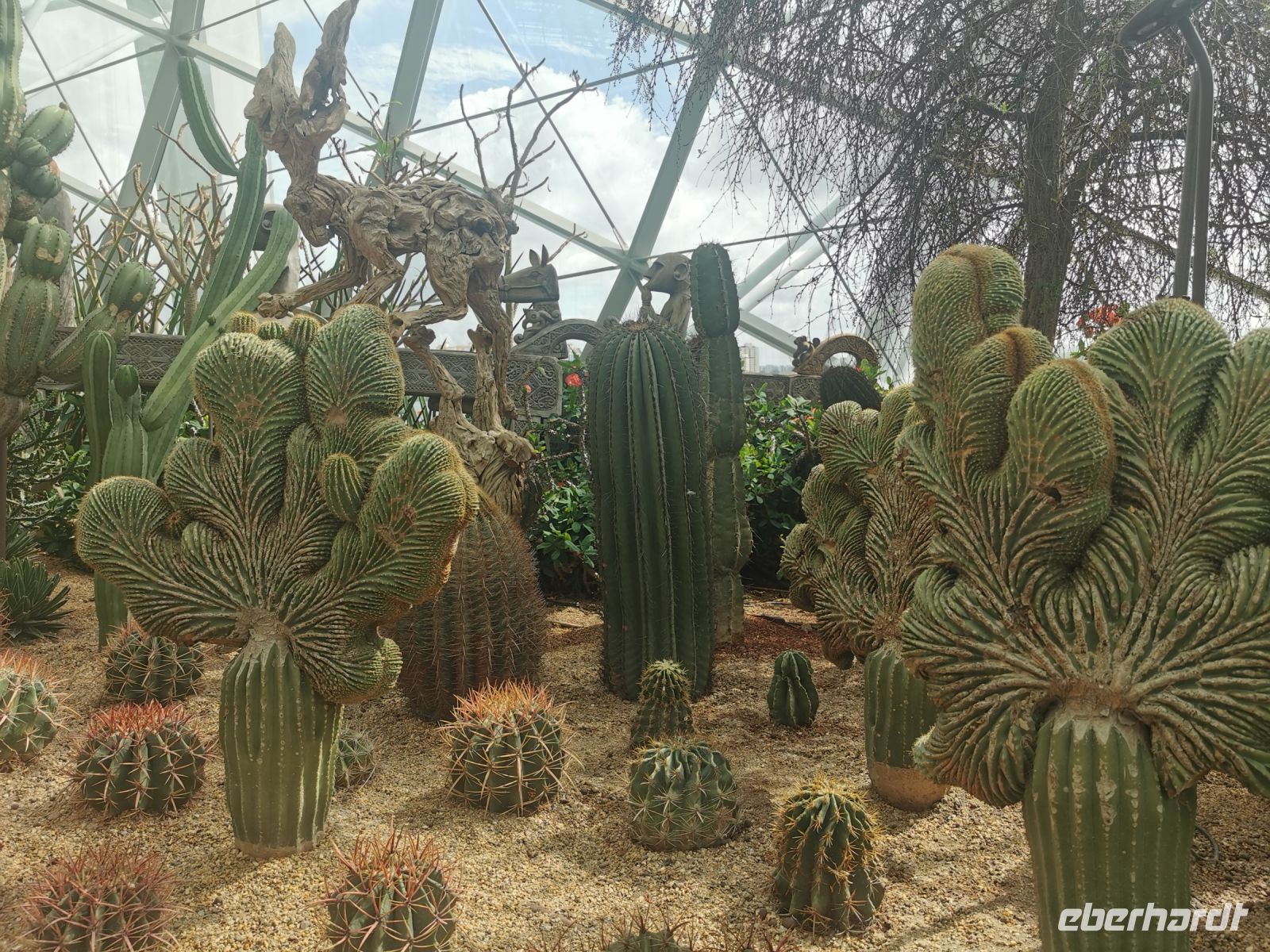 Morgens fahren wir mit einem Großraumtaxi zum Flower Dome. Das Gelände, das wir letzte Nacht gesehen haben, zeigt sich nun in einem ganz anderen Licht: Es ist ruhig und hell und wir sind unter den ersten Besuchern. Im Flower Dome sind verschiedene Klimazonen repräsentiert, wie die mediterrane Pflanzenwelt oder die Trockenzone. Eine Sonderausstellung ist der japanischen Kirsche und ihren unterschiedlichen Arten gewidmet.