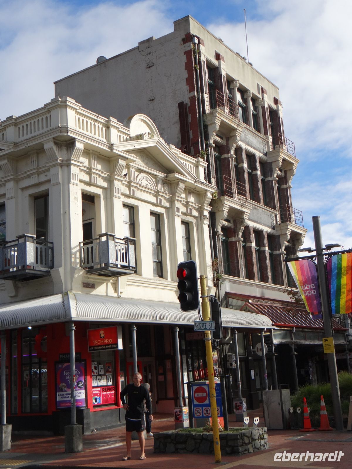Es geht durch die Stadt zum „Octagon“, dem zentralen Platz. Mit Häusern aus der Entstehungszeit zeigt der Ort ein gewachsenes Bild unterschiedlicher Baustile, was sie attraktiv macht.