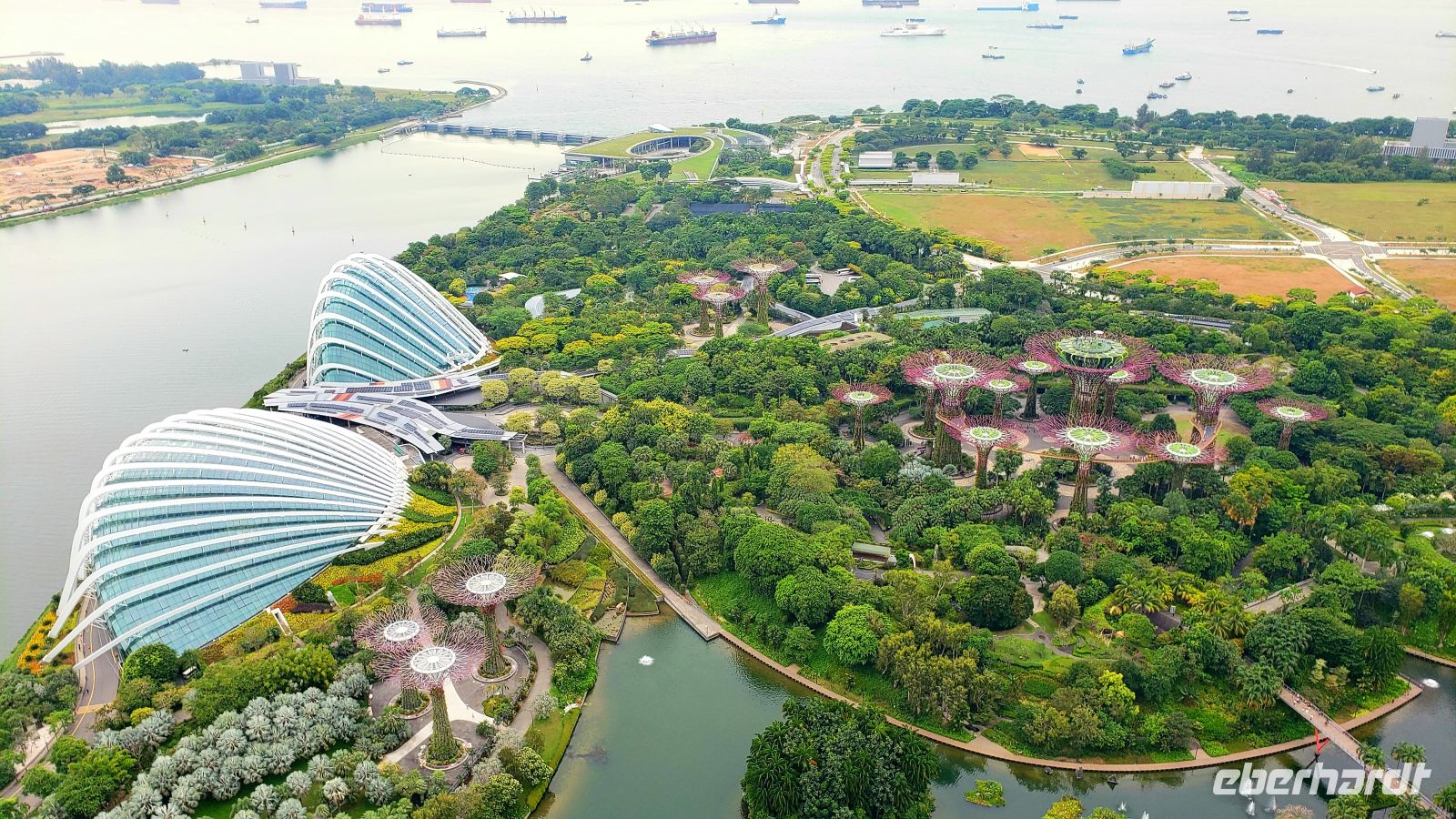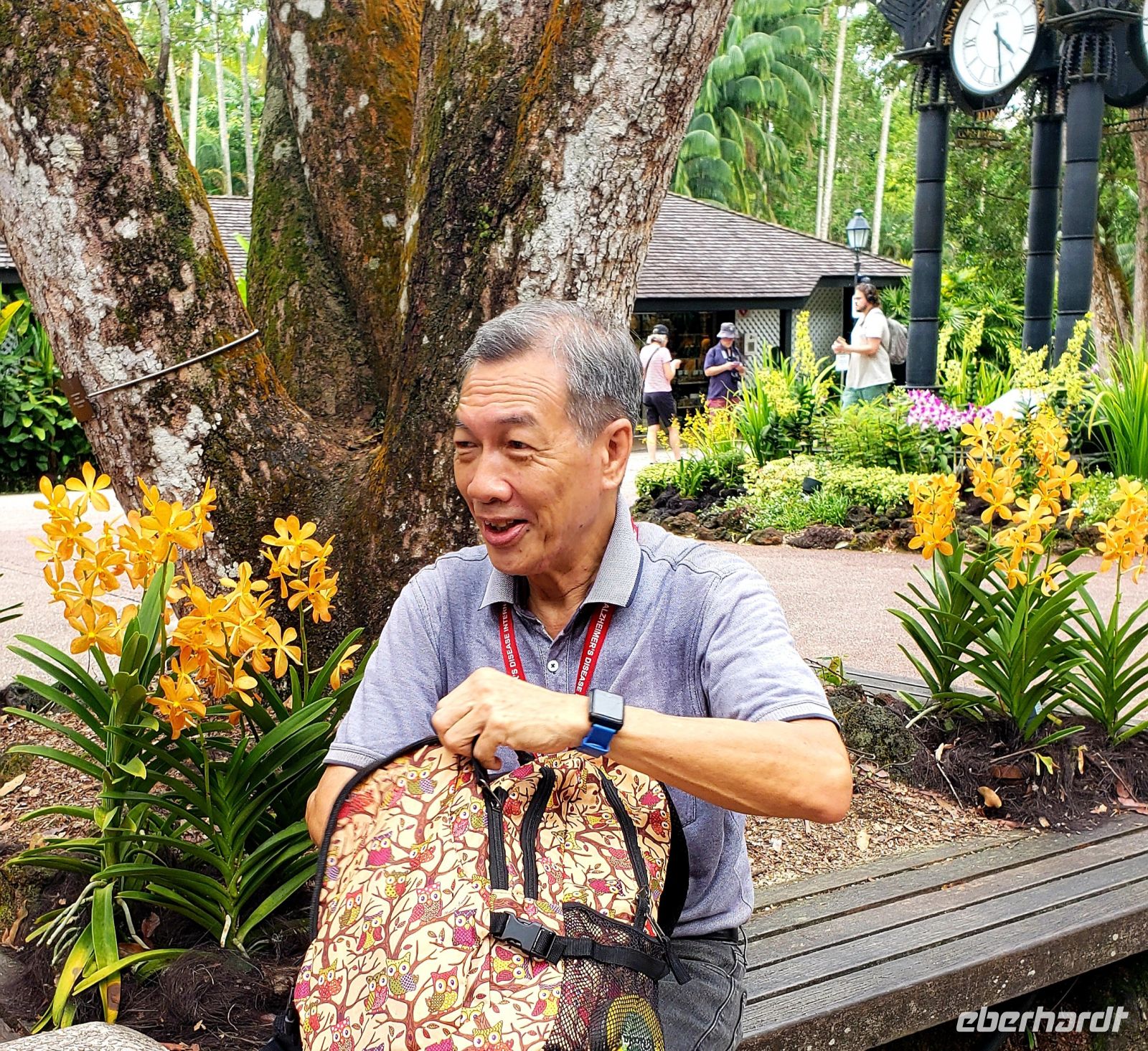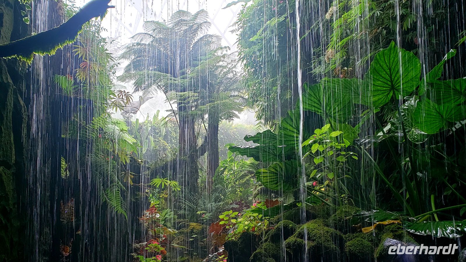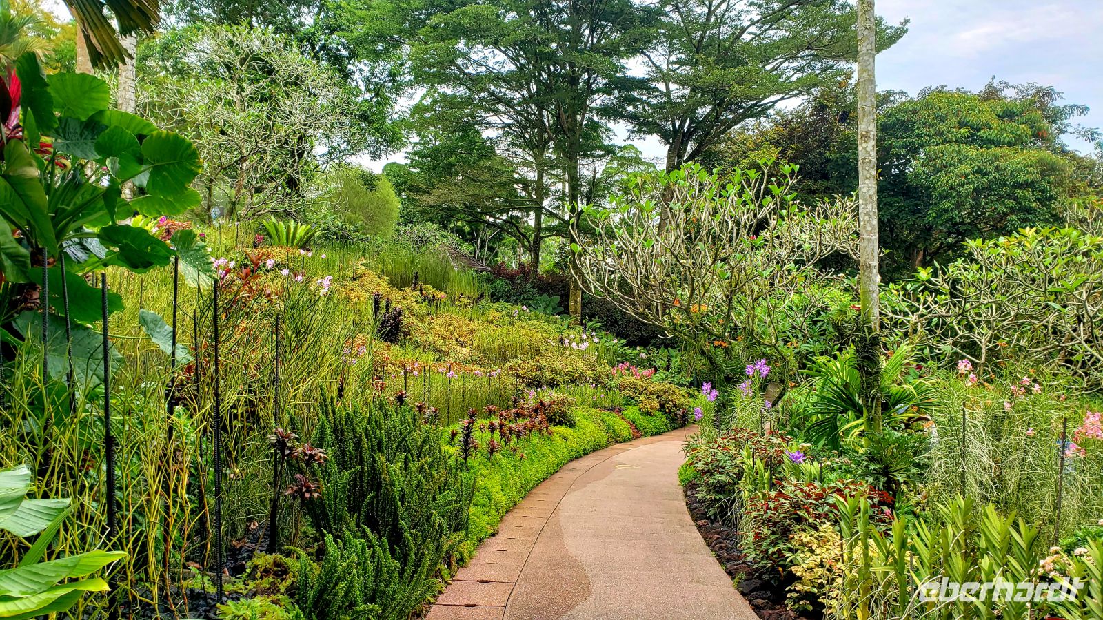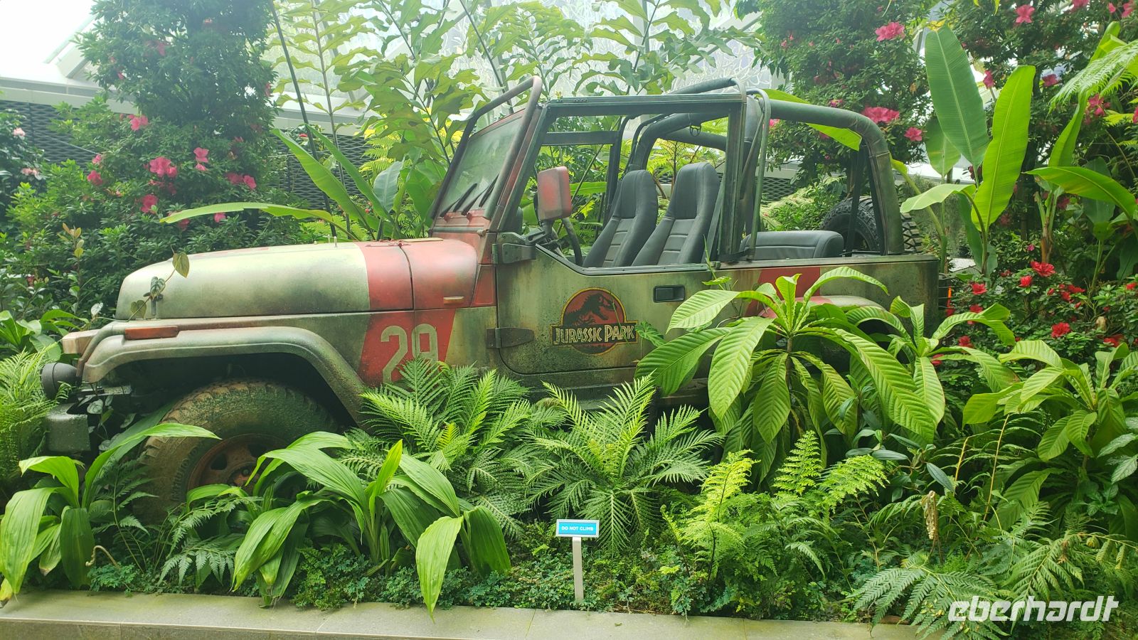 Der heutige Vormittag steht zur freien Verfügung. Nach einem leckeren Frühstück treffen sich die meisten Gäste mit mir in der Lobby und mit drei Taxen fahren wir zum Flower Dome und Cloud Forest. Den Eintritt zahlt jeder selbst und dann tauchen wir ein in die Welt von Jurassic Park und einen tropischen Nebelwald. Selbst wer von den Gästen nicht unbedingt ein Fan von Dinosaurier Filmen ist, zeigt sich begeistert. Die ganze Halle ist großartig gestaltet und überall wabert Nebel durch das Dschungeldickicht, aus dem gelegentlich ein Dinosaurier schaut, das Maul aufreißt und uns böse beäugt. Wir sind alle hin und weg und verbringen über eine Stunde in der Glaskuppel. Dann geht es in die andere Kuppel, dort sind Kakteen, Orchideen und viele andere Pflanzen untergebracht.