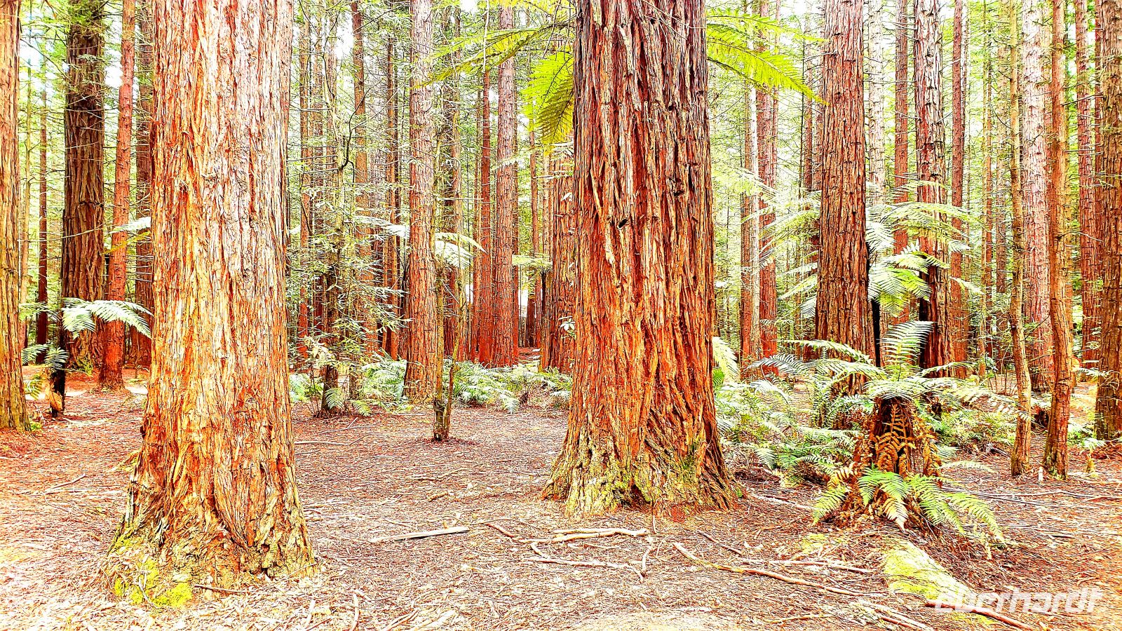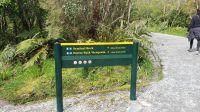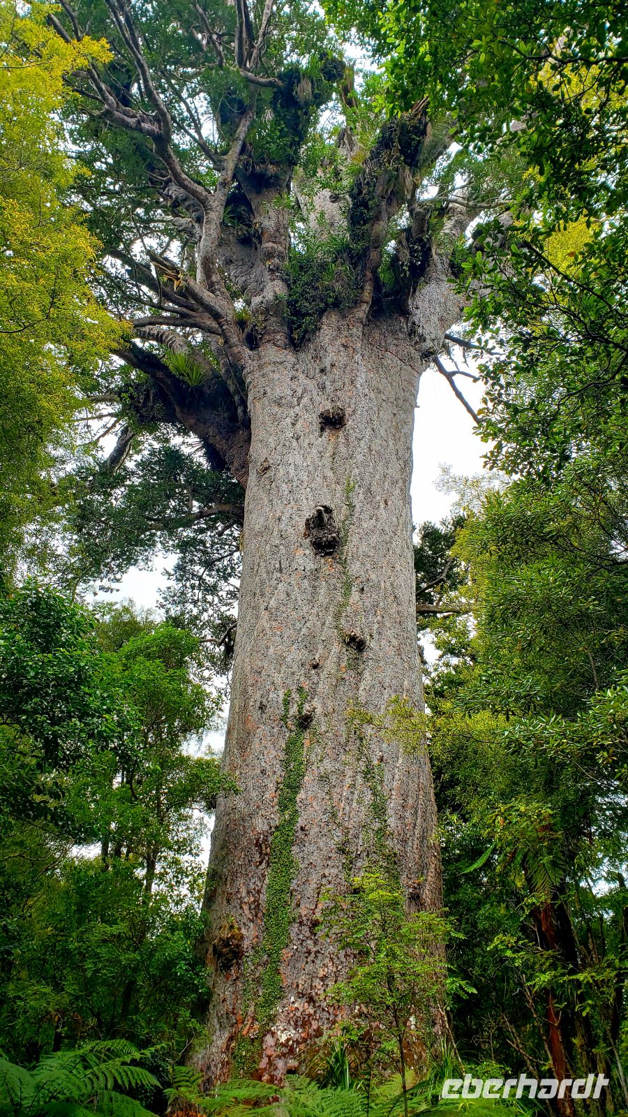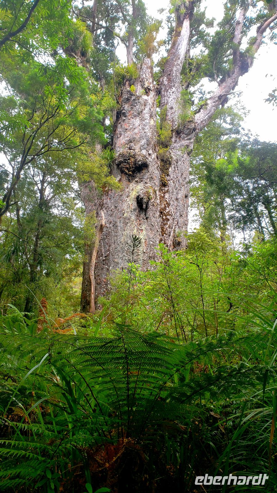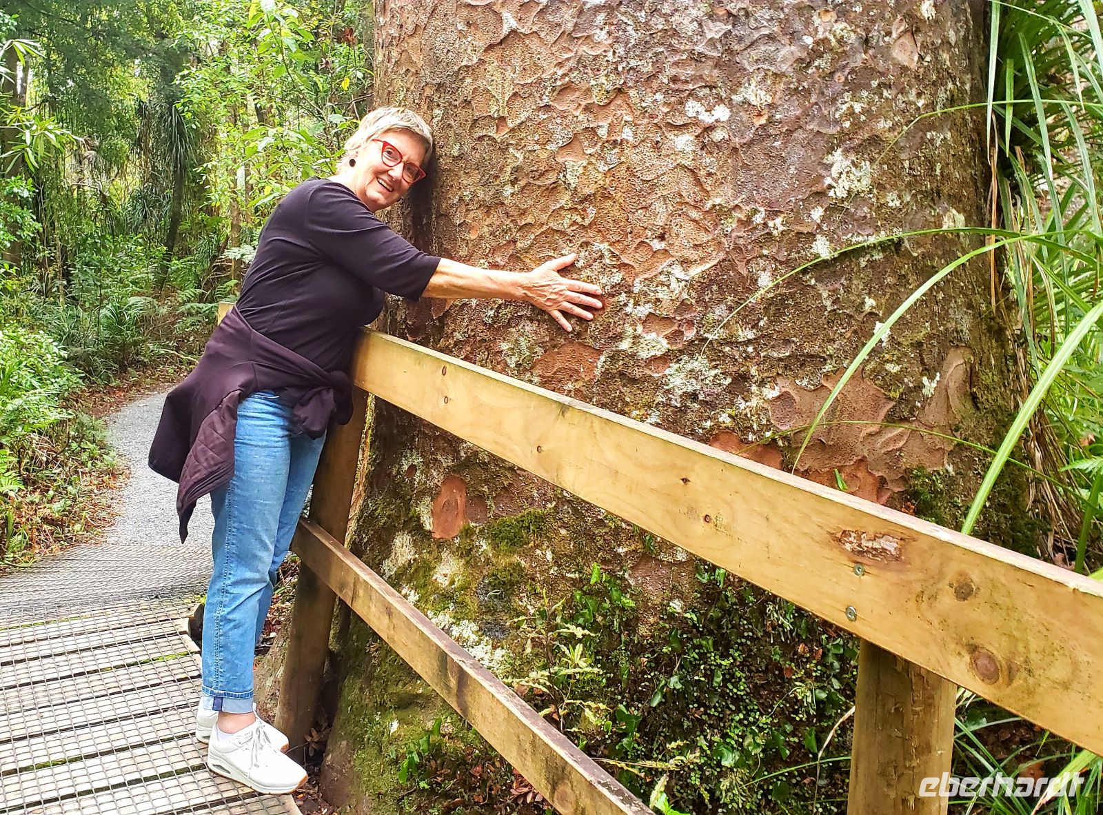 Um 12.30 Uhr geht es weiter zum „größten Kauribaum der Welt“ in den Kauriwald nach Tāne Mahuta. Es ist eine sehr kurvenreiche Fahrt. Nachdem wir den größten Baum bestaunt haben, machen wir einen Spaziergang zum zweitgrößten Kauribaum, der nicht so hoch aber mehr Stammumfang hat und somit - meiner Meinung nach - noch beeindruckender ist. Der Spaziergang hat fast eine Stunde gedauert, was nicht geplant war. Aber alle Gäste sind der Meinung, dass es sich absolut gelohnt hat.