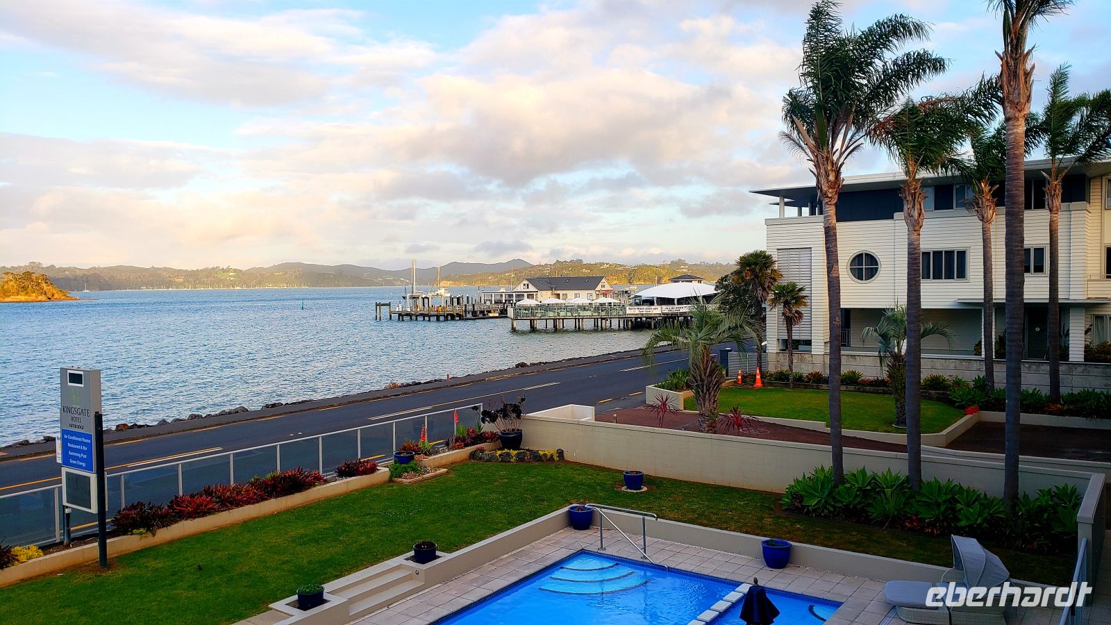 Zufrieden fahren wir zum Hotel nach Paihia, wo wir gegen 18 Uhr einchecken. Eine Stunde später sitzen wir schon in dem Hotelrestaurant mit Blick auf das Meer und genießen ein hervorragendes 3-Gänge Menu. Das war ein wunderschöner, entspannter Tag!