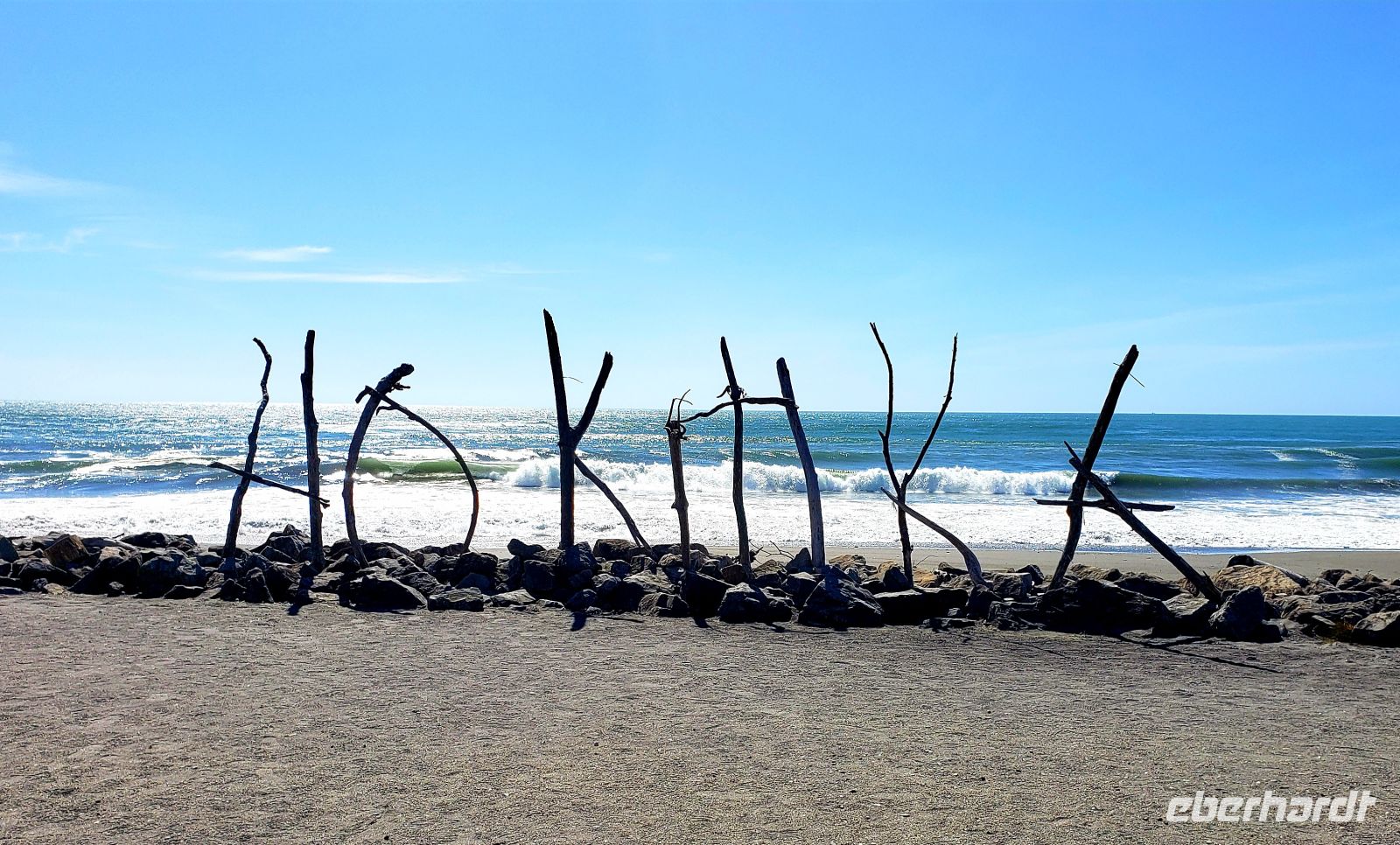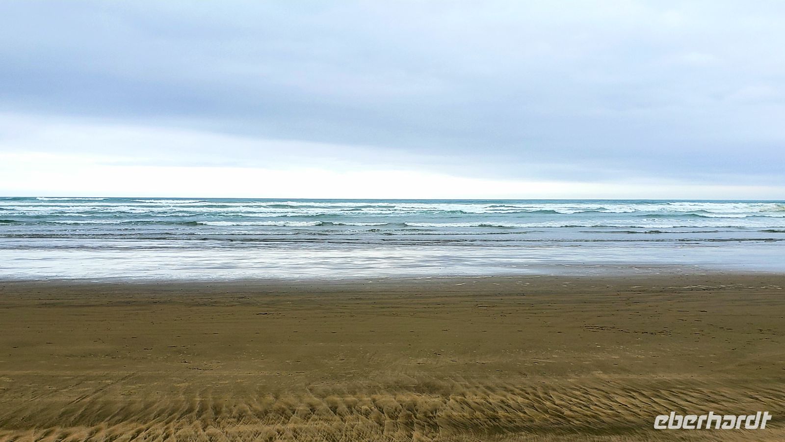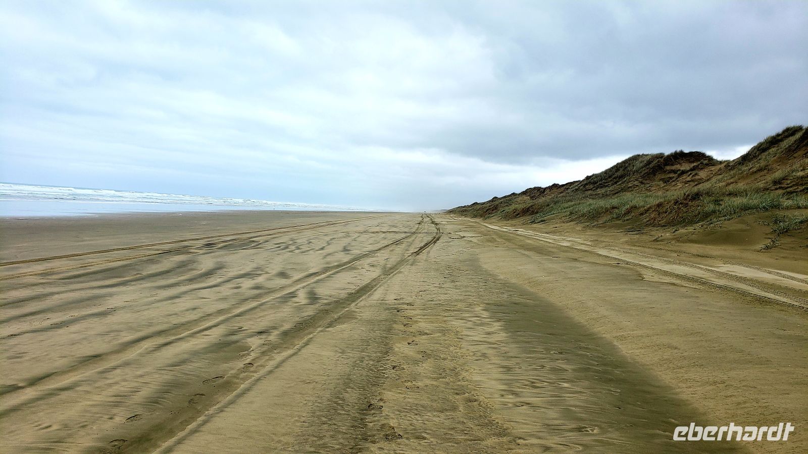 Nach einer Stunde geht es weiter zu einem Strand in der Nähe, wo wir an Picknicktischen leckere Chicken Wraps bekommen von unserem Guide und Fahrer Barry. Barry ist eine Seele von Mensch, die ganze Fahrt über erzählt er Geschichten, Anekdoten und Historisches über die Region, leider auf Englisch und ich kann während der Fahrt nicht übersetzen, da noch fremde Gäste in dem Bus mitfahren. Nach der Mittagspause geht es weiter zum 90 Mile Beach. Mit dem Bus fahren wir diverse Kilometer direkt auf dem Strand entlang, dann steigen wir aus und wer will, kann mit Boards die Sanddünen herunterrutschen. Das gibt viel Gejuchzte und Freude. Nach einem erneuten Stopp in dem Café mit dem Kauribaum geht es direkt zurück zum Hotel, wo wir gegen 18 Uhr ankommen. Wir haben insgesamt gut acht Stunden im Bus gesessen, aber hätten wir den Ort missen wollen? Die meisten Gäste sind froh, sich für diesen Ausflug entschieden zu haben.