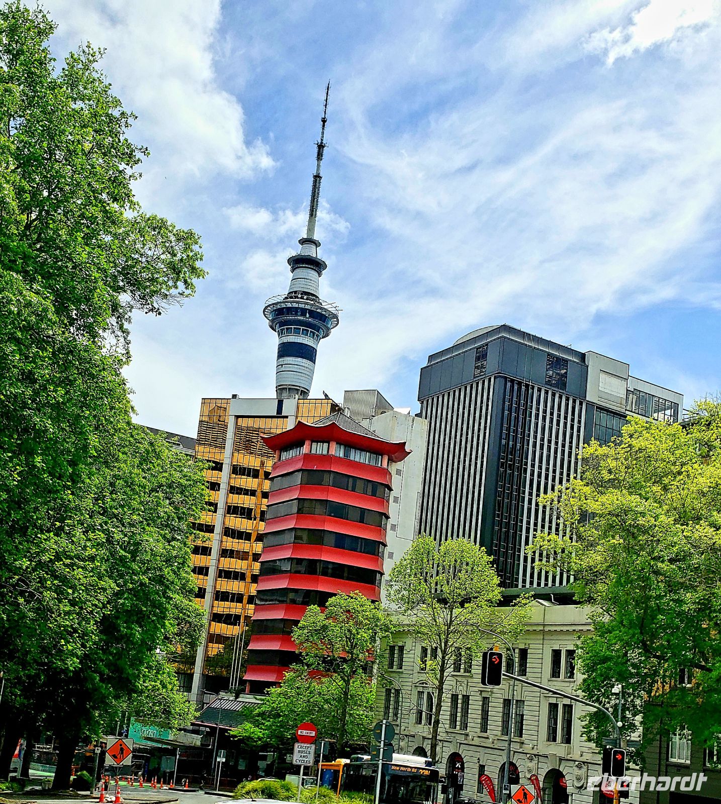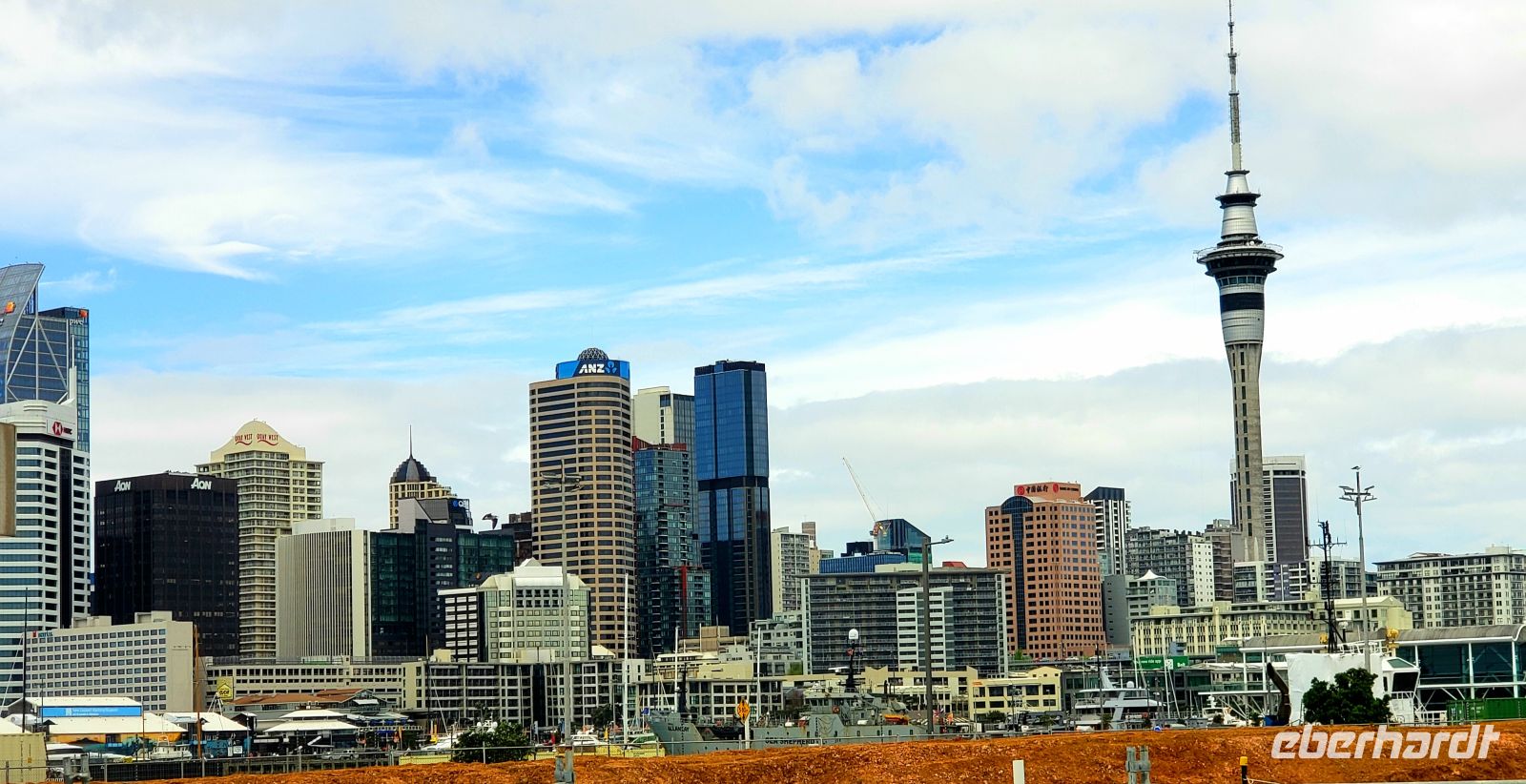 Pünktlich landen wir mittags in Auckland und auch die Abfertigung klappt zügig. Leider wurde ausgerechnet bei einem Ehepaar unserer Gruppe das komplette Gepäck zufalls-gecheckt, aber bald sind wir mit unserem örtlichen Reiseleiter Peter, der auch den Minibus fährt, Richtung Auckland Zentrum unterwegs. Alle sind müde und es regnet, deshalb kürzen wir die geplante Stadtrundfahrt ab und fahren nur am Hafen und am Skytower vorbei direkt zum Hotel, wo wir gegen 17 Uhr ankommen. So bleibt genug Zeit zum Ausruhen, bevor wir uns um 19 Uhr im Hotelrestaurant zu einem leckeren 3-Gänge Menü treffen. Heute ist das erste Mal, das die ganze Gruppe an einem Tisch zusammensitzt und bei netten Gesprächen lassen wir den Abend ausklingen.