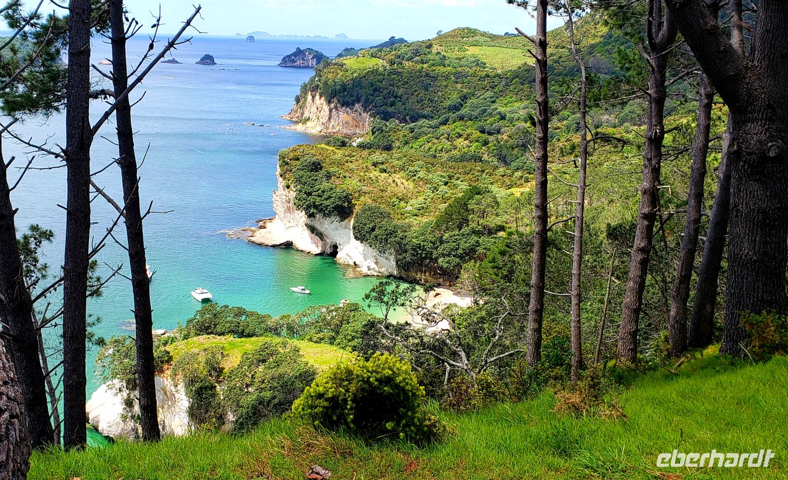 Wir bleiben noch eine Nacht in unseren großartigen Ferienwohnungen und starten nach dem Frühstück zu einer entspannten Tagestour. Bei bestem Wetter unternehmen wir eine wunderschöne Wanderung zur Cathedral Cove, einer spektakulären Felsformation. Man kann ganz herunter wandern an den Strand oder sich das Ganze von oben anschauen, nach der Wanderung zu einer Aussichtsplattform. Ob vom Strand oder aus der Vogelperspektive - beide Ansichten sind fantastisch!