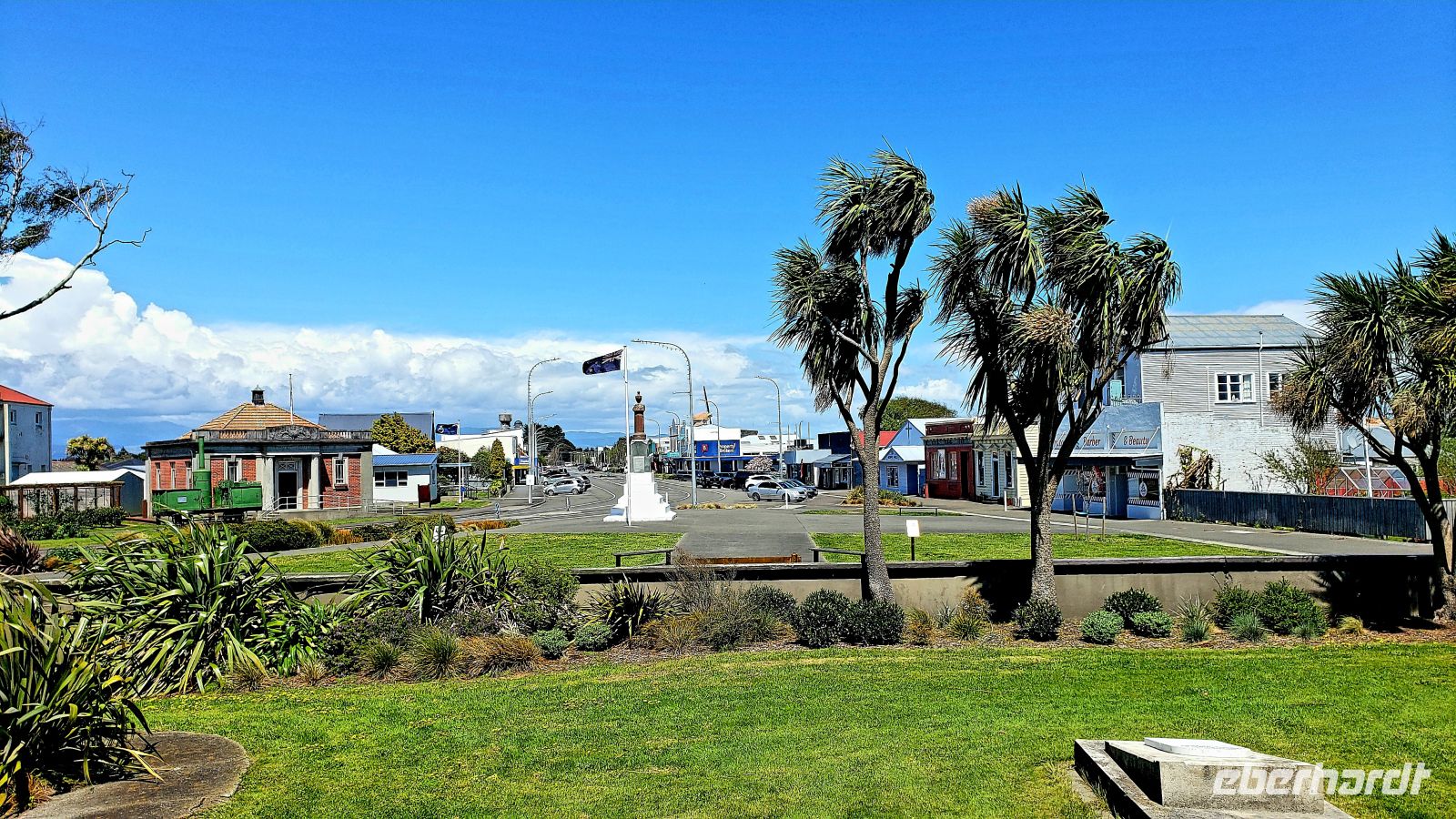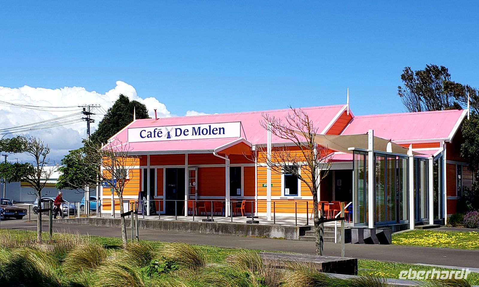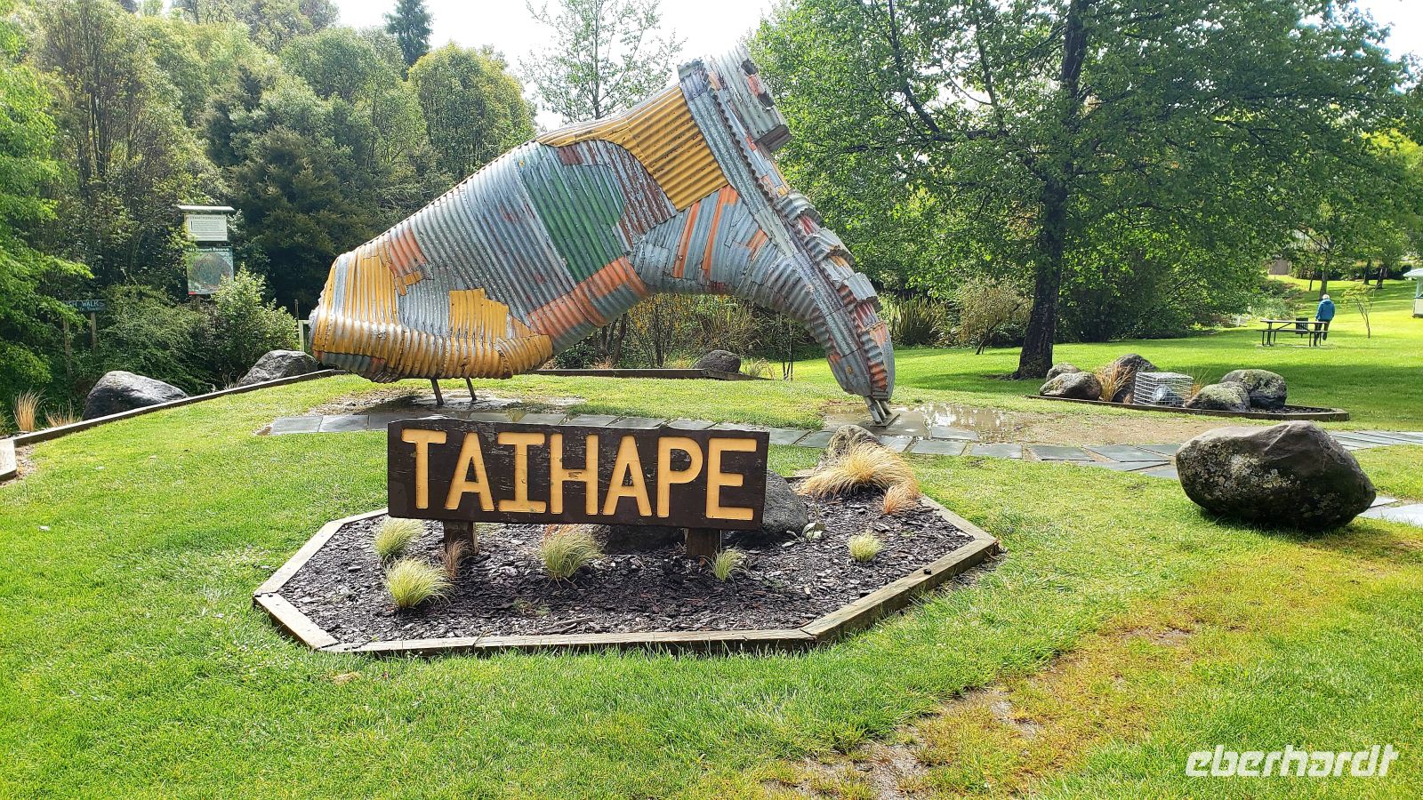 Der nächste Stopp ist etwas fröhlicher, Taihape nennt sich die Gummistiefelweitwurf-Hauptstadt, ein Riesengummistiefel am Ortseingang zeigt, wie ernst es den Bewohnern und Bewohnerinnen des Ortes ist, immerhin ist Gummistiefelweitwurf eine anerkannte Sportart in Neuseeland. Wir testen auch unser Talent, auf einem Rasengelände liegen Gummistiefel an einer Linie bereit und unter Gejuchzte versuchen wir unser Glück. Inzwischen ist die Sonne herausgekommen und wir machen eine Stunde Mittagspause in dem charmanten kleinen Ort Foxton. Hier gibt es eine Holländermühle zu bewundern, verschiedene Cafés und idyllische Wanderwege am Fluss entlang.