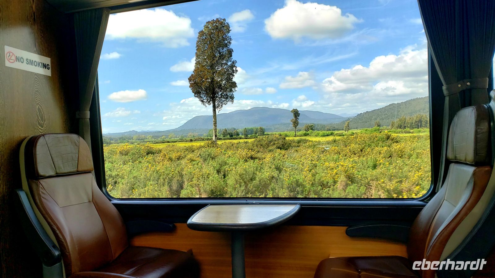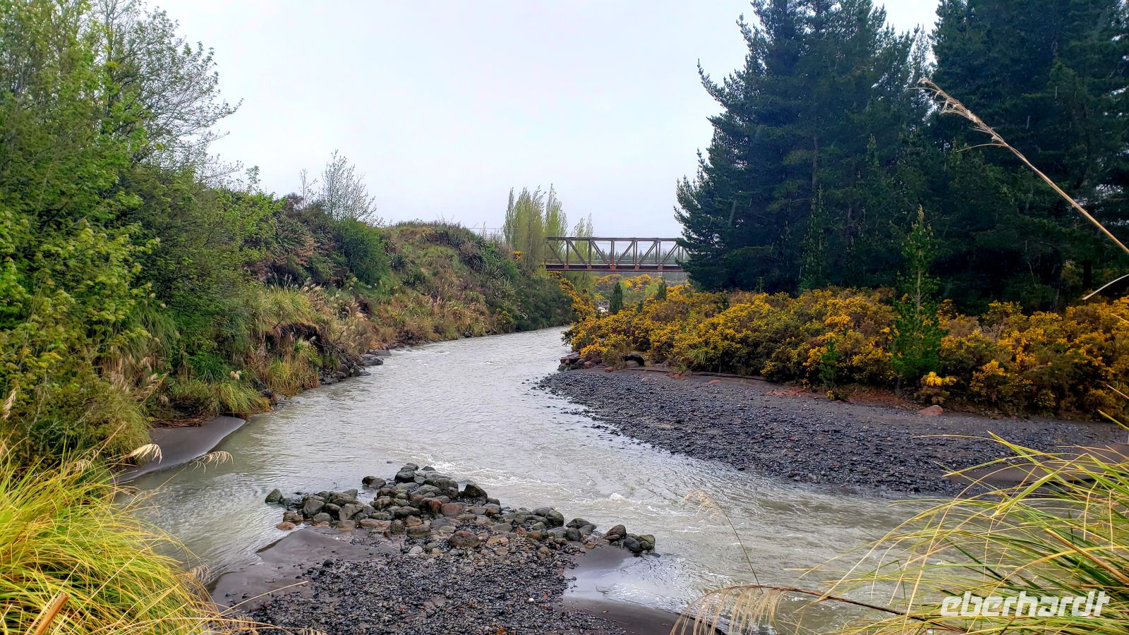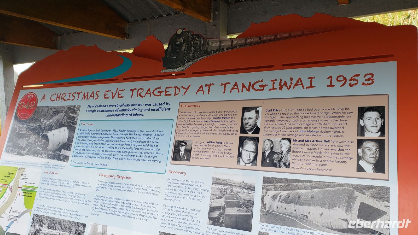 Nach dem Frühstück geht es schon weiter, die Hauptstadt Wellington ist heute unser Ziel. Es regnet immer noch und es ist leider so diesig, dass wir den Vulkan Mount Ruahepu zu unserer Linken absolut nicht sehen können. Es gibt einen kleinen Fotostopp an der Gedenkstätte Tangiwai, wo das bisher schwerste Zugunglück Neuseelands 1953 passierte.