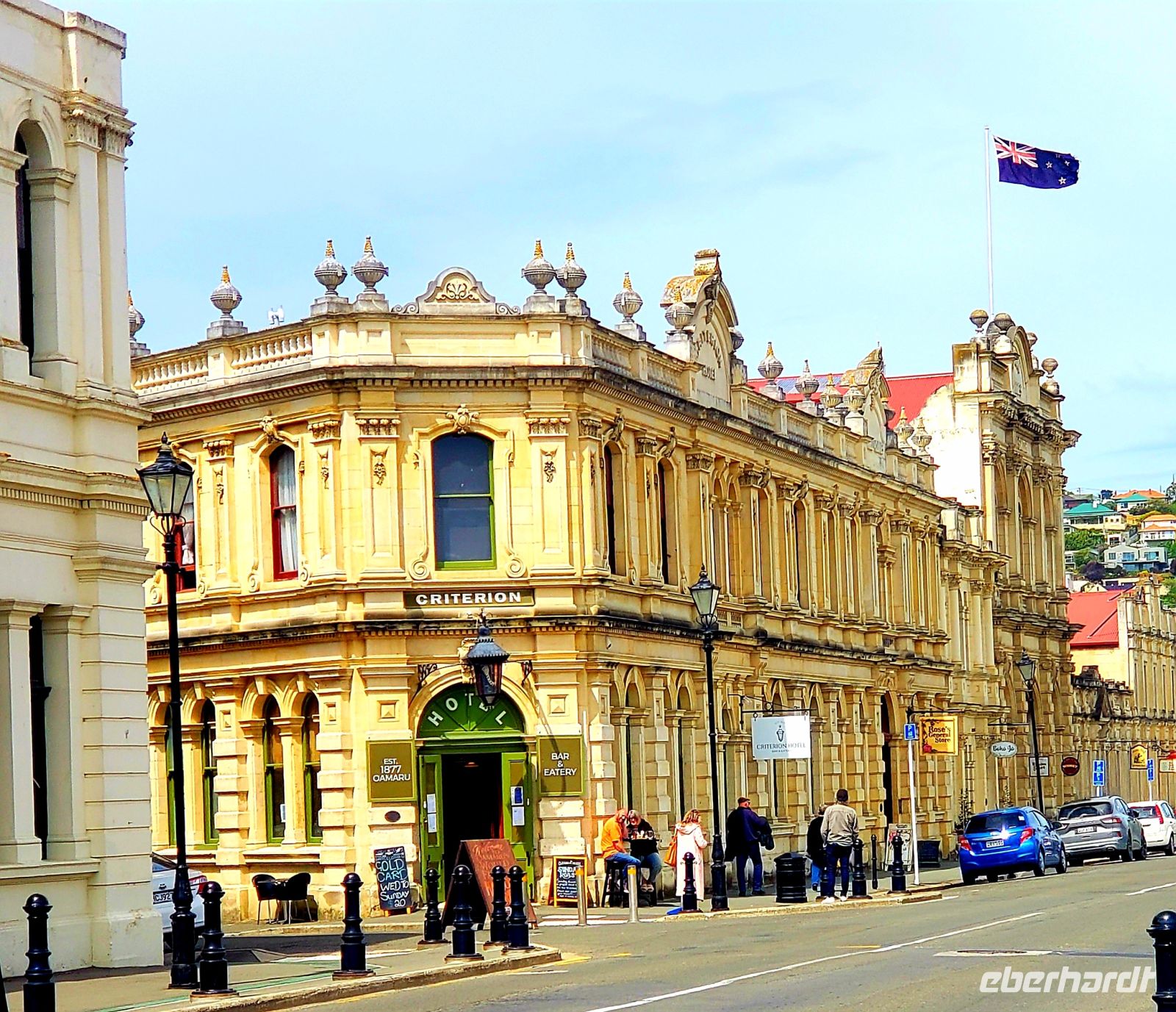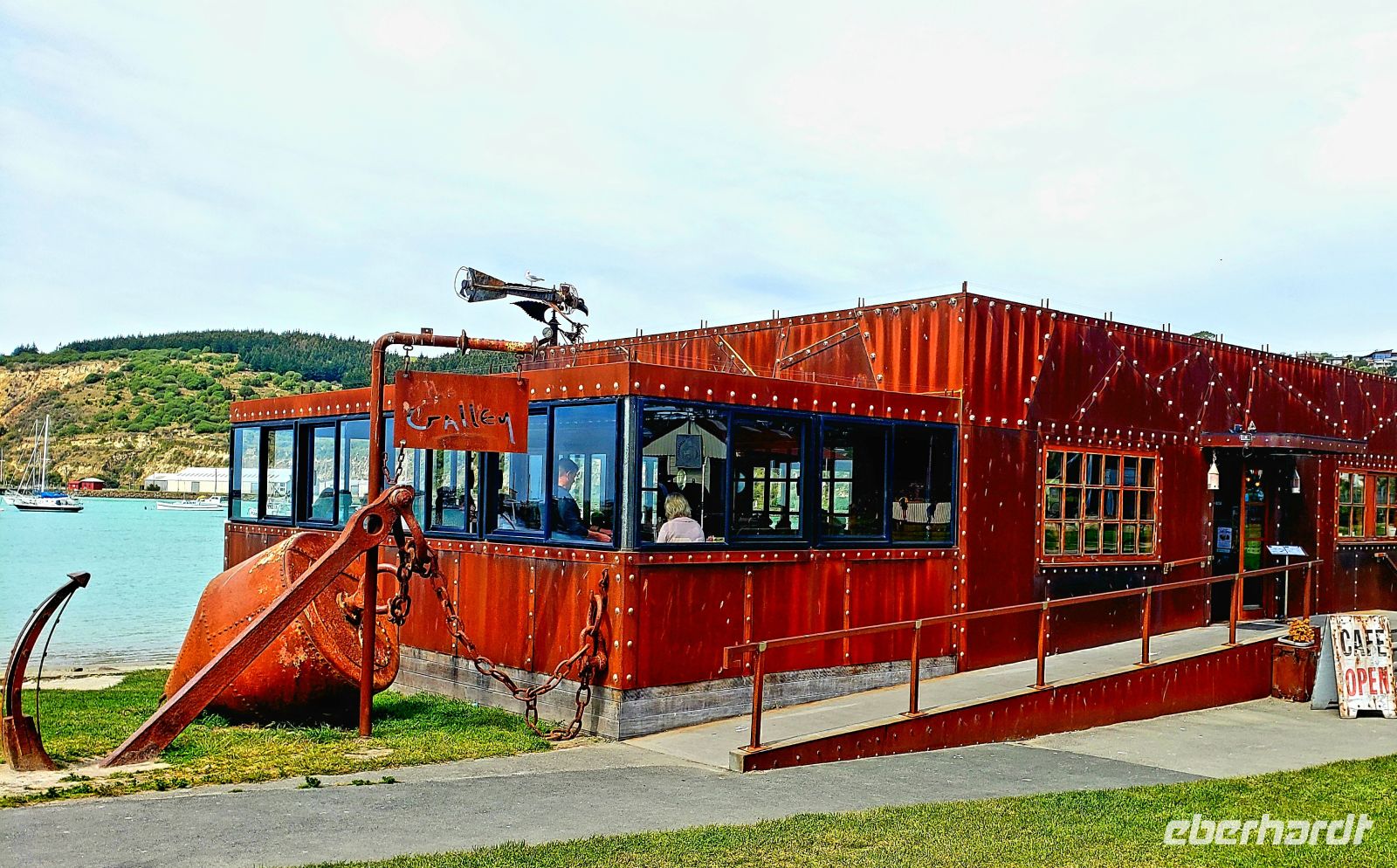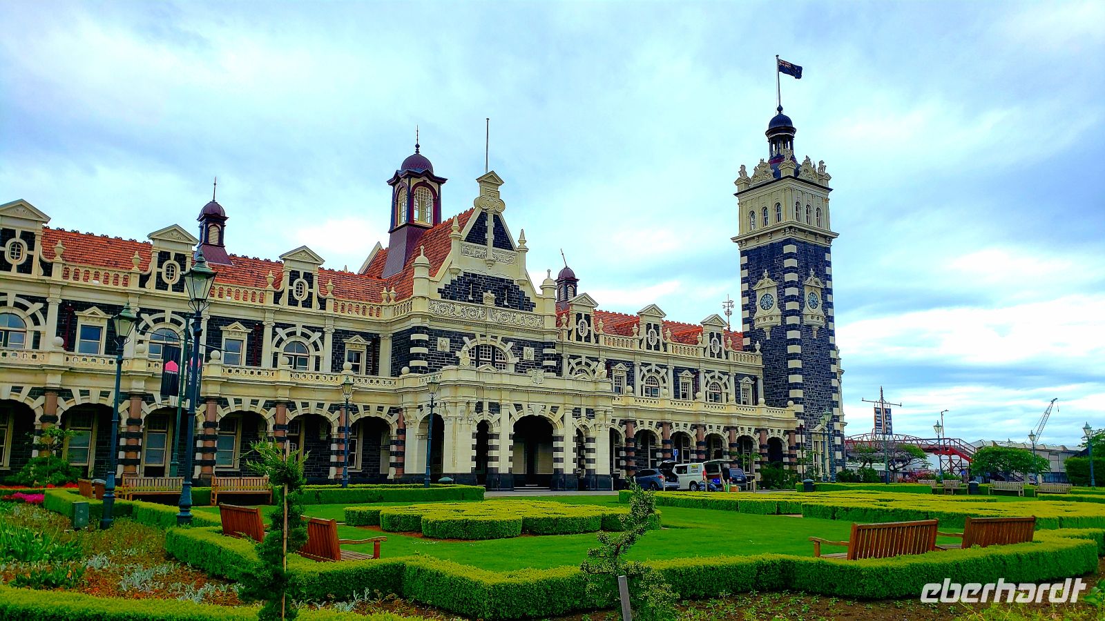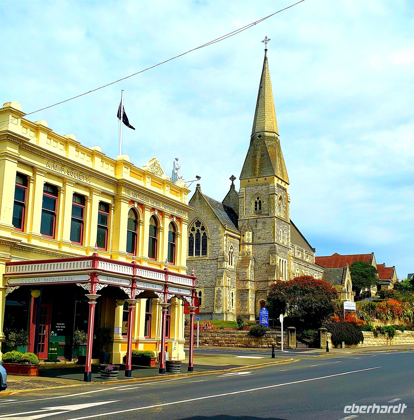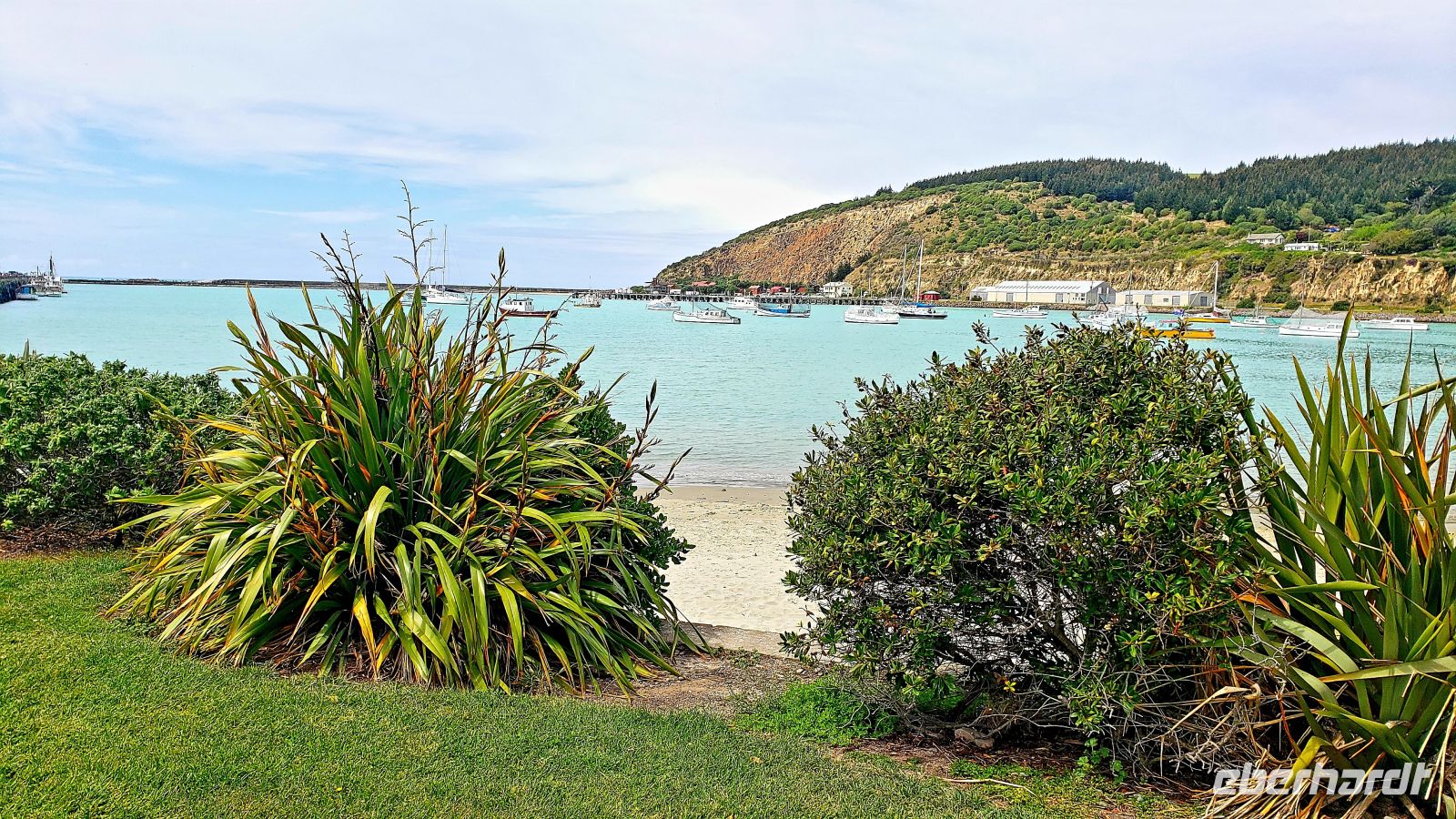 Bei schönstem Wetter verlassen wir Tekapo, vorher schauen wir uns aber noch die Kirche des guten Hirten an. Dann geht es entlang der Bergkulisse mit zahlreichen Fotostopps, wie zum Beispiel am Lake Pukati, von wo wir einen großartigen Blick auf den Mount Cook haben. Der nächste Stopp ist der Waitaki Damm, mit einer Stromgewinnungsanlage. In Kurow machen wir eine Toilettenpause und einige schöne alte Häuser geben ein gutes Fotomotiv ab. Dann sind wir wieder an der Küste des Pazifik und erreichen Oamaru. Obwohl Sonntag ist, haben viele Geschäfte mit Kunsthandwerk oder Souvenirs geöffnet und Cafés und Restaurants sowieso. Der charmante Ort ist pure Nostalgie, wirklich alles ist auf historisch getrimmt! Es gibt eine historische Eisenbahn, mit der man um den Ort fahren kann und diverse Antiquitätengeschäfte, Museen und dergleichen. Alle Gäste finden den Ort bezaubernd und die 45 Minuten Pause, die wir machen, gehen zu schnell vorbei. Der nächste Stopp sind die Moeraki Boulders, riesengroße runde Steine am Strand. Dort bleiben wir nicht so lange, da wir pünktlich zu unserer Bootstour in Dunedin ankommen müssen. Das schaffen wir auch und schon sitzen wir auf einem Boot draußen und sehen verschiedene Arten Albatrosse, Sturmtaucher und Fellrobben auf der Fahrt an der Küste entlang. Captain Barry gibt viele Erklärungen zum Brutverhalten der Tiere und welche vom Aussterben bedroht sind. Eine Stunde geht schnell vorbei, die Tour hat uns gut gefallen. Bevor wir ins Hotel einchecken, macht Peter noch eine Stadtrundfahrt in Dunedin mit uns und zeigt uns die interessantesten Gebäude dieser Universitäts-Stadt. Unser Hotel ist wunderschön mit einer traumhaften Rhododendron-Gartenanlage, der botanische Garten liegt gleich gegenüber. Bei Ankunft können wir uns erstmal ein 3-Gänge Menü aussuchen und um 19 Uhr sitzen wir bei leckerem Rib Eye Steak oder Fischfilet zusammen am Tisch. Dazu kann man sich, wie in all unseren Hotels, exzellenten Wein aus Neuseeland bestellen oder lokales Bier vom Fass. Müde von einem weiteren aufregenden, ereignisreichen Tag gehen wir bald schlafen.