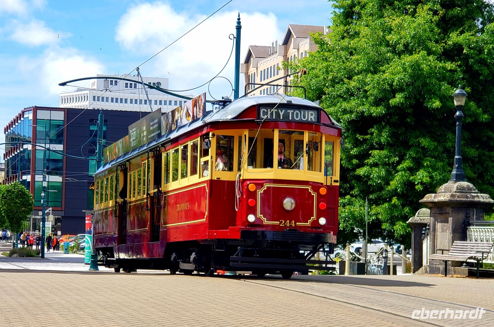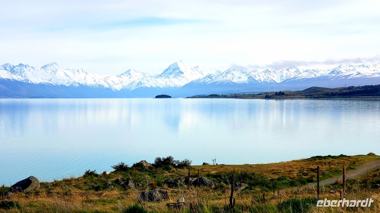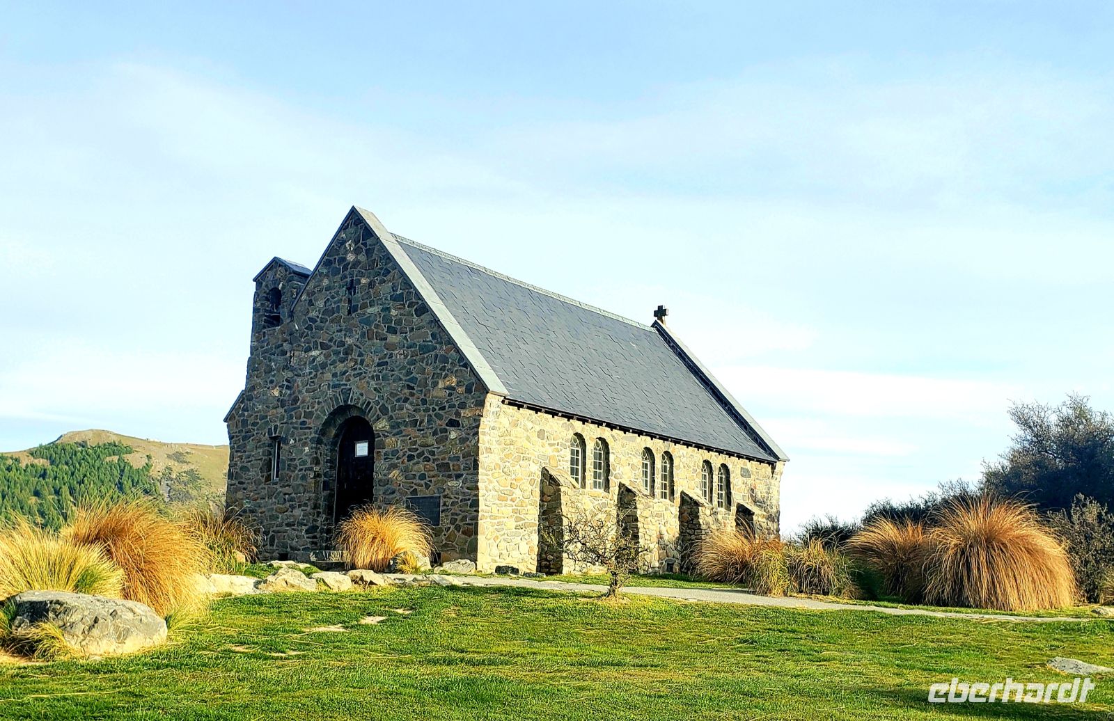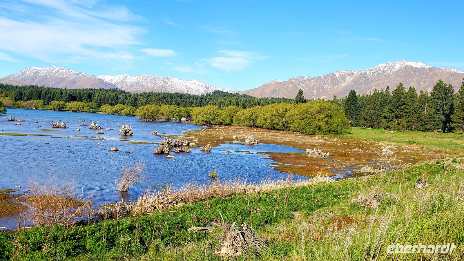 Nachdem alle Gäste gemütlich auf ihren Zimmern gefrühstückt haben, verlassen wir Kaikoura. Leider regnet es noch etwas und der Himmel ist grau. Richtung Süden kommt jedoch die Sonne heraus und wir unternehmen einen ersten Spaziergang in der charmanten, pulsierenden Stadt Christchurch. Wir schauen uns das Art Center an und gehen zur Ruine der Kathedrale, die bei einem Erdbeben zerstört wurde und nun wieder aufgebaut wird. Es gibt Souvenirläden und neben einem Denkmal des Südpolforschers Robert Scott fotografieren alle die verschiedenen farbenfrohen, nostalgischen Straßenbahnen. Unser Fahrer und Guide Peter hat sich inzwischen mit seinem Kollegen von der örtlichen Reiseagentur getroffen und unser Bus wird ausgetauscht, da er zur Inspektion muss. Dann geht es weiter zur "Riverside" Markthalle, wo, wer möchte, etwas essen kann. Die Fußgängerzone ist auch gleich nebenan und gegenüber fließt der Fluss Avon. Bei bestem Wetter flanieren wir eine Stunde herum, dann zeigt Peter uns noch den botanischen Garten und die Kathedrale aus Pappe. Dieser Ort ist eine richtige Attraktion geworden, obwohl es nur als Interimsgebäude gedacht ist. Dann verlassen wir Christchurch, die Stadt hat allen sehr gut gefallen, deshalb haben wir dort auch länger verweilt als geplant. Durch kleine bezaubernde Städte geht es Richtung Südalpen, die Gebirgskulisse begleitet uns während der Fahrt und bietet großartige Fotomotive. Nach zwei Toiletten- und einigen Fotostopps kommen wir erst 18.30 Uhr im Godley Hotel in Tekapo an und sind begeistert, dass unser Hotel direkt am See liegt mit Blick auf die Berge. Einige gehen noch vor dem Abendessen an den See für Fotos, dann gibt es um 19 Uhr ein Buffet für unsere Gruppe. Peter hat unten in der Bar ein Klavier entdeckt und spielt uns nach dem Essen noch etwas vor. So geht ein weiterer ereignisreicher Tag zu Ende!