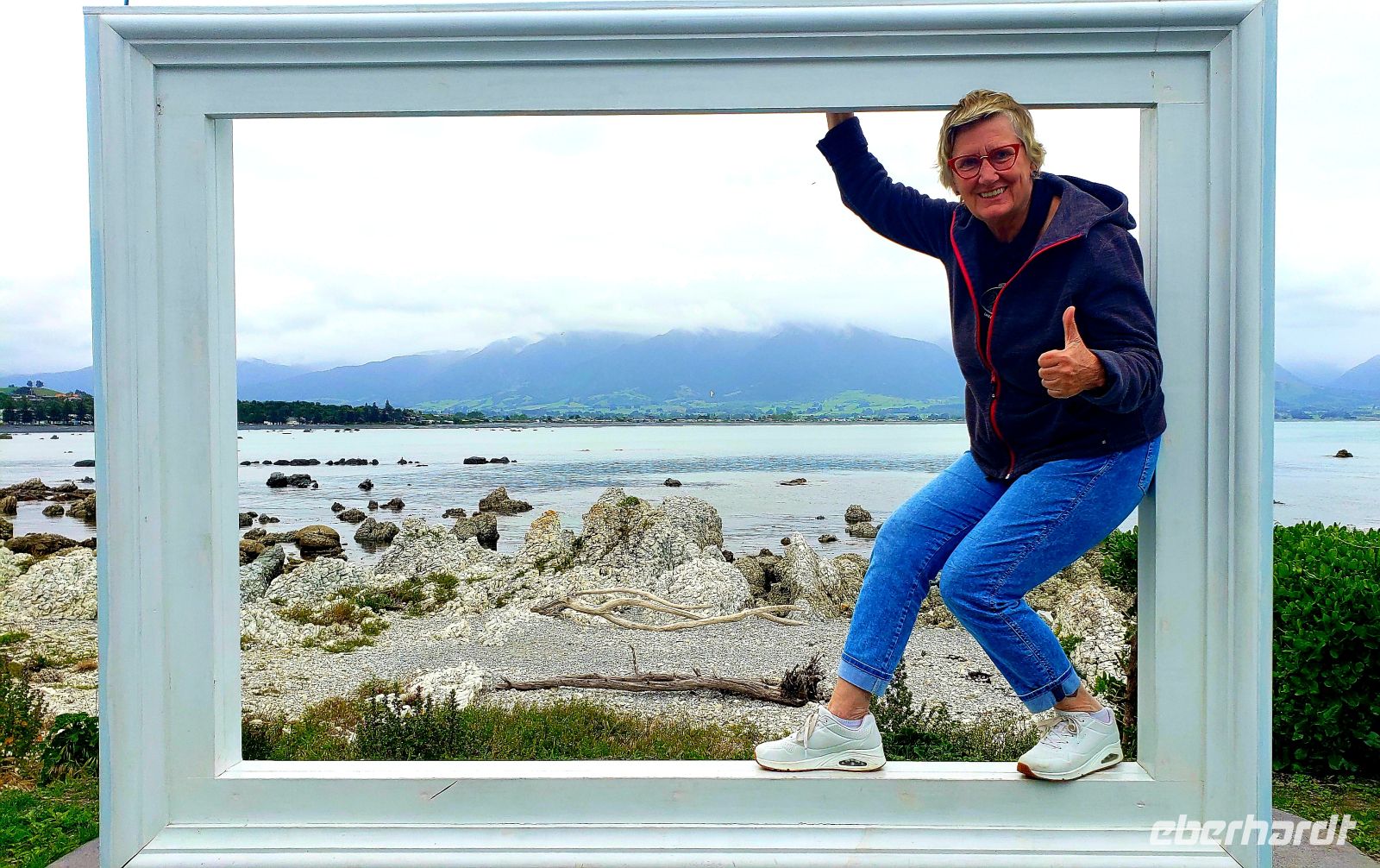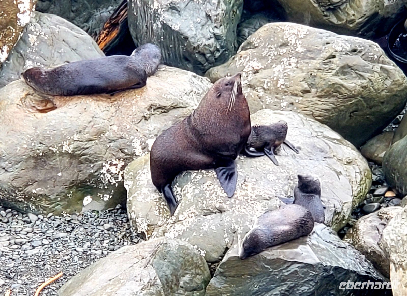 Heute beginnt der zweite Teil unserer Reise, denn es geht auf die Südinsel. Nach einem exzellenten Frühstück starten wir gutgelaunt bei bestem Wetter zur Fähre. Dort stehen wir unerwartet eine Stunde in der Autoschlange, da die Fähre technische Probleme hat. Dann geht es aber endlich los und wir fahren in einer großen Schleife Richtung Südinsel. Es ist strahlendblauer Himmel, aber in der Cook-Straße weht ein heftiger Wind, so dass die meisten Gäste hineingehen. Einige aus unserer Gruppe und ich bleiben unverdrossen draußen, da es einfach zu viele schöne Fotomotive gibt. Das gesamte Personal des Schiffes ist verkleidet, viele als Piraten und das Schiff ist innen mit Halloween Sachen geschmückt. Nach dreieinhalb Stunden kommen wir verspätet in Picton an und müssen uns sputen, da ein Gast und ich den Flug zur Walbeobachtung gebucht haben. Wir fahren entlang der Ostküste bei bestem Wetter, als wir jedoch Richtung Kaikoura kommen, ist der Himmel grau und es regnet. Ausgerechnet jetzt und hier! Die Walbeobachtung wird abgesagt und wir stoppen erstmal an einem Aussichtspunkt, von wo wir Robben sehr nahe sehen können auf den Küstenfelsen. Dann checken wir in unserem netten Motel ein, wir haben wieder Apartments mit eigener Küche und das Frühstück steht im Kühlschrank. Im Bad gibt es sogar Fußbodenheizung! Zu 17.30 Uhr werden wir mit zwei Shuttle Fahrzeugen zu unserem Restaurant gebracht, welches in der Nähe direkt am Meer auf einer kleinen Halbinsel liegt. Es gibt ein hervorragendes 2-Gänge Menu. Einige Gäste haben sich vorab für Hummer entschieden, der hier quasi vor der Tür frisch gefangen wird, von ausgezeichneter Qualität ist und nur einen kleinen Aufpreis hat. So verbringen wir einen sehr gemütlichen Abend zusammen. Im Motel könnte man noch Billard oder Tischfußball spielen, aber ich glaube, dazu sind alle zu müde...
