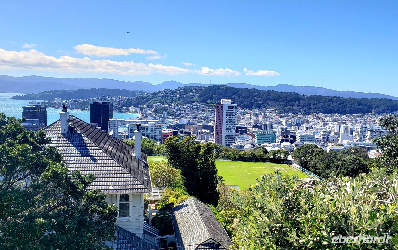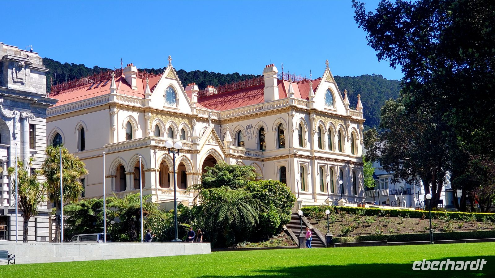 Heute steht der Tag zu freien Gestaltung für die Gäste. Die meisten Gäste kommen zunächst um 10 Uhr mit mir durch die Stadt und dann mit der Cable Car hinauf zum Botanischen Garten. Dort verteilt sich die Gruppe, viele wollen den Garten und besonders die Rosen in Ruhe anschauen. Mit einigen Gästen wandere ich hinab zum "Bienenkorb", so heißt das Regierungsgebäude und daneben ist gleich das Parlament. Wir schauen uns noch die Universität und den Bahnhof an und finden eine Post, um Briefmarken zu kaufen. Wir schlendern am Hafen entlang bei schönstem Sonnenschein, wenn auch mit viel Wind. Nach einem Snack im Circa Theater Café am Hafen gehe ich alleine noch in den wunderschönen Museumsshop des Te Papa Museum. So verbringen wir alle den Tag entspannt nach unserem Geschmack...