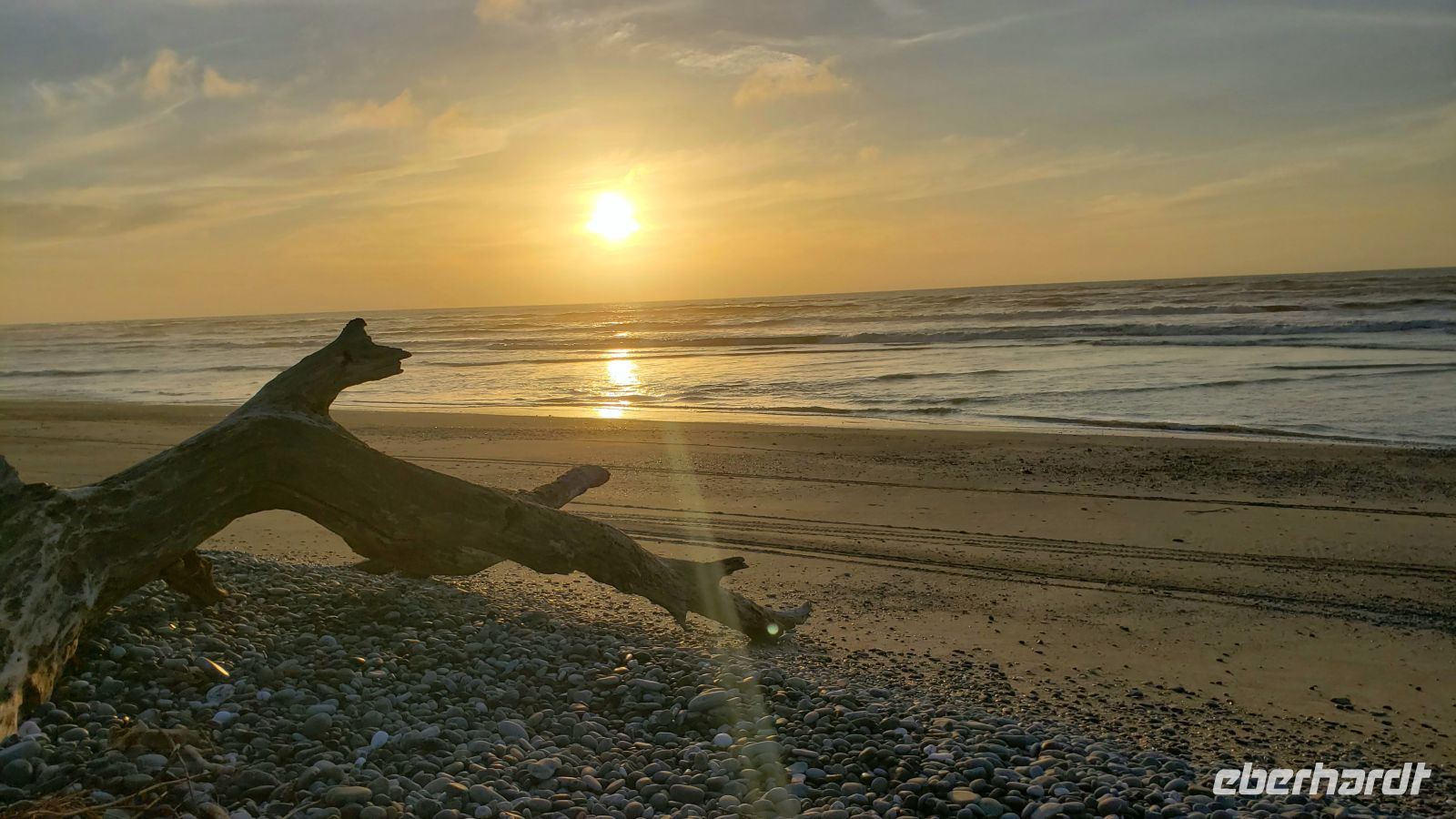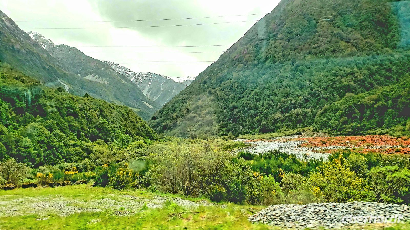 Super Wetter! Nach einem raschen Frühstück bringe ich die zehn Gäste, die fliegen wollen, um 7.30 Uhr zum Check-in des Flugveranstalters. Alle Gäste werden gewogen, müssen Taschen oder Schals abgeben, man darf nur Fotoapparat, Sonnenbrille oder Mütze mitnehmen. Dann folgt die Sicherheitseinweisung und die Gäste werden mit einem Bus auf das Abflugfeld gefahren, wo sie auf zwei Helikopter verteilt werden. Ich gehe zurück zum Hotel und trinke noch einen Kaffee mit den restlichen Gästen, die inzwischen auch zum Frühstück eingetrudelt sind. Die Flüge dauern 30 bzw. 40 Minuten und die Gäste kommen begeistert zurück. Allen hat dieses Erlebnis gefallen. Peter lädt unsere Koffer ein und wir starten um 9.30 Uhr unsere Weiterfahrt. Im Tal des Franz Josef Gletschers unternehmen wir eine kleine Wanderung zu einer Aussichtsplattform, dann schlendern wir noch durch den Ort Franz Josef, der in der Nähe liegt. Nächster Stopp ist die Kleinstadt Hokitika, die direkt am Strand liegt. Einige Gäste schauen sich die kleine Jadefabrik an, essen zu Mittag oder gehen am Strand spazieren. Wir bleiben hier eineinhalb Stunden, dann geht es entspannt weiter nach Greymouth, wo wir gegen 17 Uhr ins Hotel einchecken. Vor dem Abendessen bleibt noch Zeit für einen weiteren Strandspaziergang oder eine kurze Wanderung zu einer Aussichtsplattform.