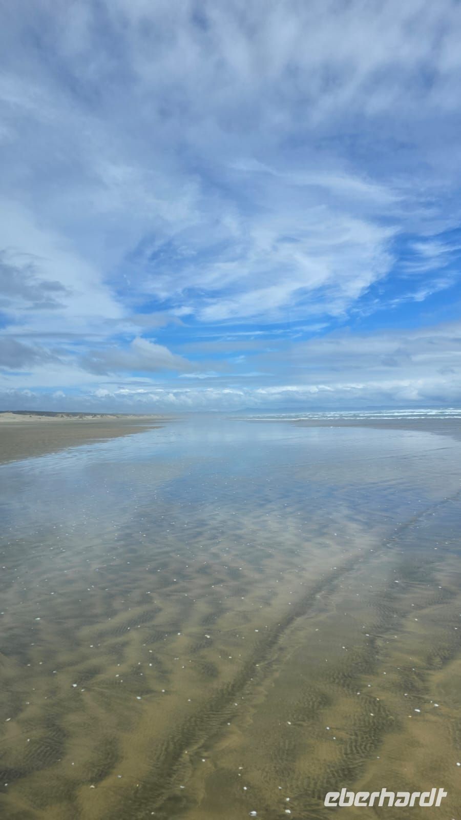 Frisch gestärkt fahren wir danach zum berühmten Ninety Mile Beach. Der Name ist übrigens etwas irreführend: Statt 90 Meilen ist der Strand „nur“ 55 Meilen bzw. etwa 88 Kilometer lang – fühlt sich aber trotzdem endlos an. Bei Ebbe wird er sogar als eine Art Autobahn genutzt, und so fahren auch wir ein Stück direkt am Strand entlang.