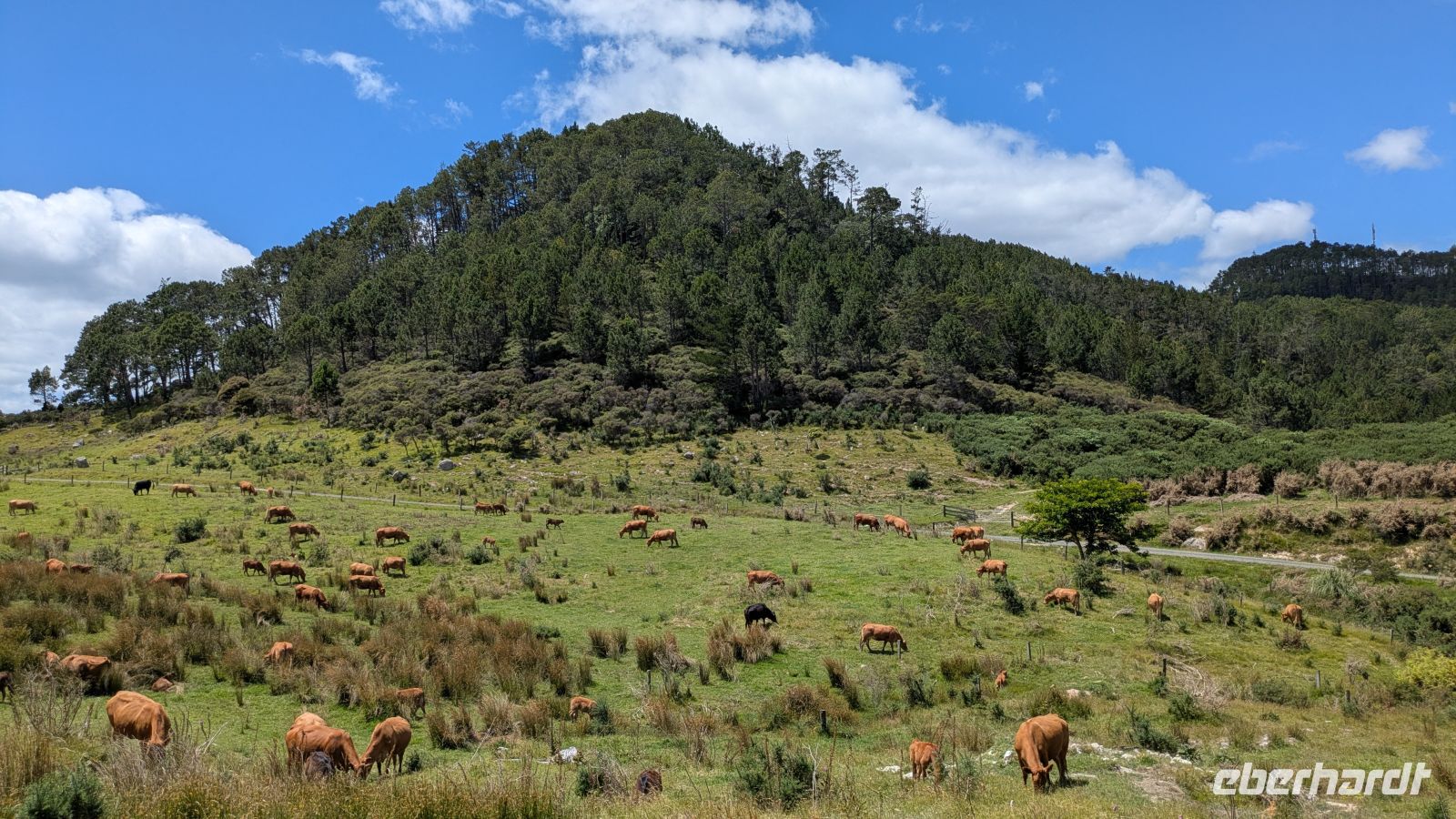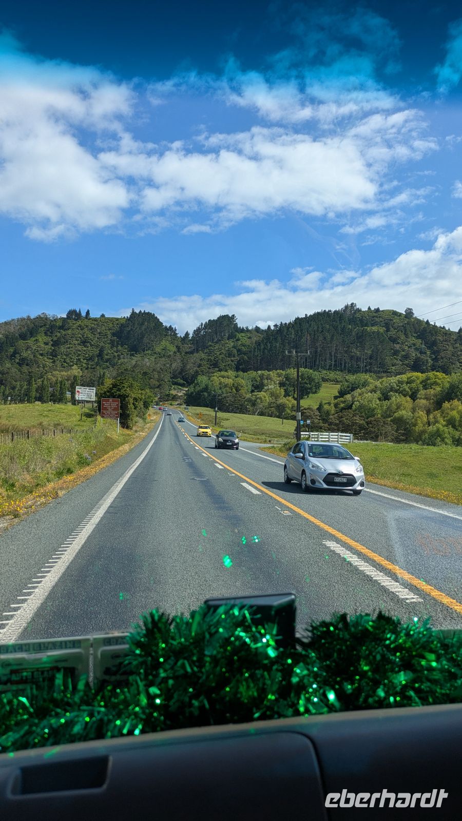 Heute ist unser erster Freizeittag. Der Großteil unserer Gruppe (10 Personen) entscheidet sich für den Zusatzausflug zum Cape Reinga. Früh am Morgen werden wir von unserem Tagesguide Berry abgeholt. Während der langen Fahrt erzählt er uns viel über die Geschichte Neuseelands – zum Beispiel, wie Captain James Cook die Inseln damals fast erstaunlich genau gezeichnet hat oder was es mit den verschiedenen Flaggen und ihren Bedeutungen auf sich hat.