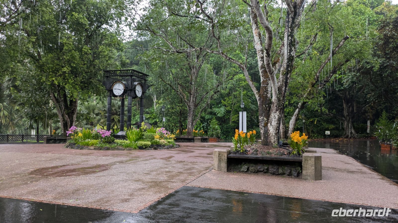 Danach geht unsere Rundfahrt weiter. Wegen des strömenden Regens entscheiden wir uns spontan für den Orchideen Garden, bevor Alvin uns zum Flughafen bringt. Nach der Gepäckabgabe bleibt noch ein kleiner Abstecher zum riesigen Indoor-Wasserfall „Jewel“ am Flughafen Singapur. Mit seinem Farbwechsel, den Pflanzen und dem leisen Rauschen vergisst man fast, dass man mitten im geschäftigen Flughafen ist.