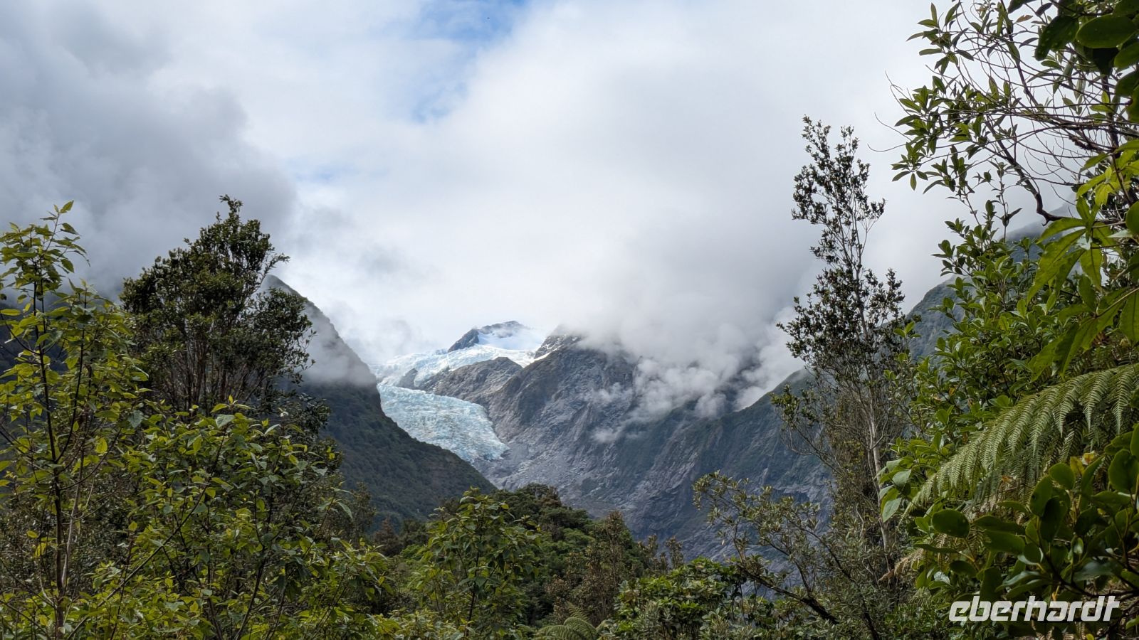 Nach einer erholsamen Nacht fuhren wir weiter zum Franz-Josef-Gletscher. Das Wetter war auf unserer Seite, und wir hatten freie Sicht auf die Spitze des Gletschers. Vor dem Gletscher stehend, schaute man hinauf und spürte die eigene Winzigkeit – ein Moment voller Ruhe und Ehrfurcht.