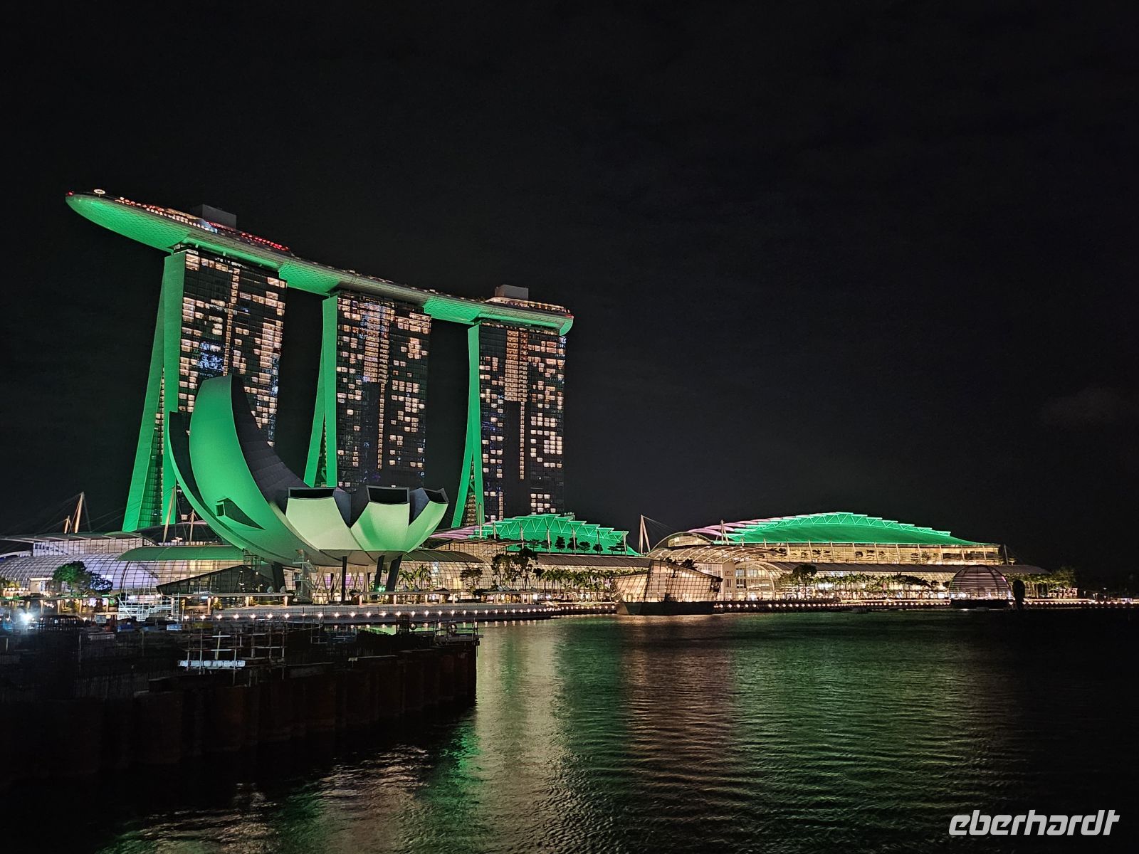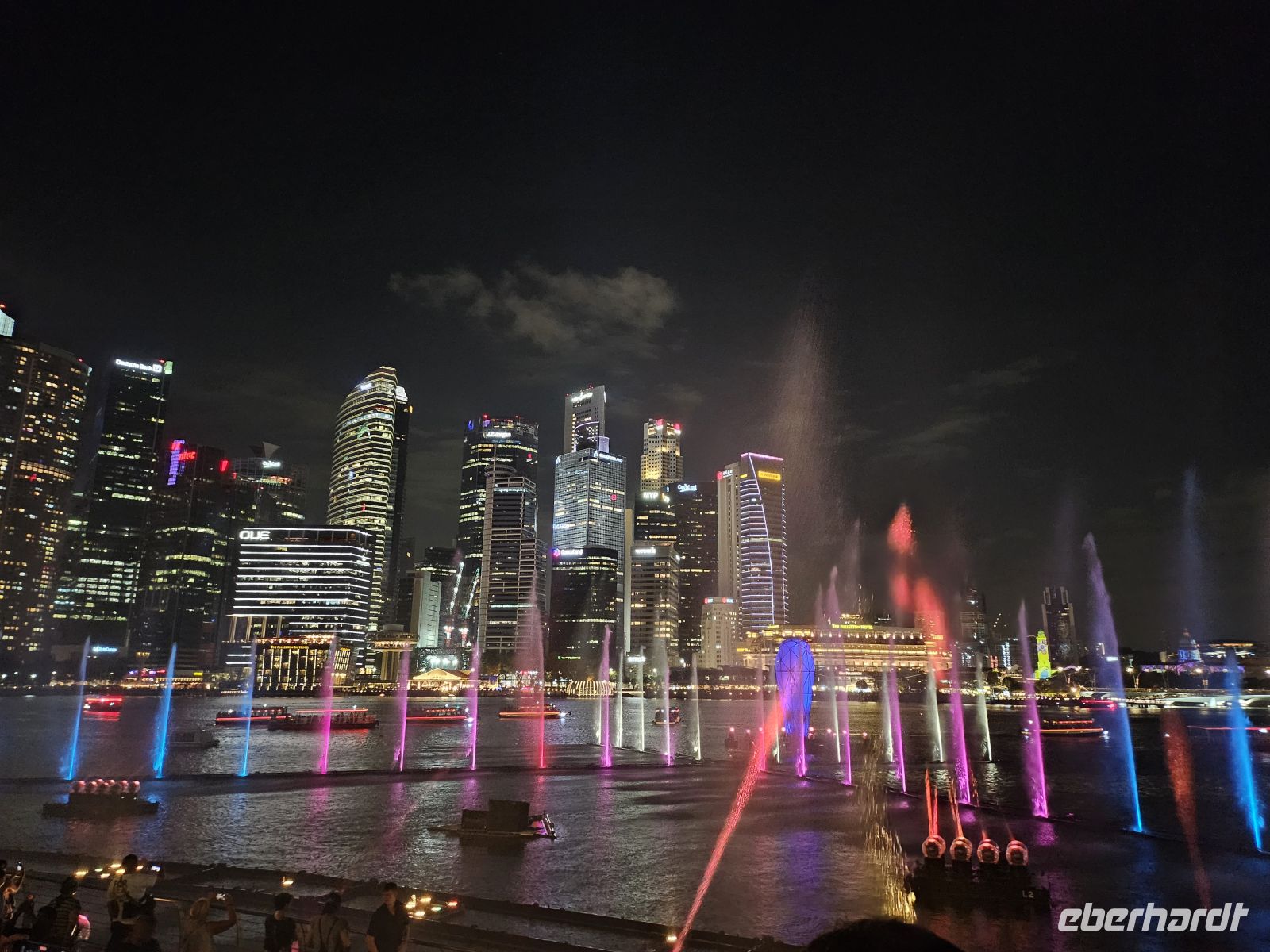 Am Abend erwartet uns gleich ein erstes großes Highlight: die spektakuläre Licht- und Wassershow „Spectra“ an der Marina Bay. Vor der leuchtenden Skyline tanzen Wasserfontänen im Takt der Musik, Laserstrahlen zeichnen Bilder in den Nachthimmel und Farben spiegeln sich auf der glatten Wasseroberfläche. Wir stehen staunend an der Promenade und lassen uns von diesem magischen Zusammenspiel aus Licht, Klang und Wasser verzaubern.