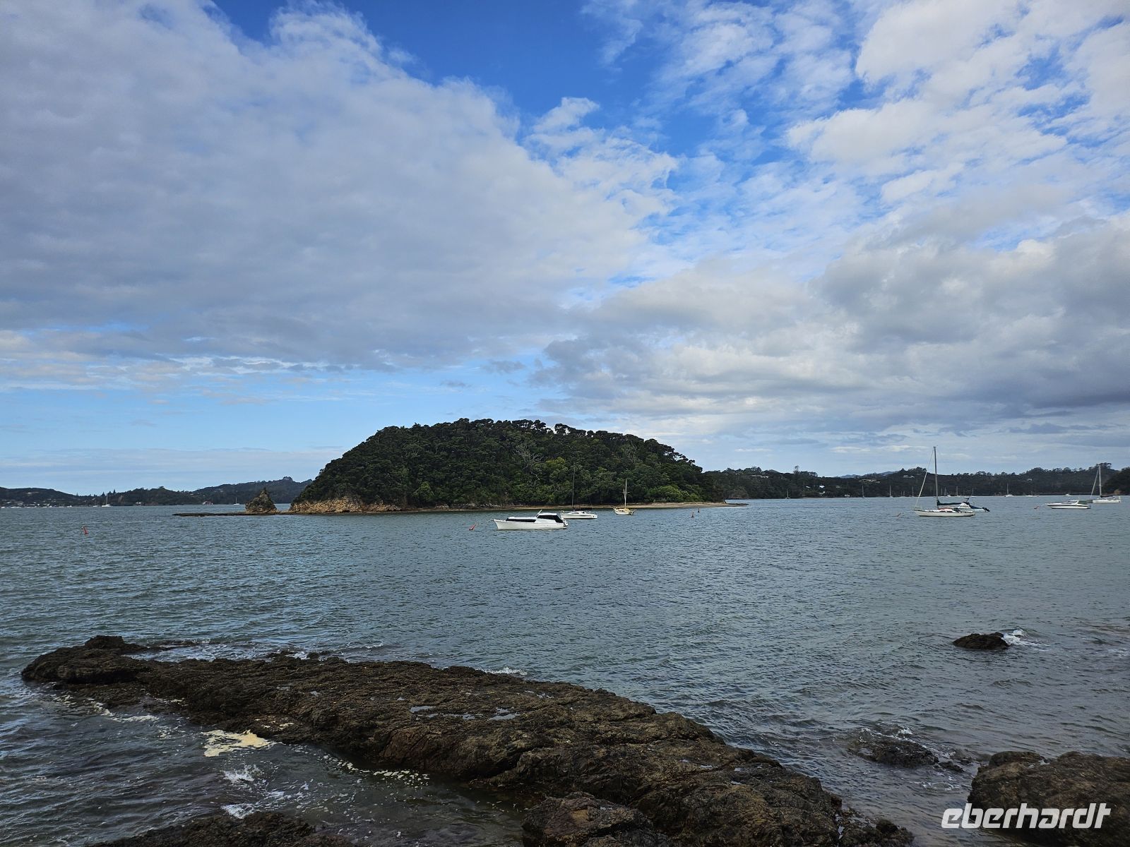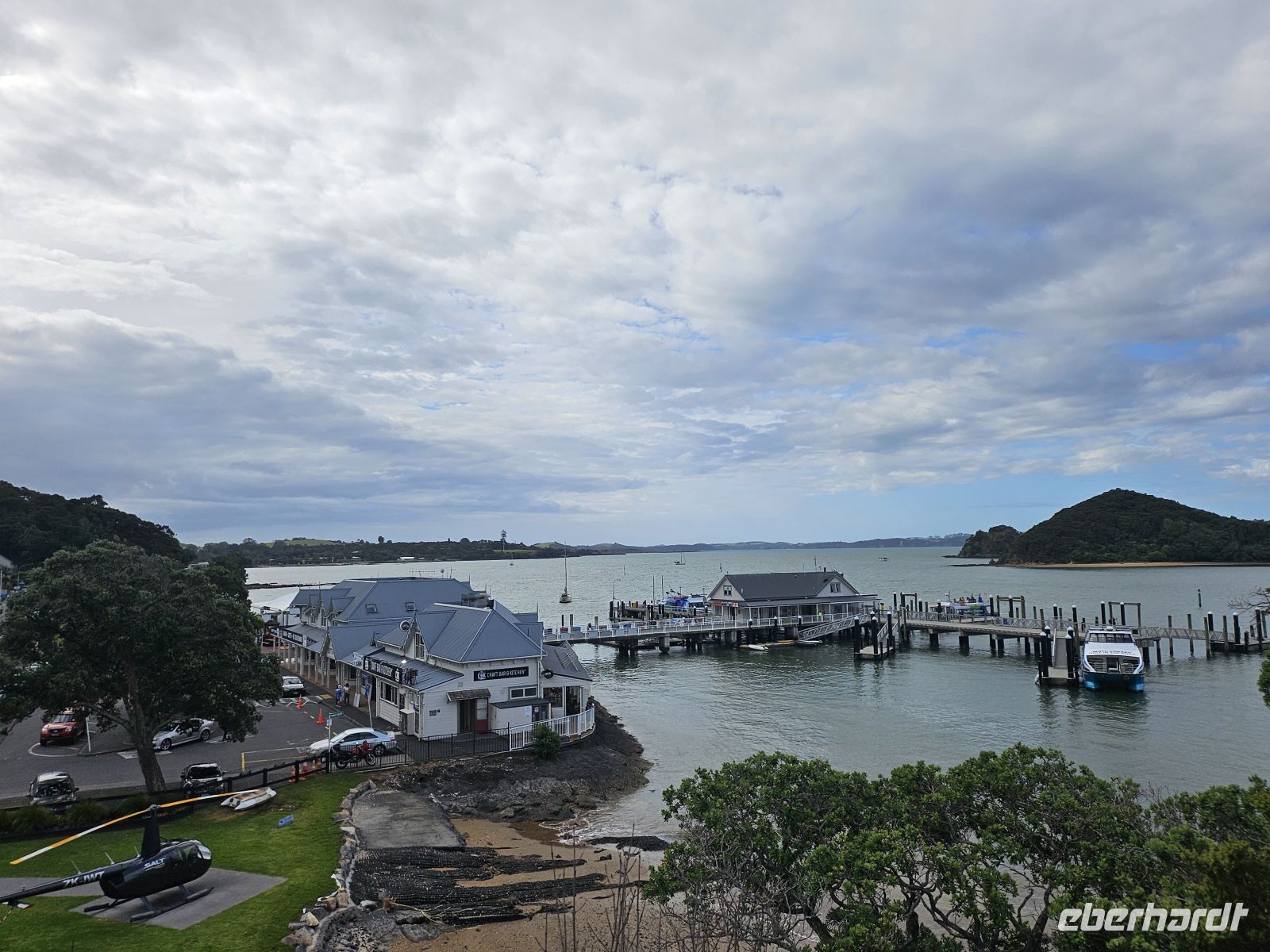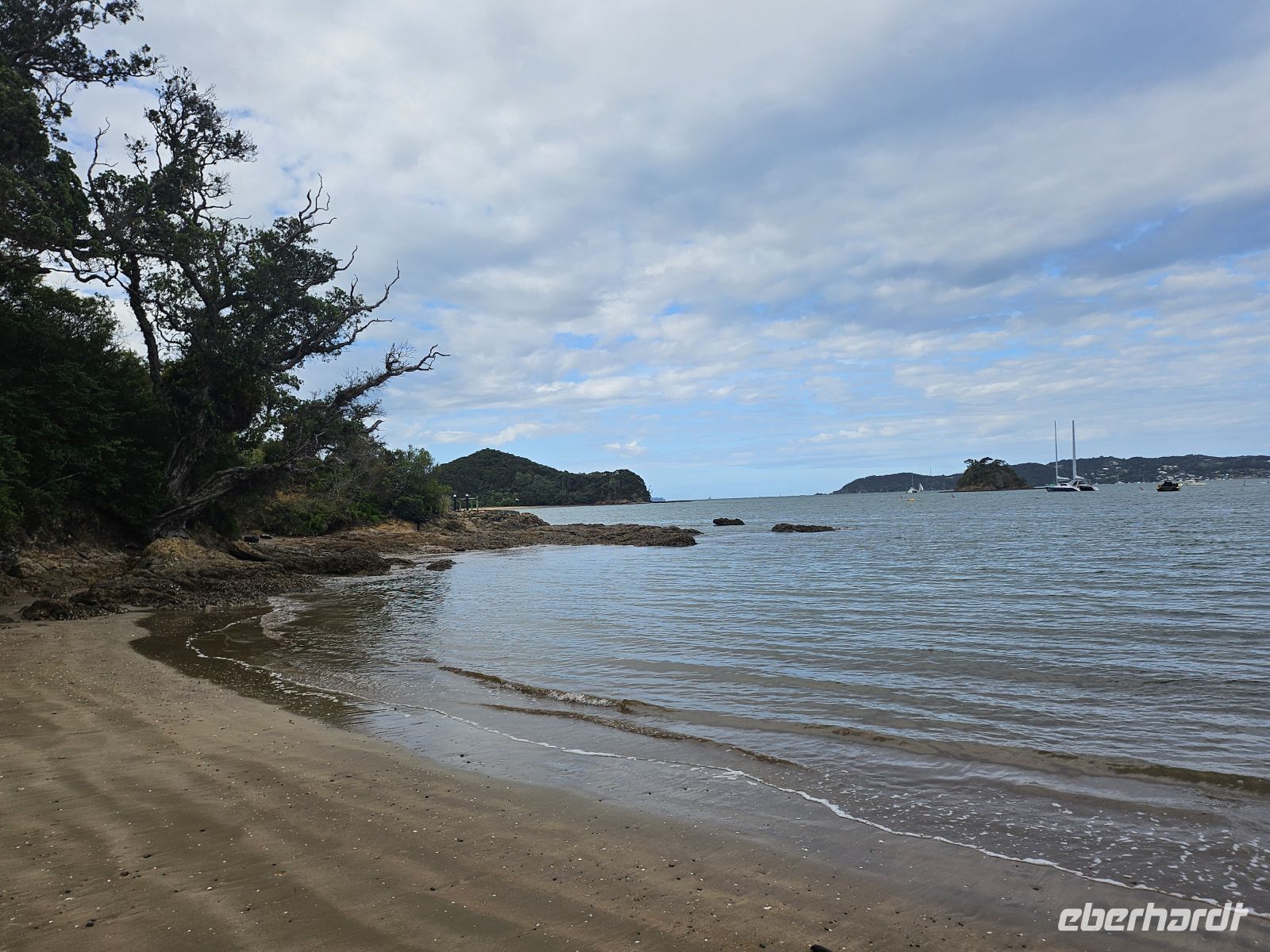 Auf der Weiterfahrt öffnet sich plötzlich der Blick über den Hokianga Harbour – weit, ruhig und fast unwirklich schön. Ein kurzer Stopp, frische Luft, einmal durchatmen. Danach fahren wir weiter Richtung Ostküste, und am Nachmittag erreichen wir Paihia in der Bay of Islands. Palmen, Wasser, Segelboote – die Stimmung wird sofort leichter.