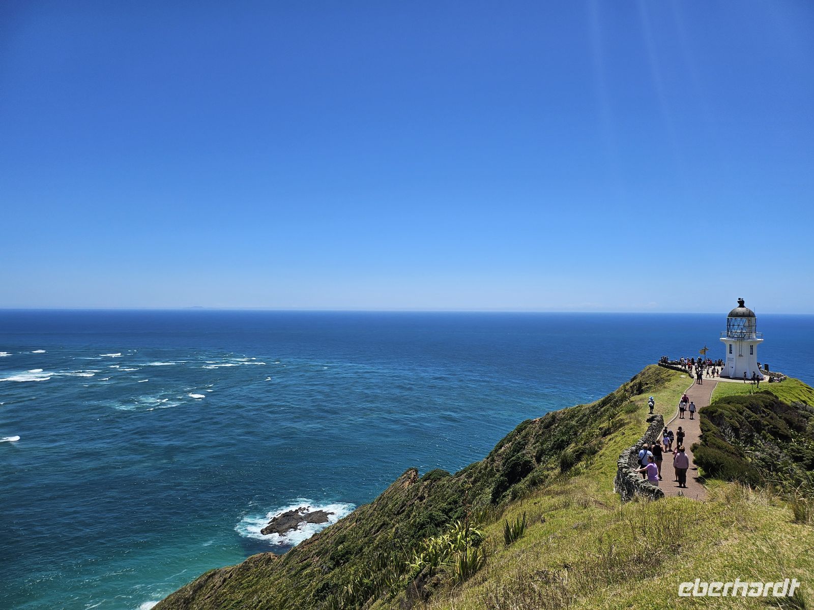 Erst danach fahren wir weiter zum eigentlichen Höhepunkt: Cape Reinga. Der Weg zum Leuchtturm ist gut machbar, und oben stehen wir an diesem Punkt, an dem man sehen kann, wie Pazifik und Tasmanisches Meer aufeinandertreffen. Für die Māori ist Cape Reinga kein geografischer, sondern ein spiritueller Ort: Der Legende nach beginnen hier die Seelen Verstorbener ihre letzte Reise in die Heimat der Ahnen. Diese Bedeutung verleiht dem Ort eine spürbare Ruhe, die wir beim Blick über das Meer wahrnehmen.