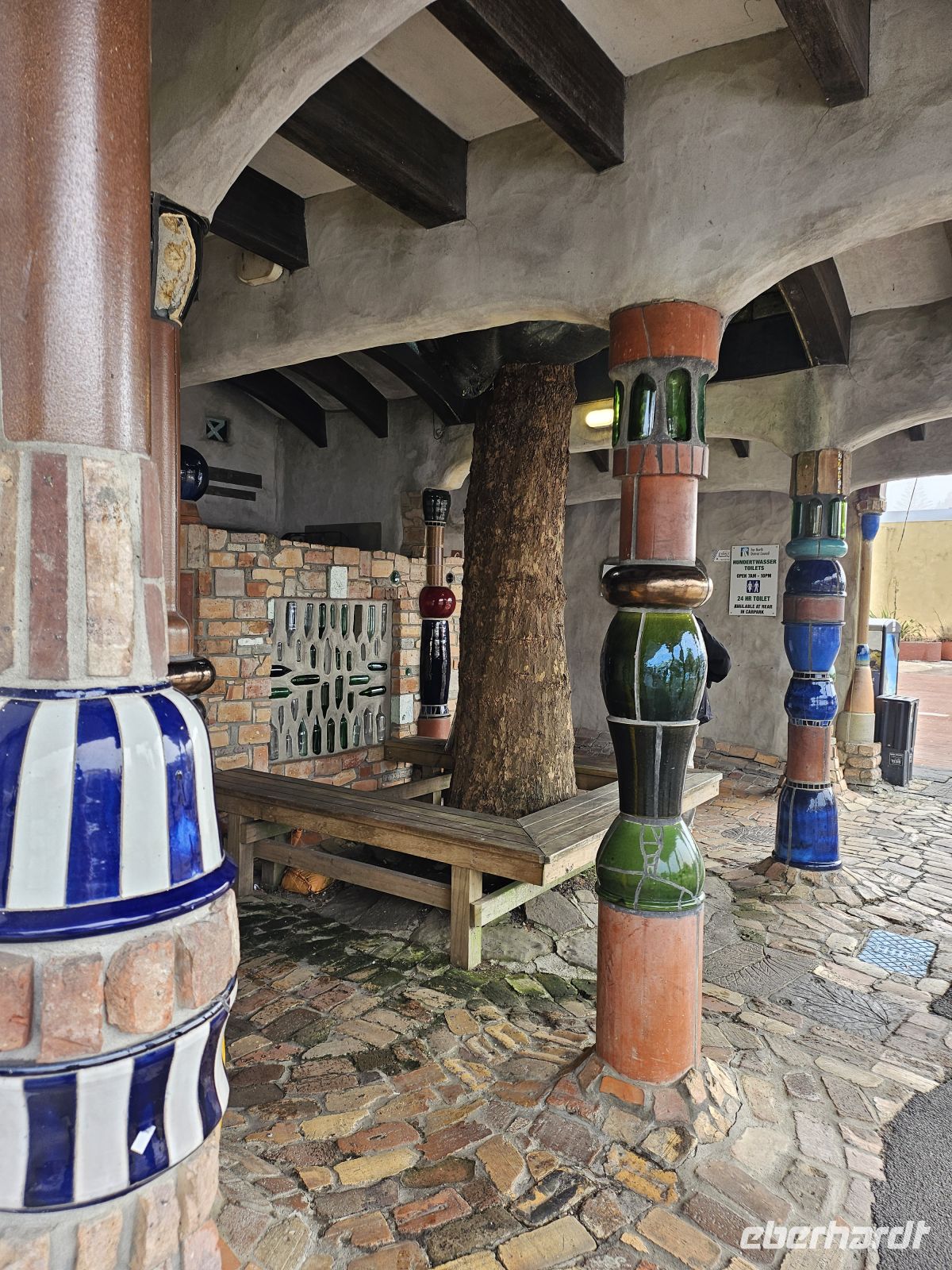 Unterwegs legen wir einen besonderen Fotostopp ein: die berühmten Hundertwasser-Toiletten in Kawakawa – eines der ungewöhnlichsten Bauwerke Neuseelands, entworfen vom österreichischen Künstler Friedensreich Hundertwasser. Kurz darauf besuchen wir auch das nahegelegene Hundertwasser-Kunstzentrum, ein weiteres farbenfrohes Zeugnis seines Wirkens in Neuseeland.