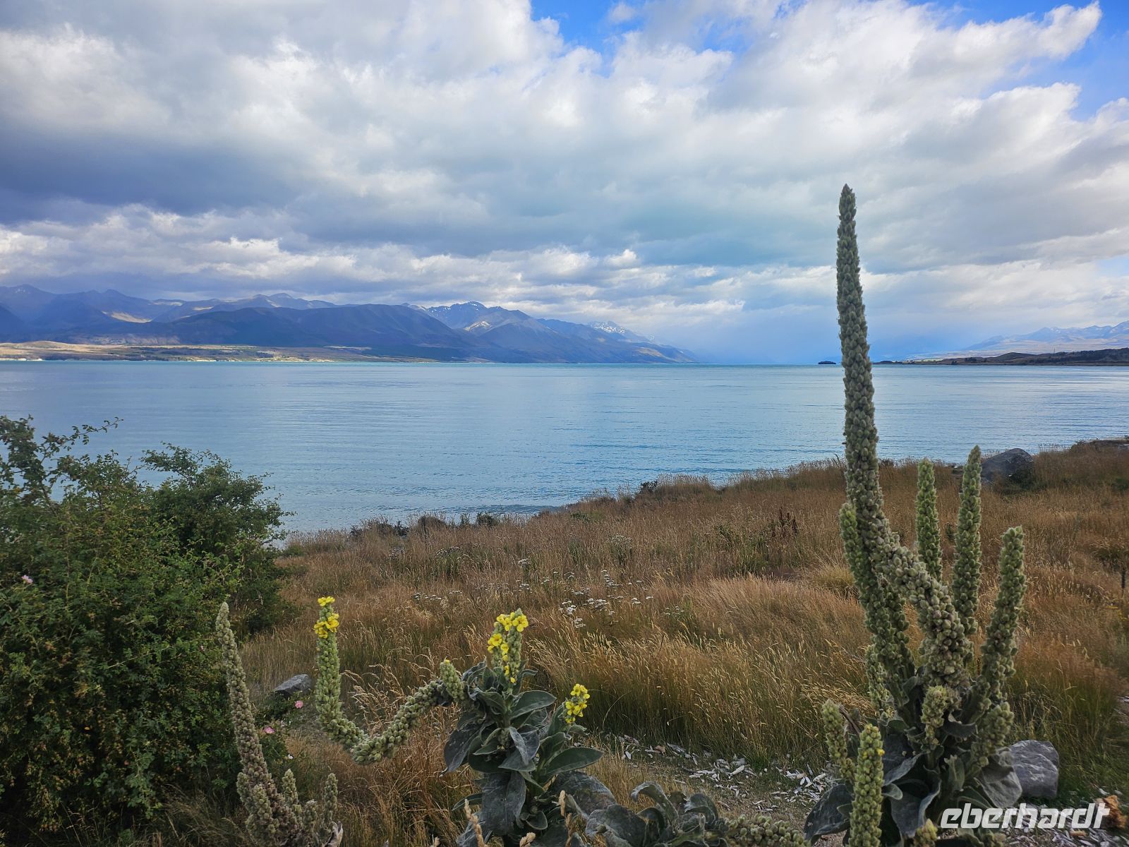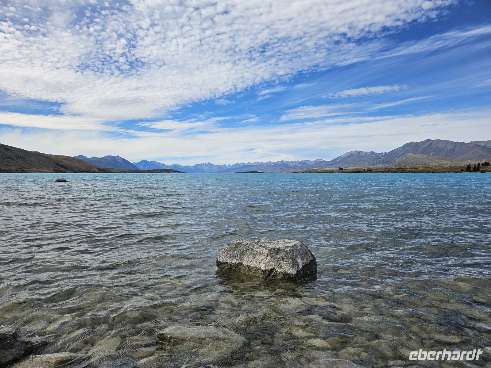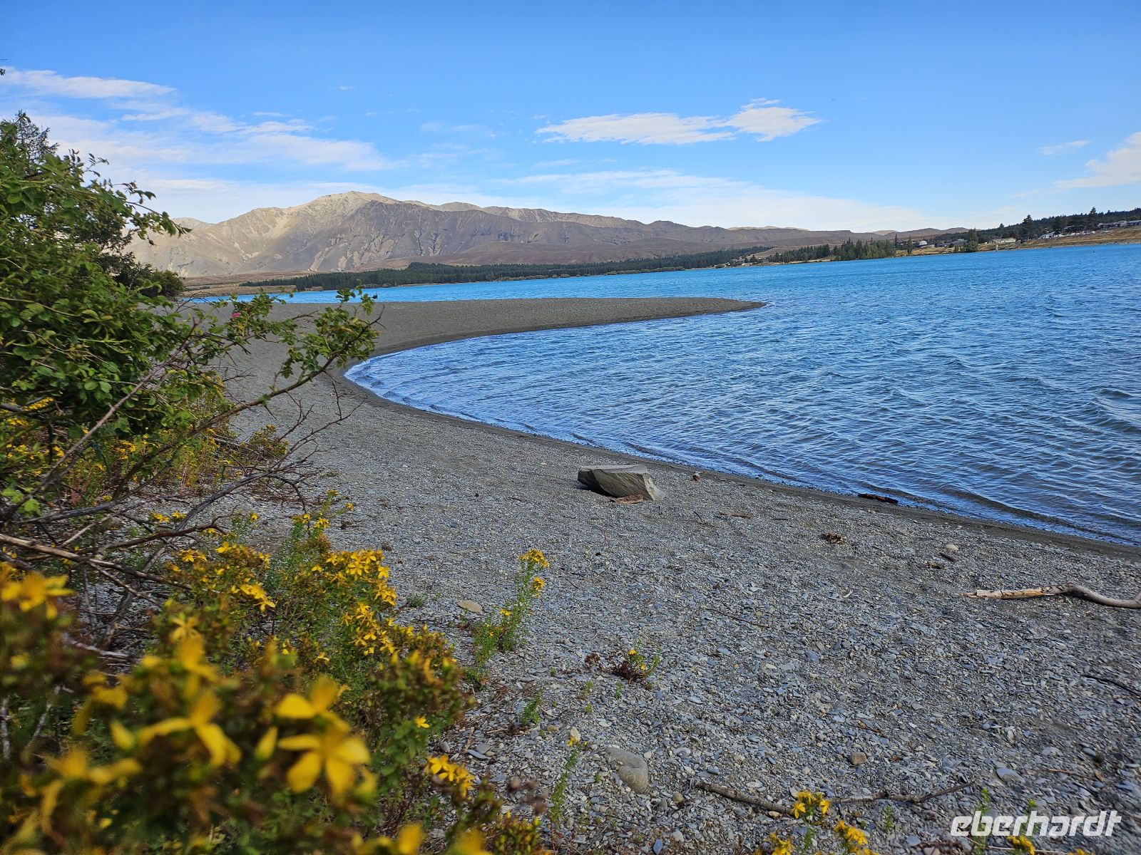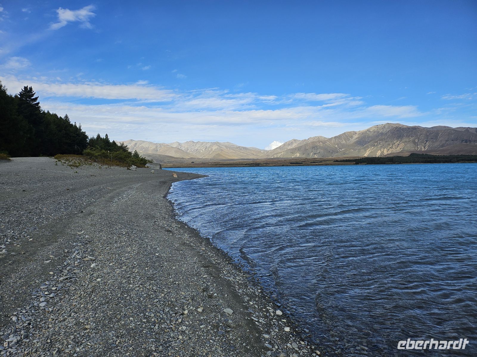 Am Nachmittag setzen wir unsere Fahrt fort und erreichen gegen 16:15 Uhr den Lake Tekapo. Schon aus der Ferne fällt die außergewöhnliche Farbe des Sees auf: ein intensives Türkis, das durch feinste Gesteinspartikel aus den Gletschern der Südalpen entsteht. Direkt am Ufer besuchen wir die kleine Church of the Good Shepherd, eine der meistfotografierten Kirchen Neuseelands, malerisch vor Bergkulisse und See gelegen.
