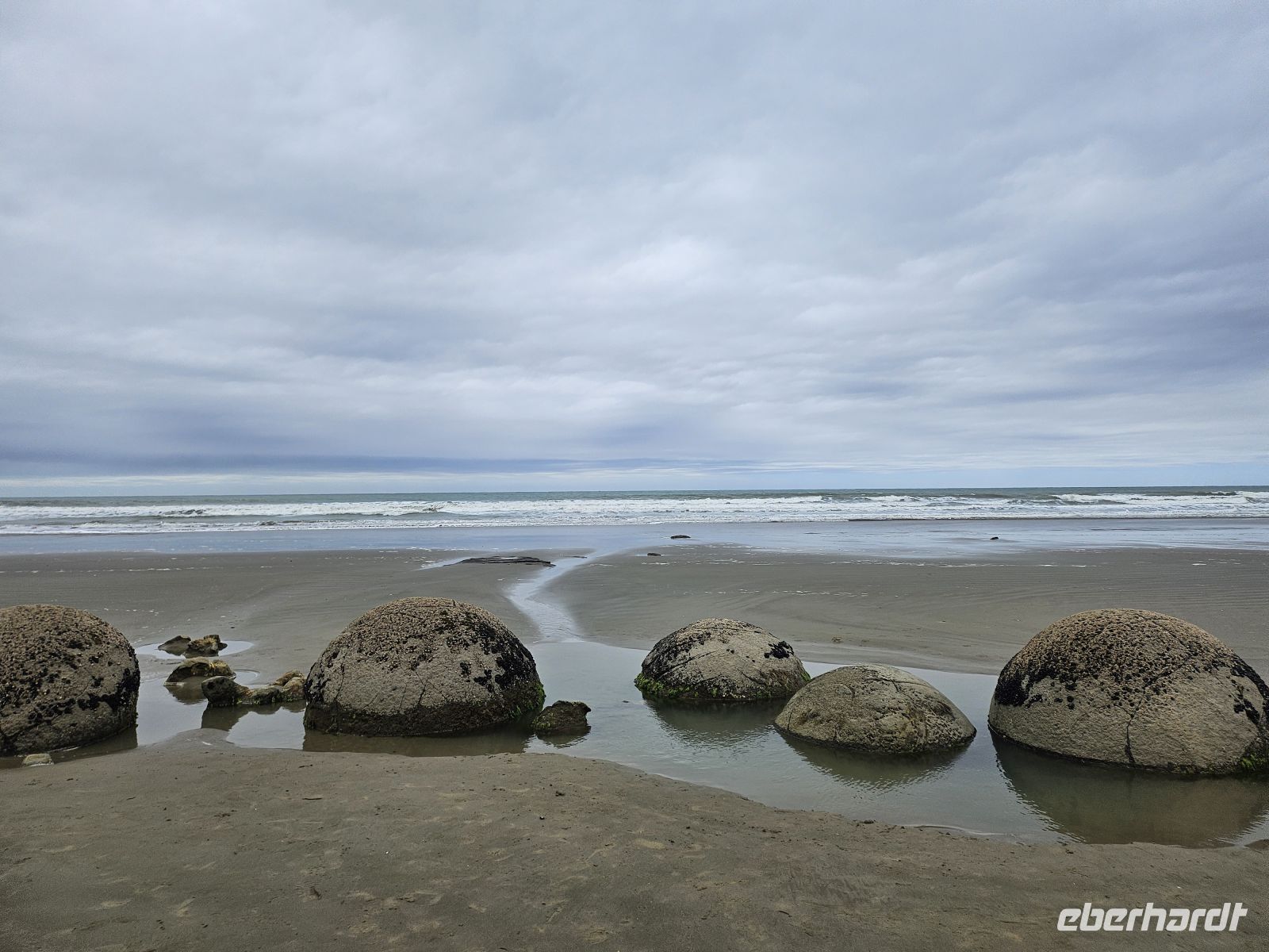 Am frühen Nachmittag erreichen wir die berühmten Moeraki Boulders. Bei einem Spaziergang über den Strand stehen wir schließlich vor den geheimnisvollen, fast perfekt runden Steinkugeln, die hier seit Millionen Jahren aus dem Gestein herausgewittert sind. Die größte von ihnen misst über zwei Meter im Durchmesser. Nach den Erläuterungen zur Entstehung bleibt noch Zeit für eine kleine Pause mit Kaffee oder Snack direkt am Meer.