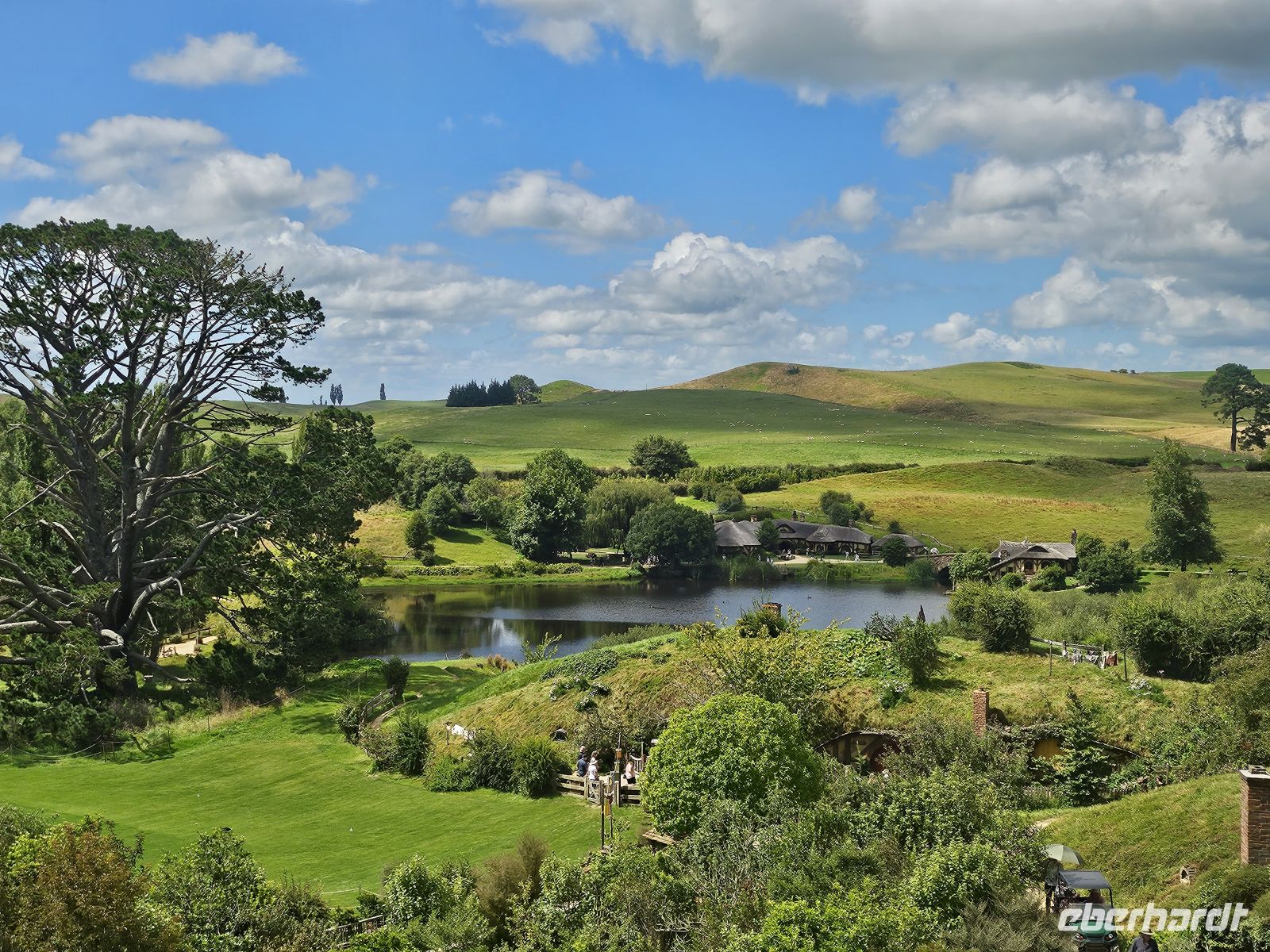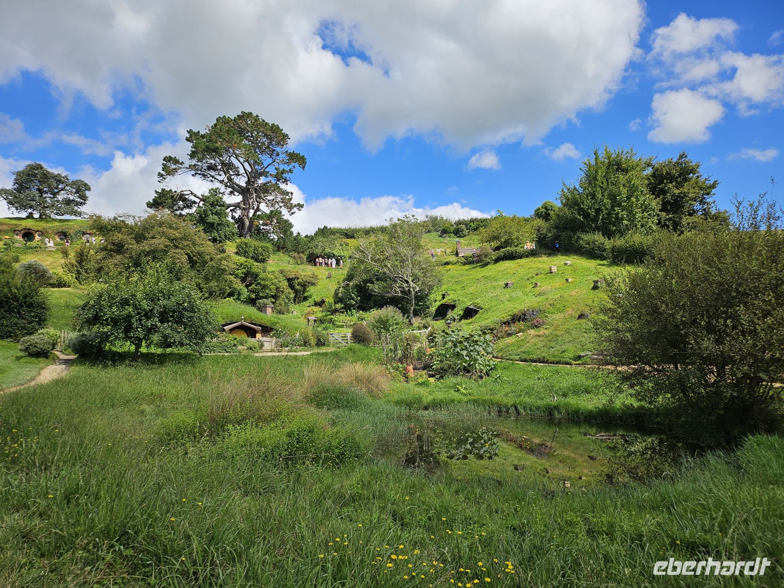 Bei bestem Wetter erleben wir Hobbiton als liebevoll gestaltete Filmkulisse aus „Der Herr der Ringe“ und „Der Hobbit“. Sanfte grüne Hügel, kleine Hobbithöhlen mit runden Türen und gepflegte Gärten lassen die Fantasiewelt lebendig wirken. Während der etwa 90-minütigen Führung erfahren wir Hintergründe zu den Dreharbeiten von Peter Jackson und zur Entstehung des Sets. Zum Abschluss kehren wir im „Green Dragon Inn“ ein und stoßen mit einem traditionellen Getränk an – ein stimmungsvoller Moment mitten im Auenland.