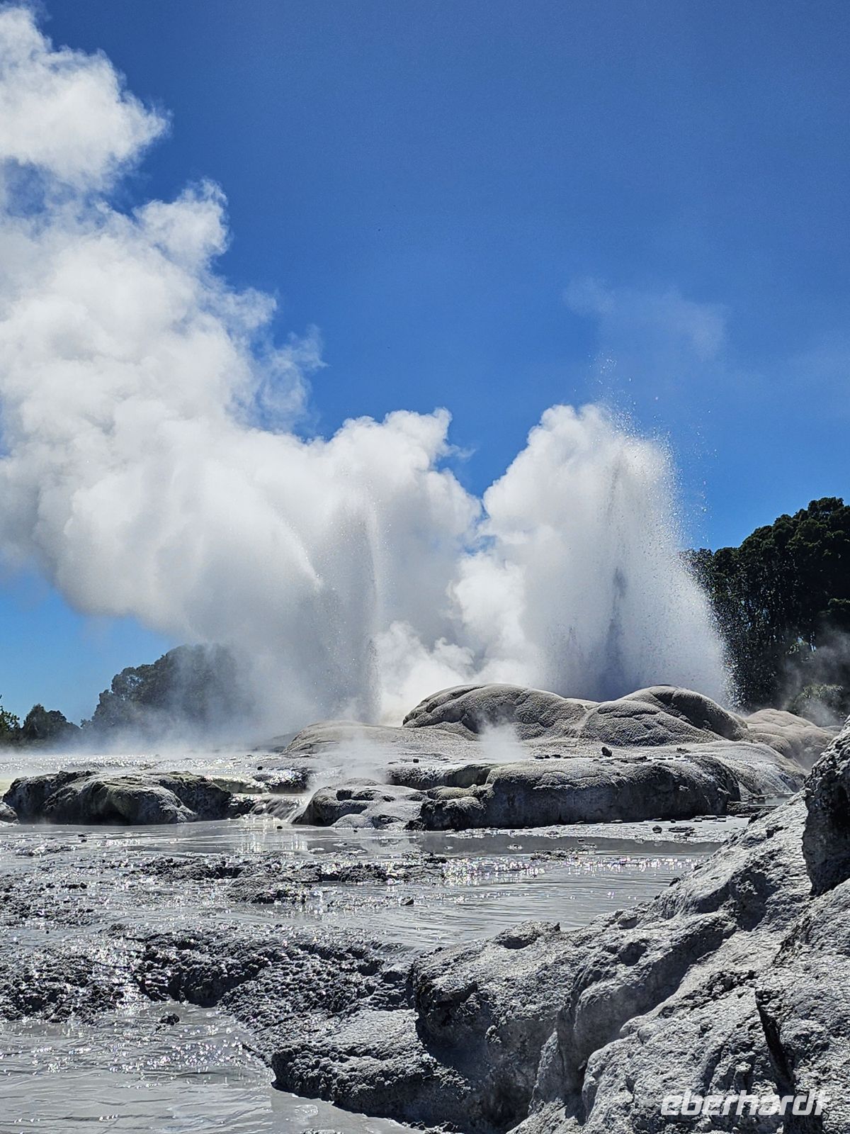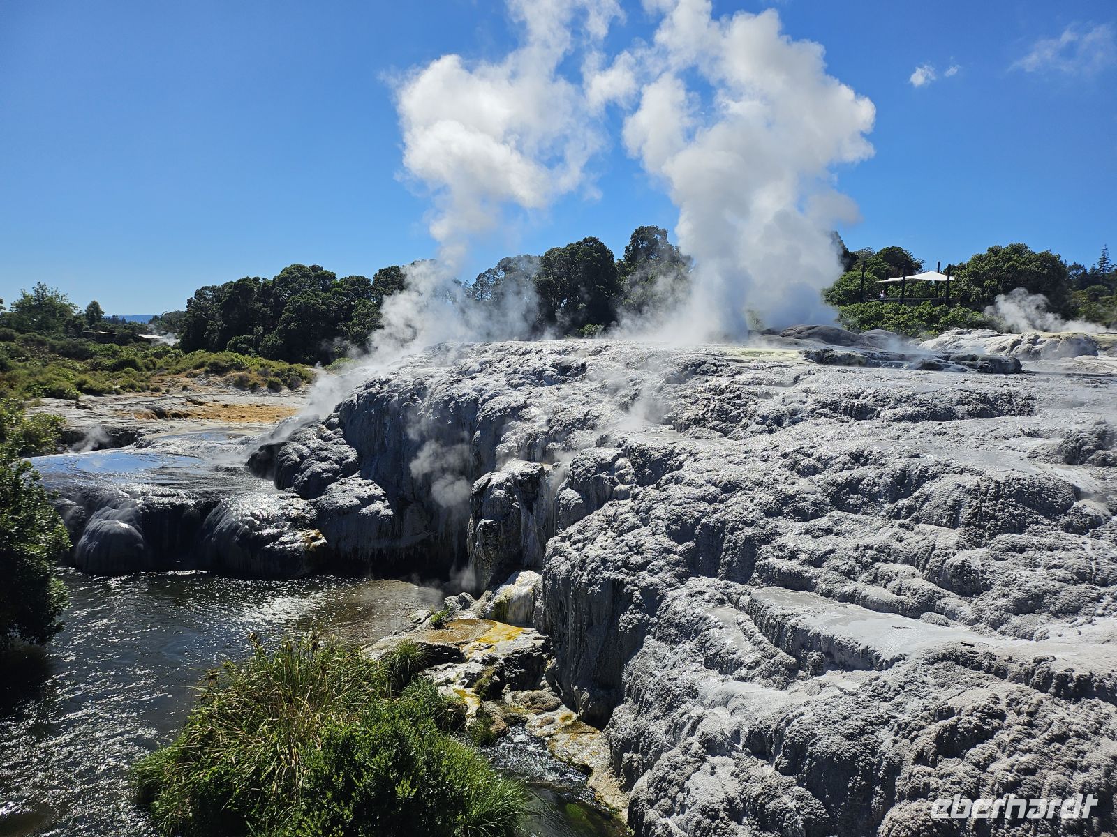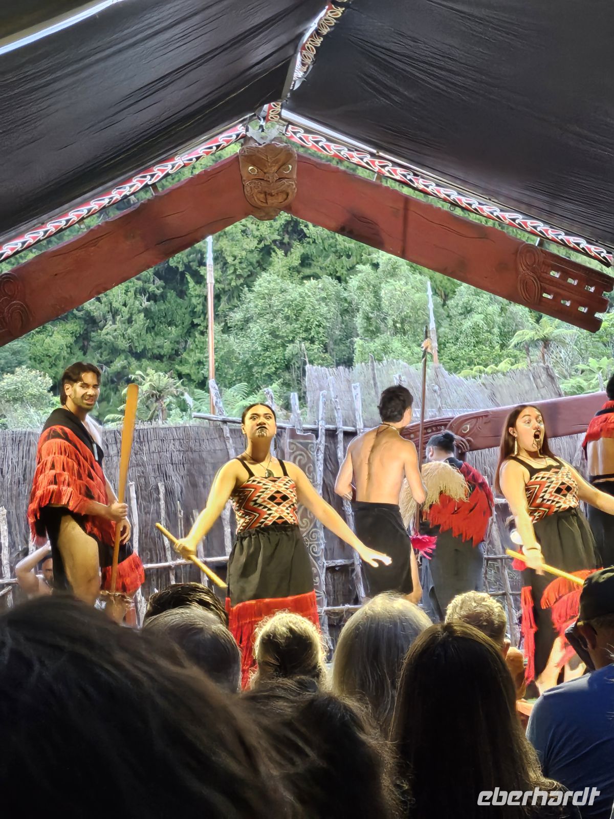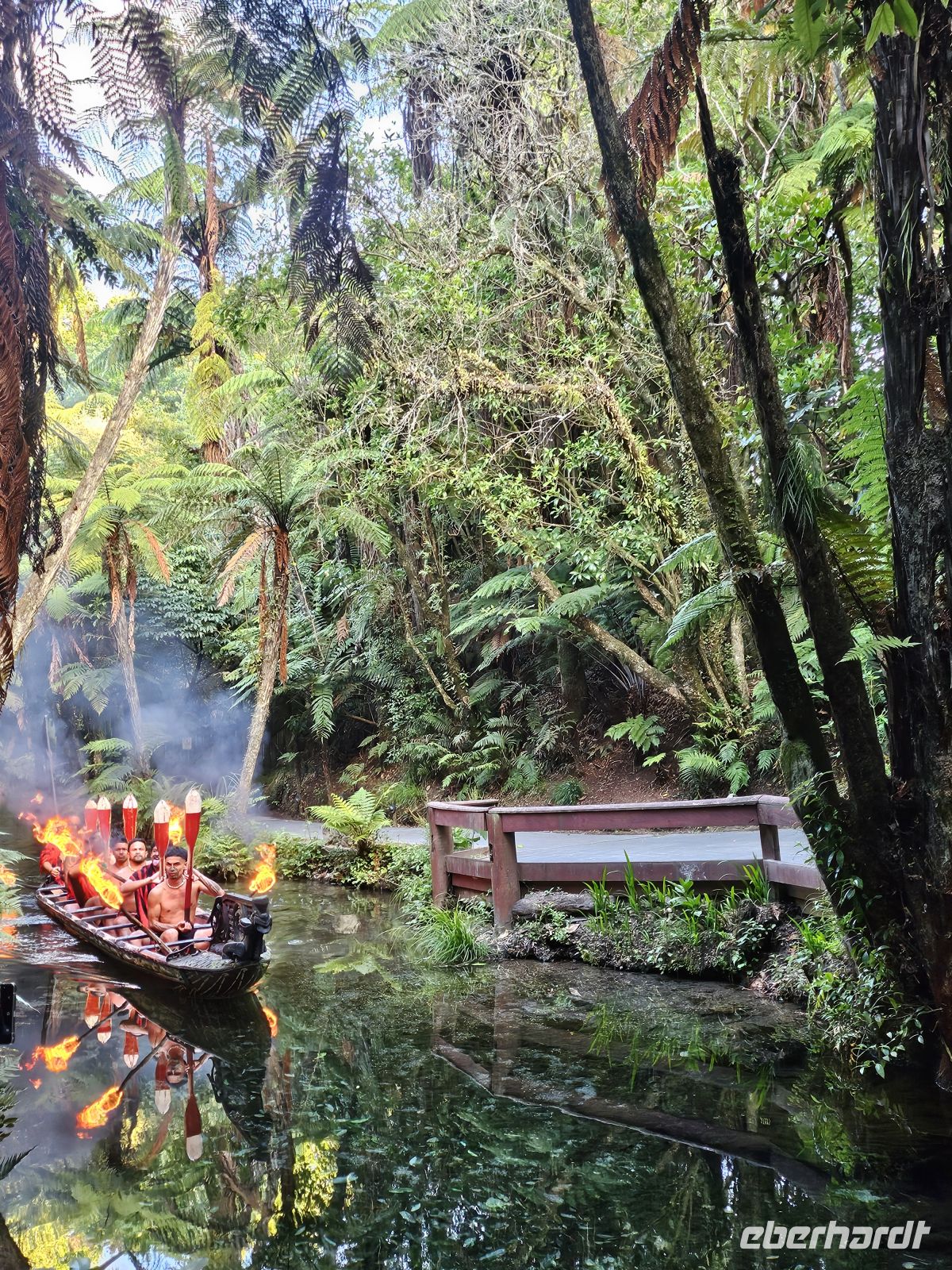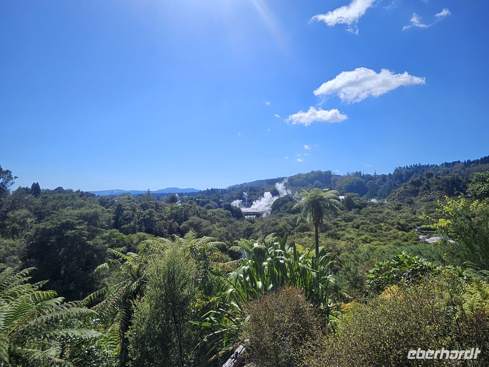 Am Nachmittag treffen wir in Rotorua wieder zusammen. Die Stadt liegt in einer geothermisch aktiven Zone, und schon beim Aussteigen bemerken wir den typischen Schwefelgeruch, der von heißen Quellen und dampfenden Erdspalten stammt. Rotorua ist eines der wichtigsten Zentren der Māori-Kultur und zugleich für seine vulkanischen Aktivitäten bekannt.