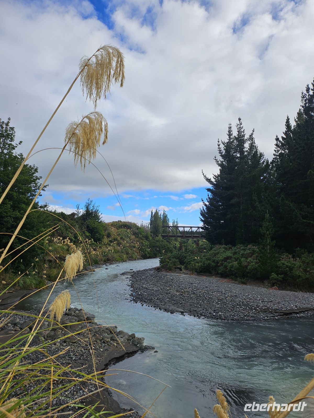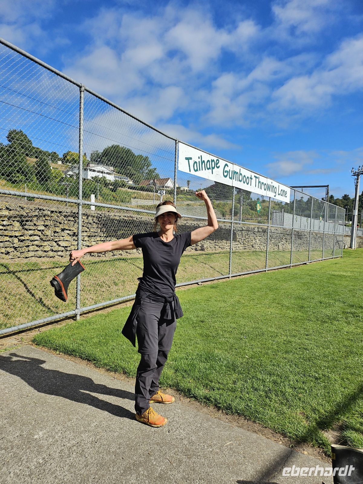 Unser erster Stopp führt uns zum Tangiwai Memorial, das an das schwerste Zugunglück Neuseelands im Jahr 1953 erinnert. Eine kurze, stille Station, die Geschichte und Landschaft miteinander verbindet. Danach wird es deutlich lebhafter: In Taihape, der „Gumboot Capital of the World“, probieren wir uns im Gummistiefelweitwurf – mit viel Lachen, Ehrgeiz und am Ende sogar einer kleinen Siegerkür.