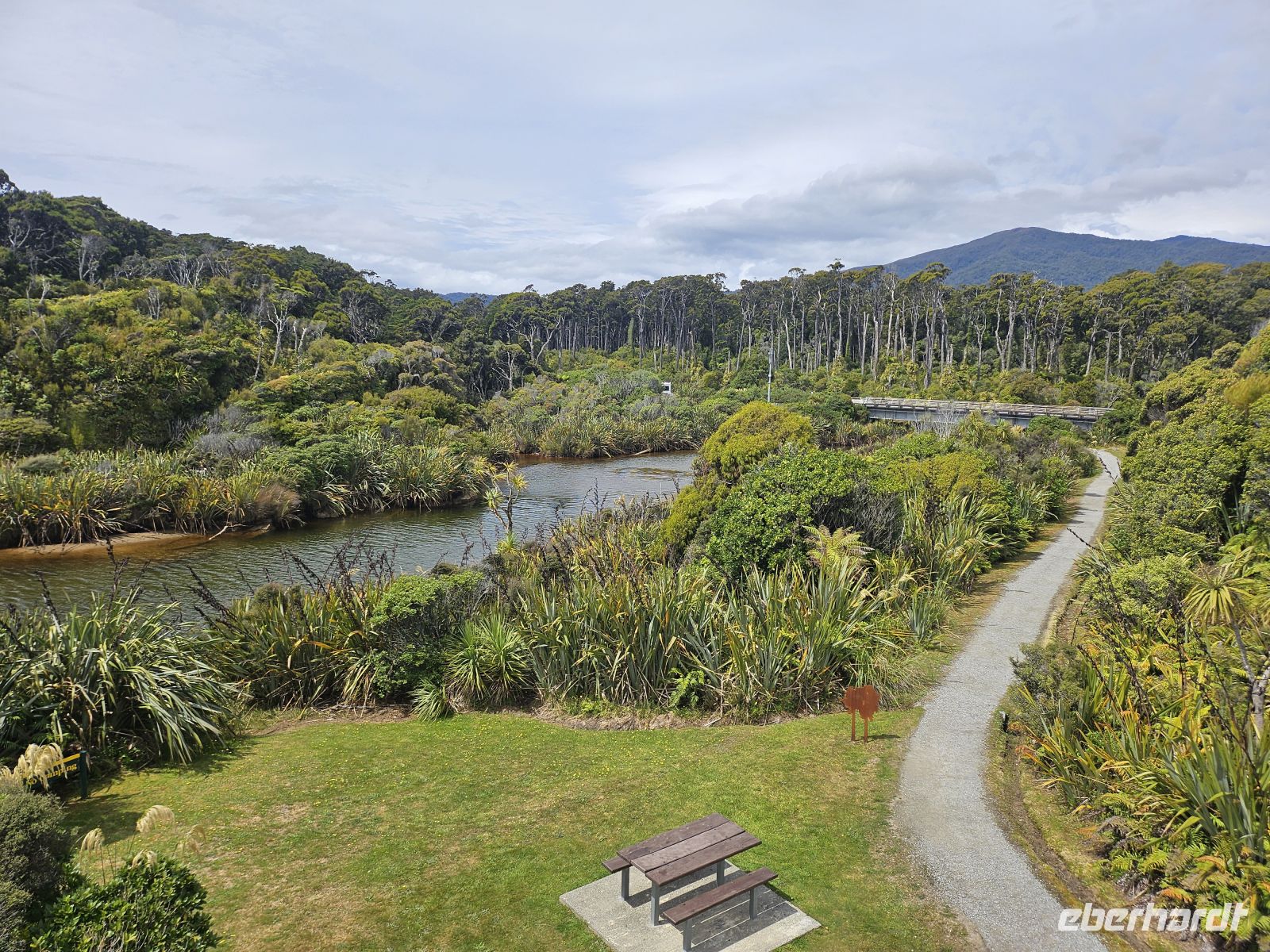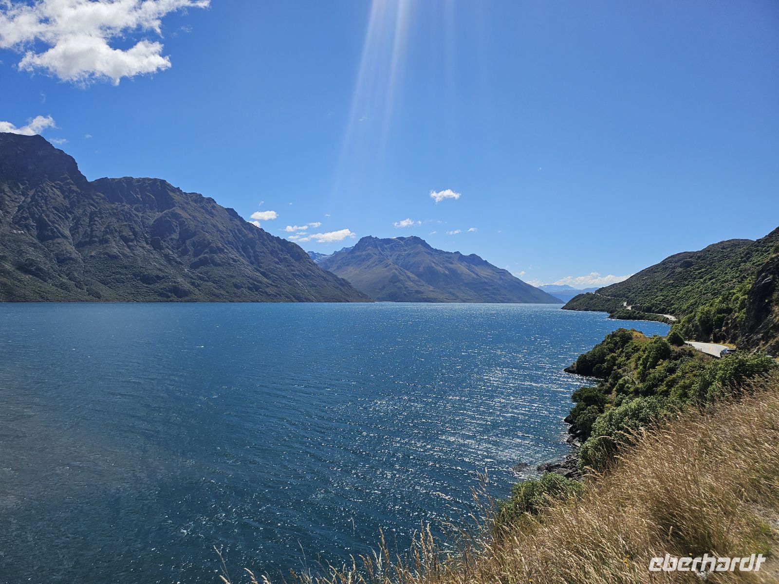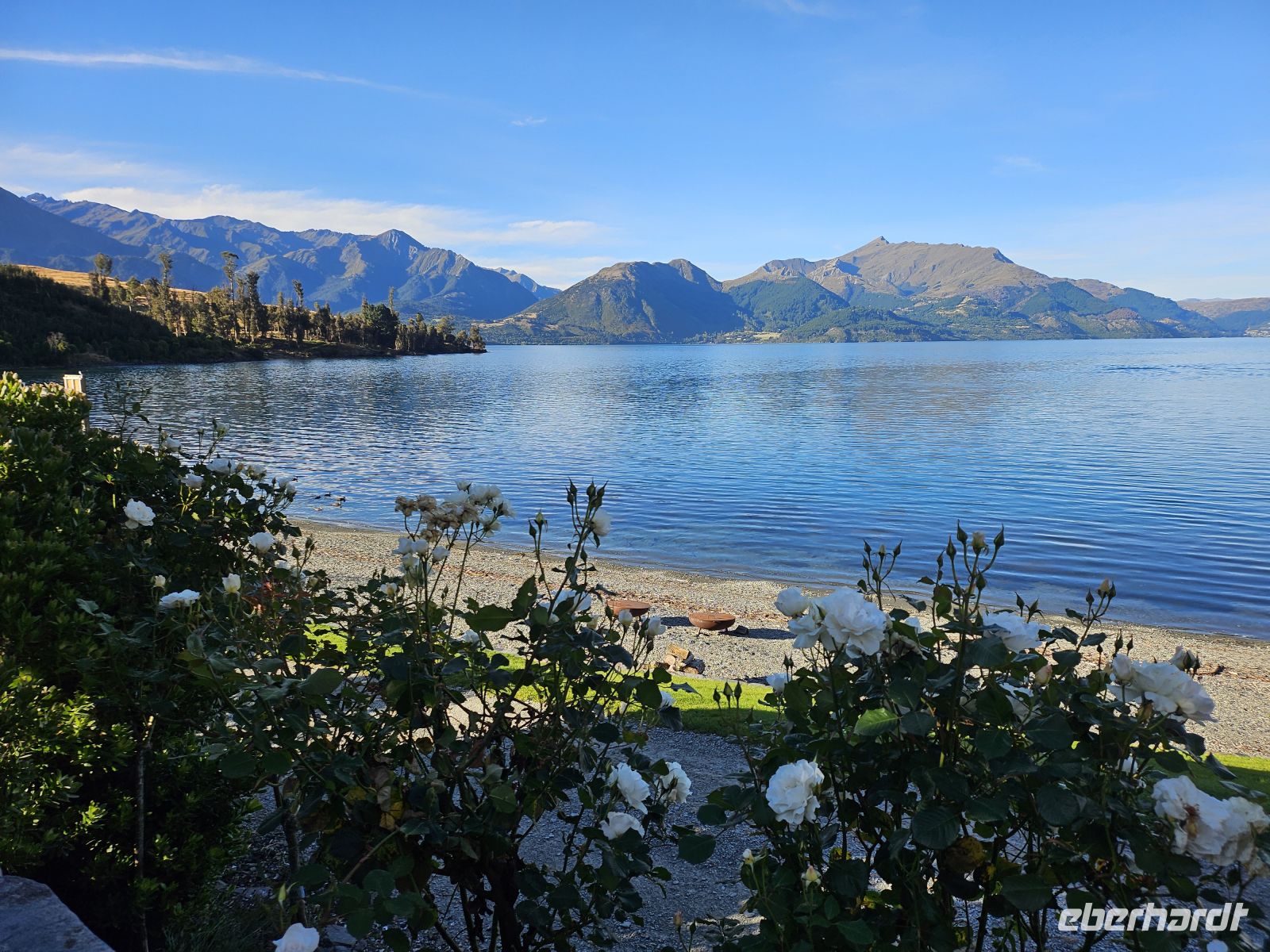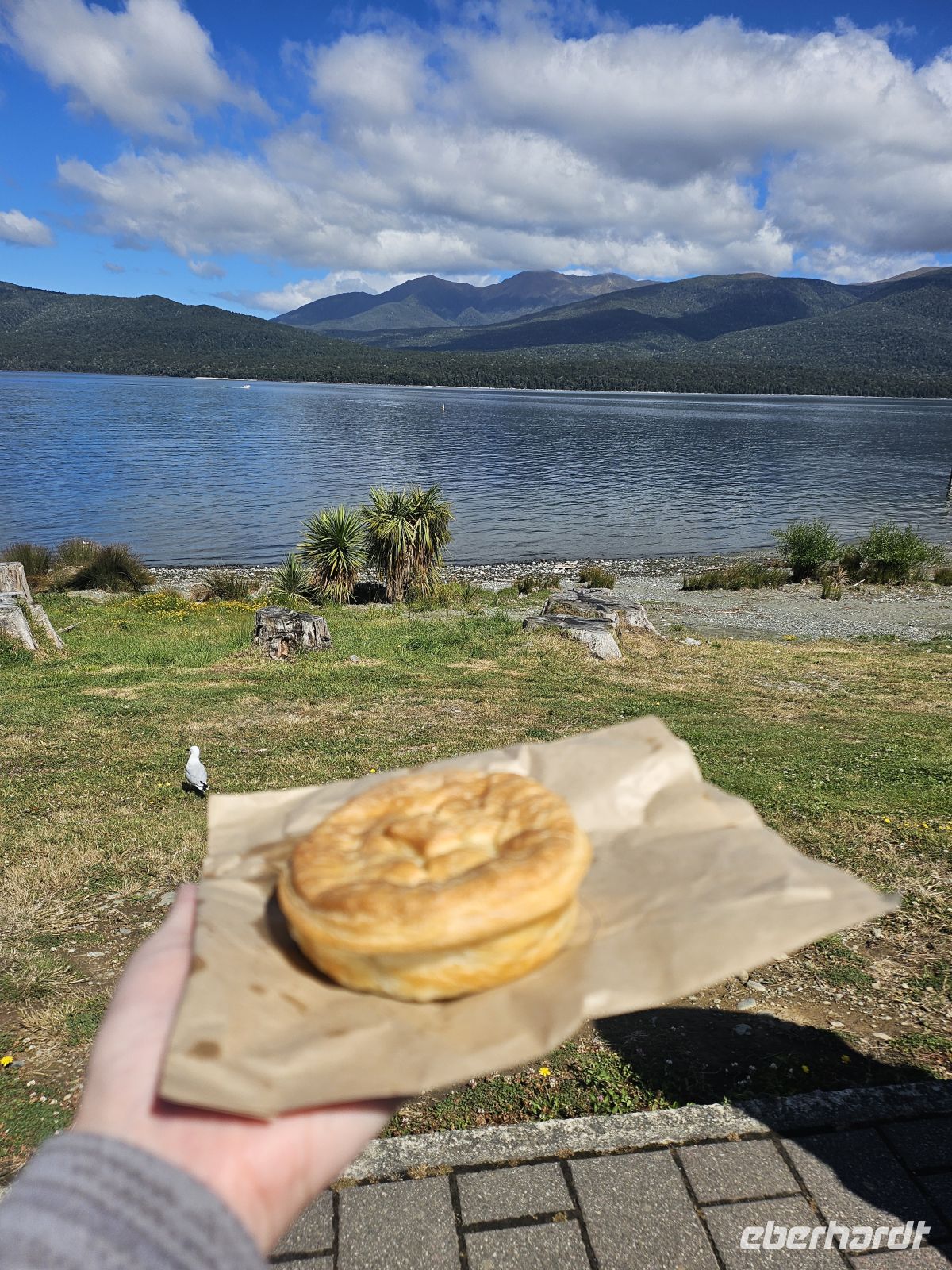 Gegen 9:30 Uhr erreichen wir wieder den Anleger. Die anschließende Fahrt führt uns zurück durch den Fiordland-Nationalpark nach Te Anau, wo wir bei strahlendem Sonnenschein eine entspannte Pause am Seeufer einlegen. Hier genießen wir einen kleinen gemeinsamen Snack - frische Pies, die Mariele besorgt hat.