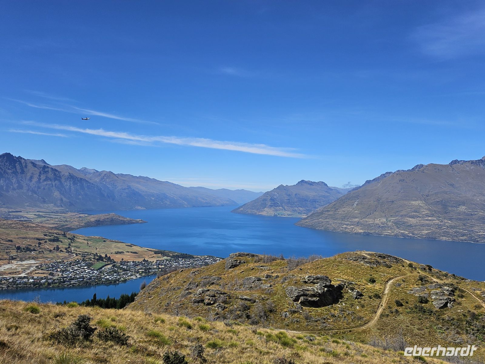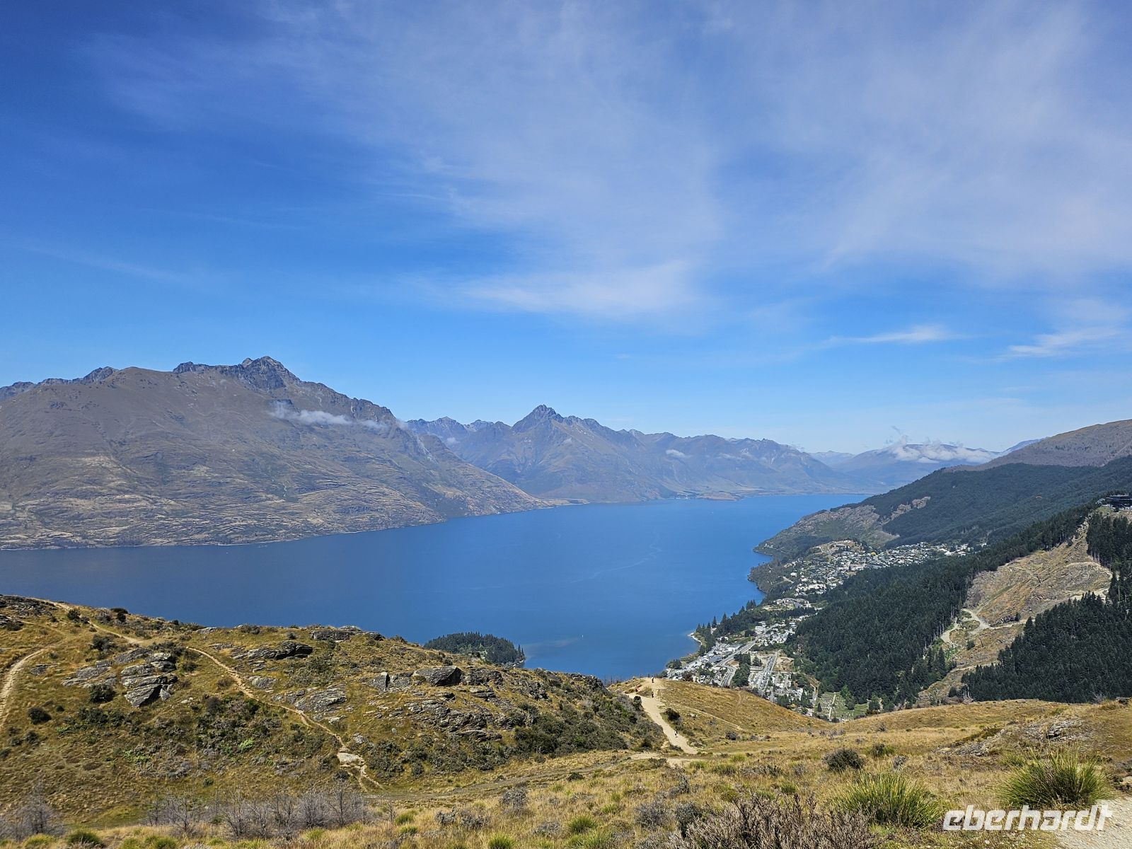 Der Tag beginnt entspannt, denn der Vormittag steht zur freien Verfügung. Viele nutzen die Zeit zum Bummeln durch Queenstown, andere genießen das schöne Wetter aktiv: Einige fahren spontan mit der Seilbahn hinauf und genießen den Blick über den Lake Wakatipu, während andere die Wanderung auf den Hausberg hinter dem Hotel unternehmen – ein anspruchsvoller, aber lohnender Weg mit großartiger Aussicht über Stadt, See und umliegende Berge.