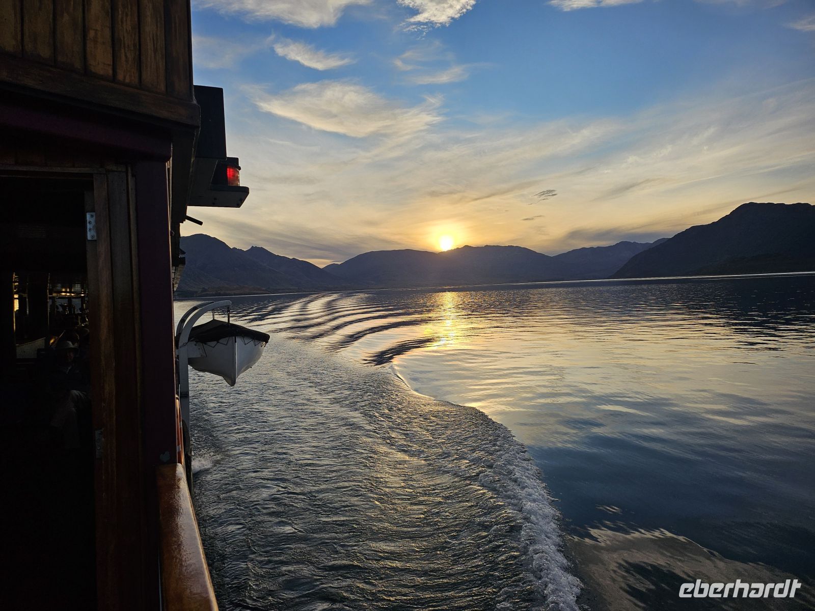 Am Abend bringt uns die TSS Earnslaw zurück nach Queenstown. Bei Musik und Gesang an Bord genießen wir die ruhige Rückfahrt über den See. Gegen 21 Uhr erreichen wir wieder den Hafen.