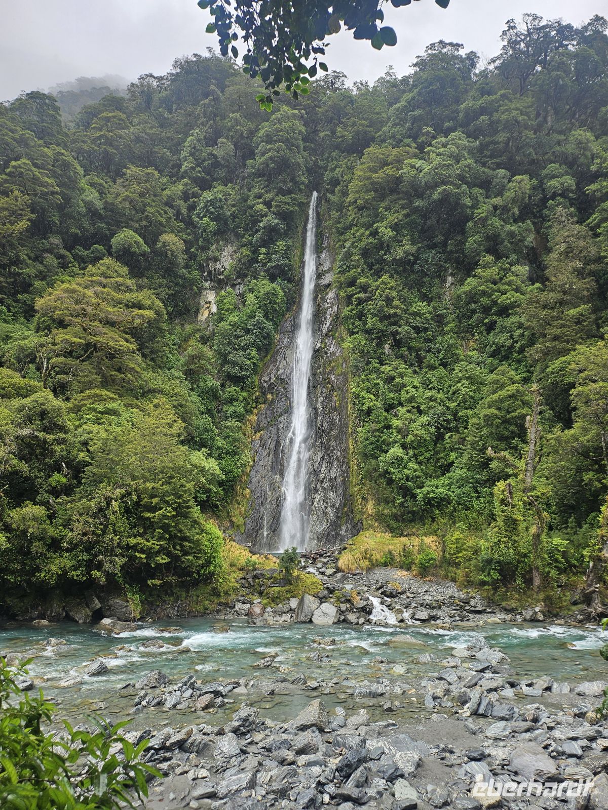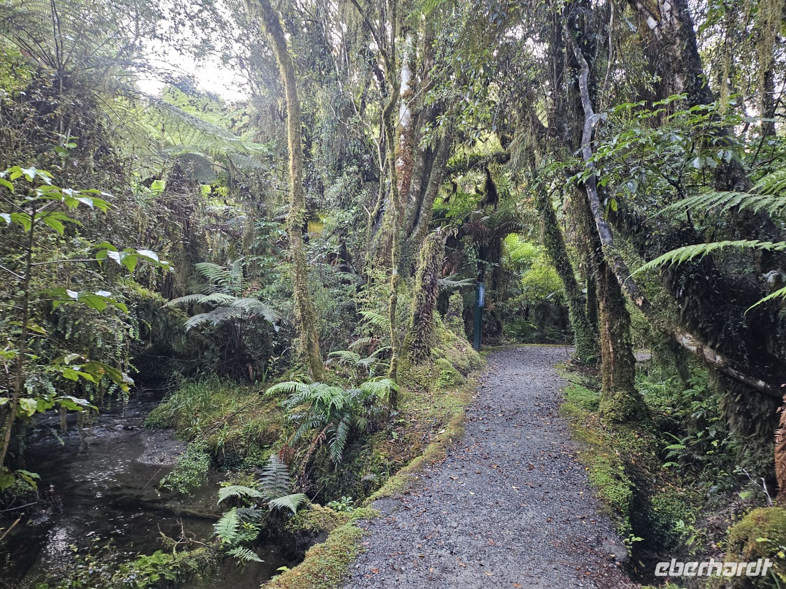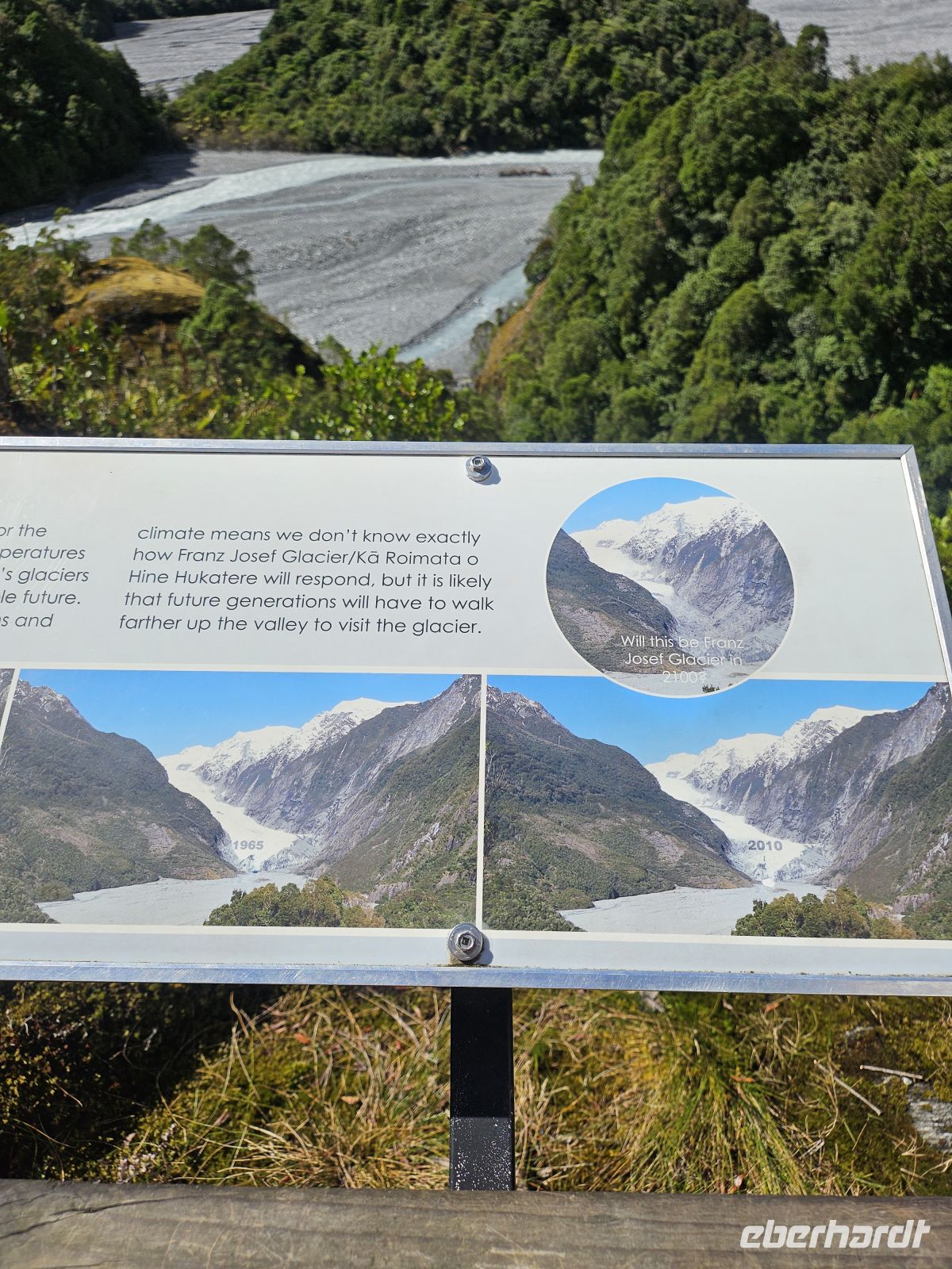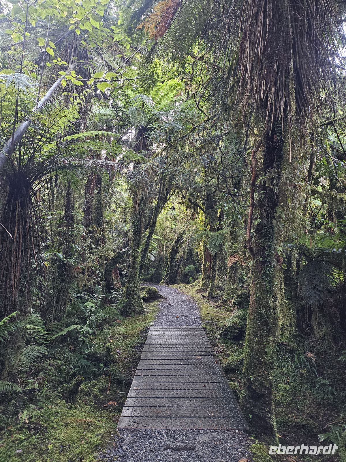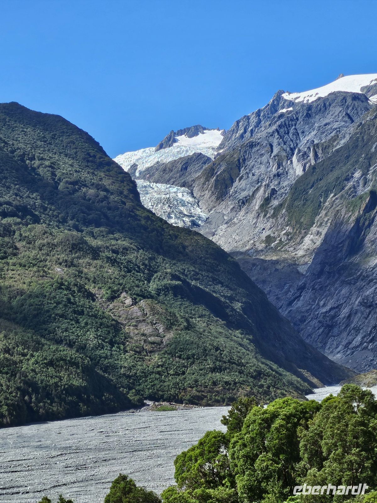 Anschließend fahren wir weiter zum Franz Josef Gletscher. Eine etwa 10-minütige Wanderung bringt uns zur Aussichtsplattform mit Blick auf den Gletscher. Auch wenn sich das Eis in den letzten Jahrzehnten stark zurückgezogen hat, ist die Gletscherzunge gut zu erkennen.