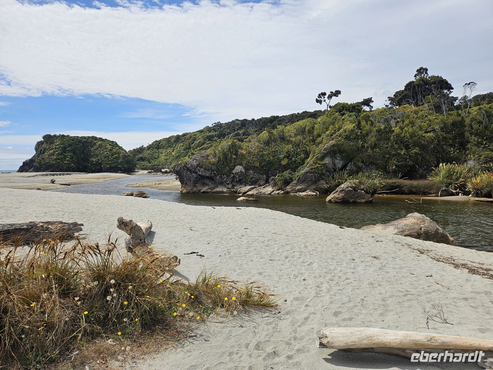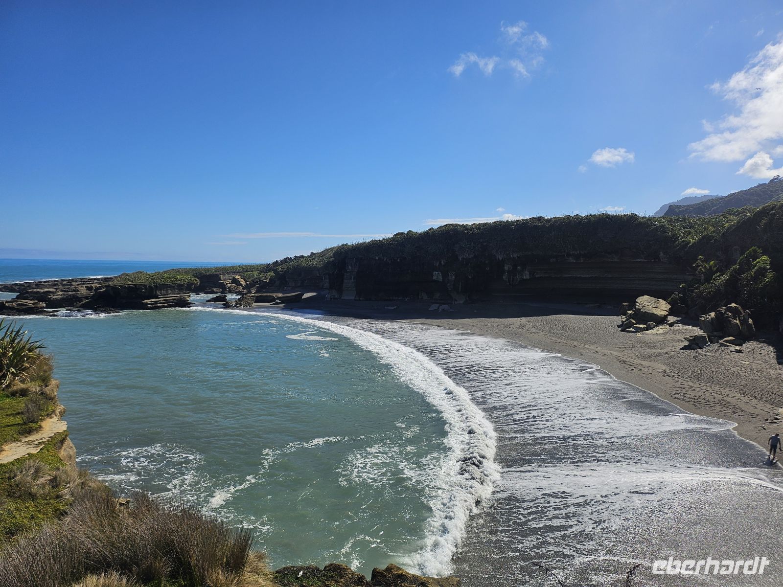 Danach wird es plötzlich ruhig und wunderschön: Wir machen Mittagspause am Tapotupotu Beach. Ein Strand wie aus dem Bilderbuch, mit Zeit zum Durchatmen, Blick aufs Wasser und Lunchbox in der Hand – genau die Sorte Pause, die sich nach einem intensiven Vormittag richtig gut anfühlt.