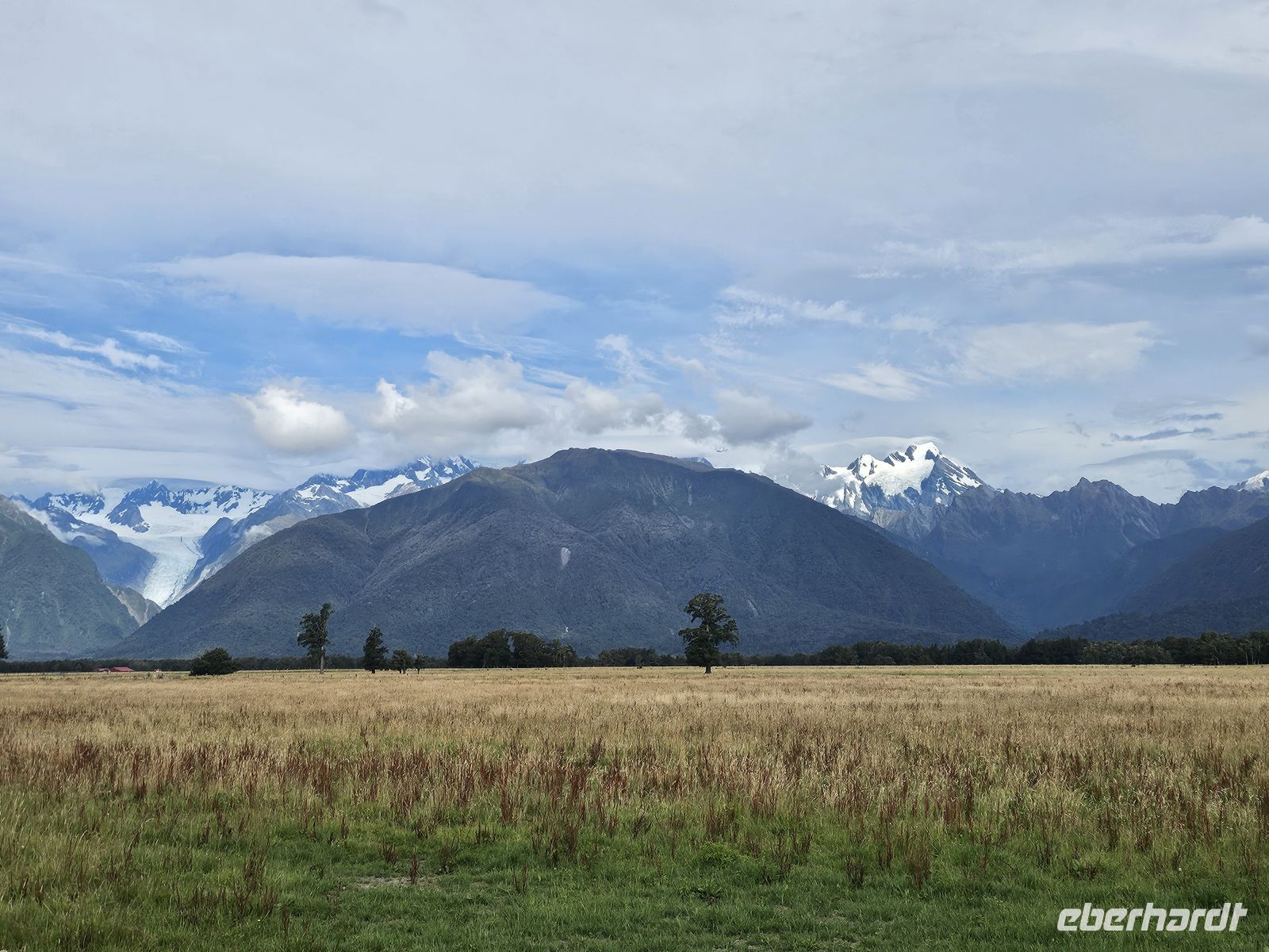 Am Nachmittag erreichen wir die Region des Fox Glacier. Das wechselhafte Wetter bietet eine seltene Chance: Ein Teil unserer Gruppe nutzt spontan die Möglichkeit zu einem Helikopter-Rundflug über Gletscher und Hochgebirge. Aus der Luft zeigen sich die Eisströme, Spalten und Schneefelder in beeindruckender Dimension – für viele ein unvergessliches Erlebnis. Währenddessen genießen die übrigen Gäste vom Aussichtspunkt den Blick auf Gletscherlandschaft und, bei guter Sicht, sogar auf den höchsten Berg Neuseelands, den Aoraki/Mount Cook.