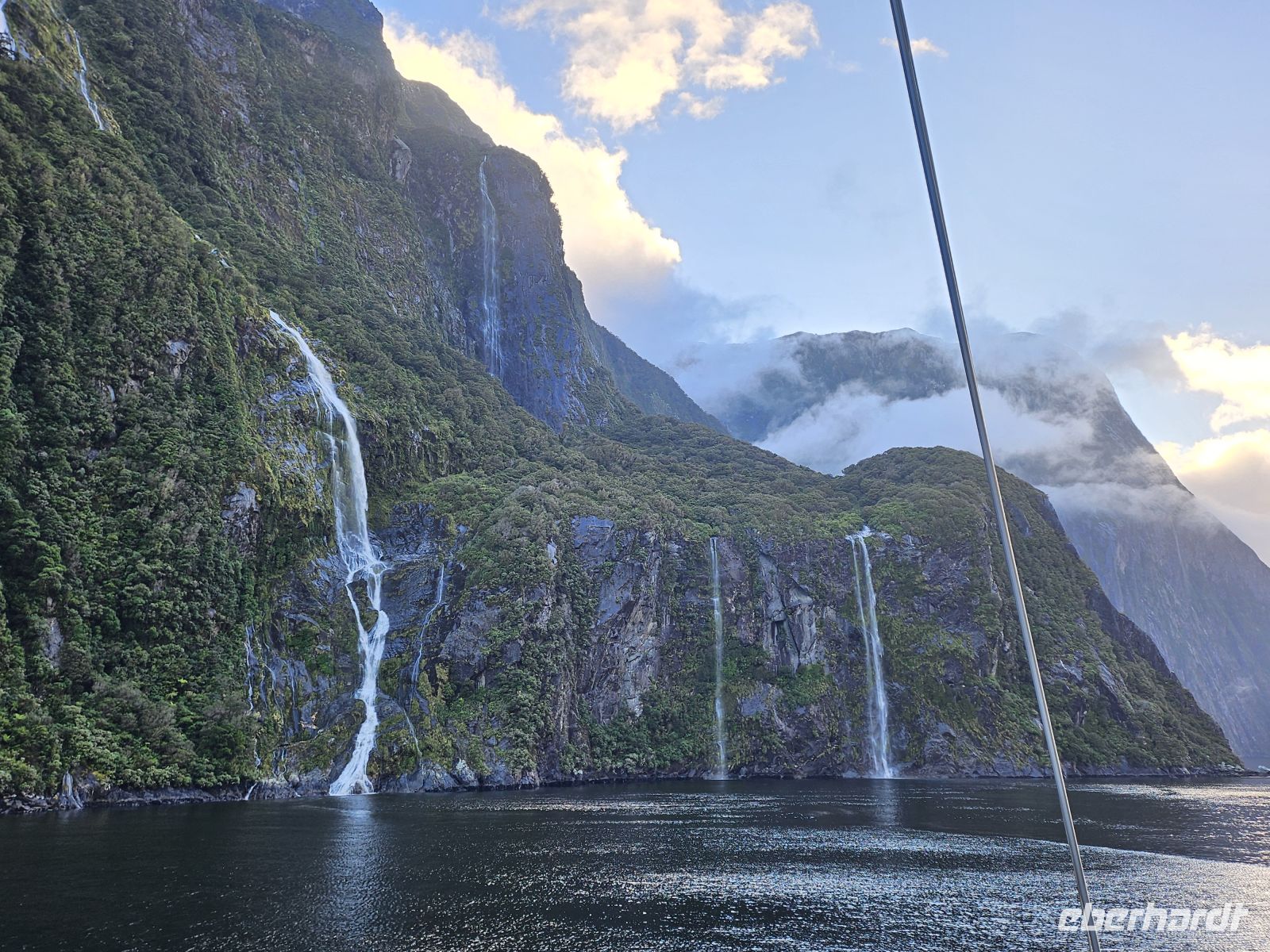 Am Nachmittag erreichen wir den Milford Sound, einen der berühmtesten Fjorde der Welt, geformt von Gletschern während der letzten Eiszeit. Nach dem Boarding beziehen wir unsere Kabinen, bevor das Schiff gegen 16 Uhr langsam in den Fjord hineingleitet. Steile, fast senkrechte Felswände ragen aus dem Wasser, Wolken hängen tief zwischen den Bergen, und Wasserfälle stürzen aus großer Höhe ins Meer – eine Landschaft von beeindruckender Wildheit.