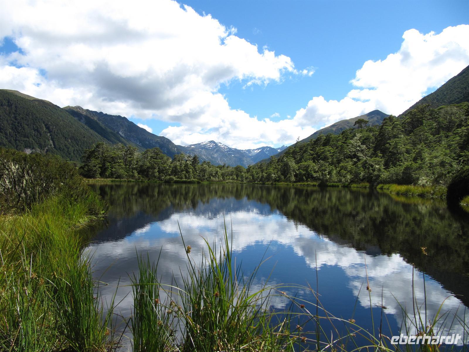 Wie es so schön heißt: „Abendrot schlecht Wetter droht!“ Und so beginnt unser Ausflug in den Milford Sound leicht verregnet. Unser Chauffeur und Reiseleiter Justin hält einen genauen Zeitplan ein - das Schiff legt ab, mit oder ohne uns! Die Anreise zu dem weltberühmten Fjord ist spektakulär. Die einzigen Möglichkeiten dort hin zu gelangen, ist zu Fuß über den Milford Track, per Flug oder über die Milford Road - eine der schönsten, teuersten und zugleicht gefährlichsten (zumindest im Winter) Straßen der Welt. Schön ist die Strecke zweifellos und auf diversen Stopps können wir unsere Eindrücke auf Film und Foto bannen. Hinter Te Anau erreichen wir den größten Nationalpark Neuseelands, den Fjordland Nationalpark.