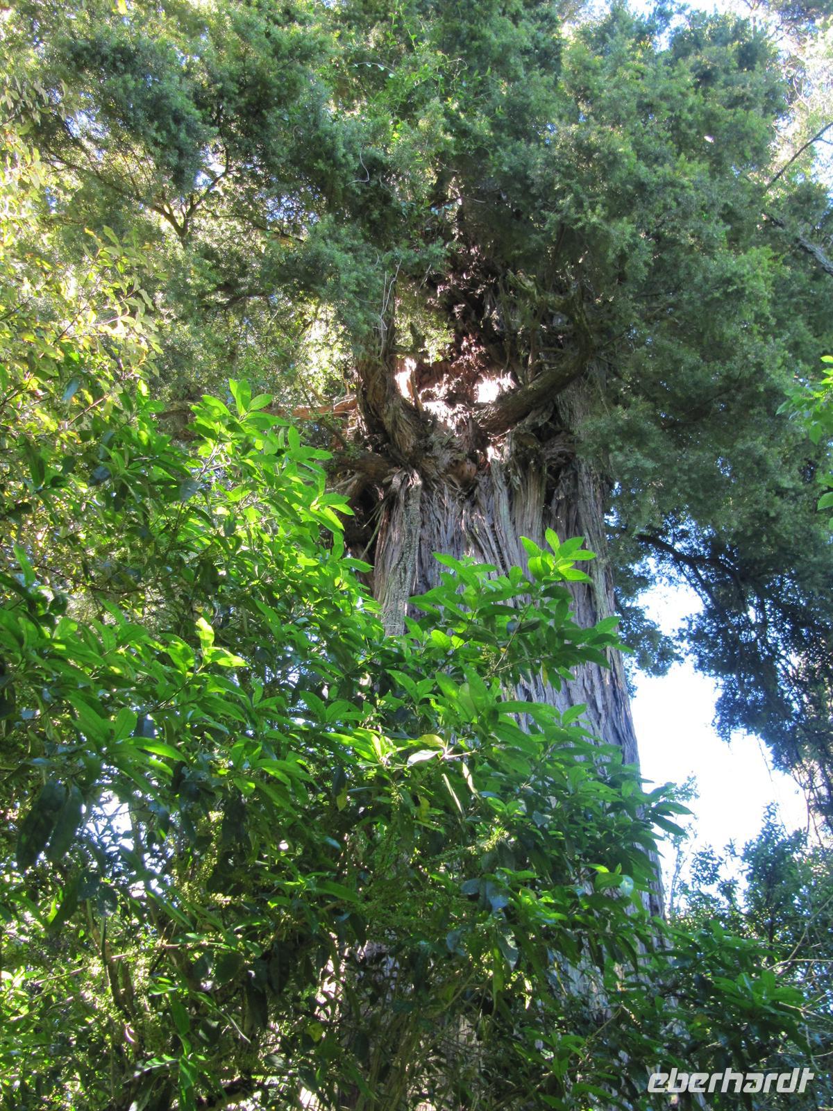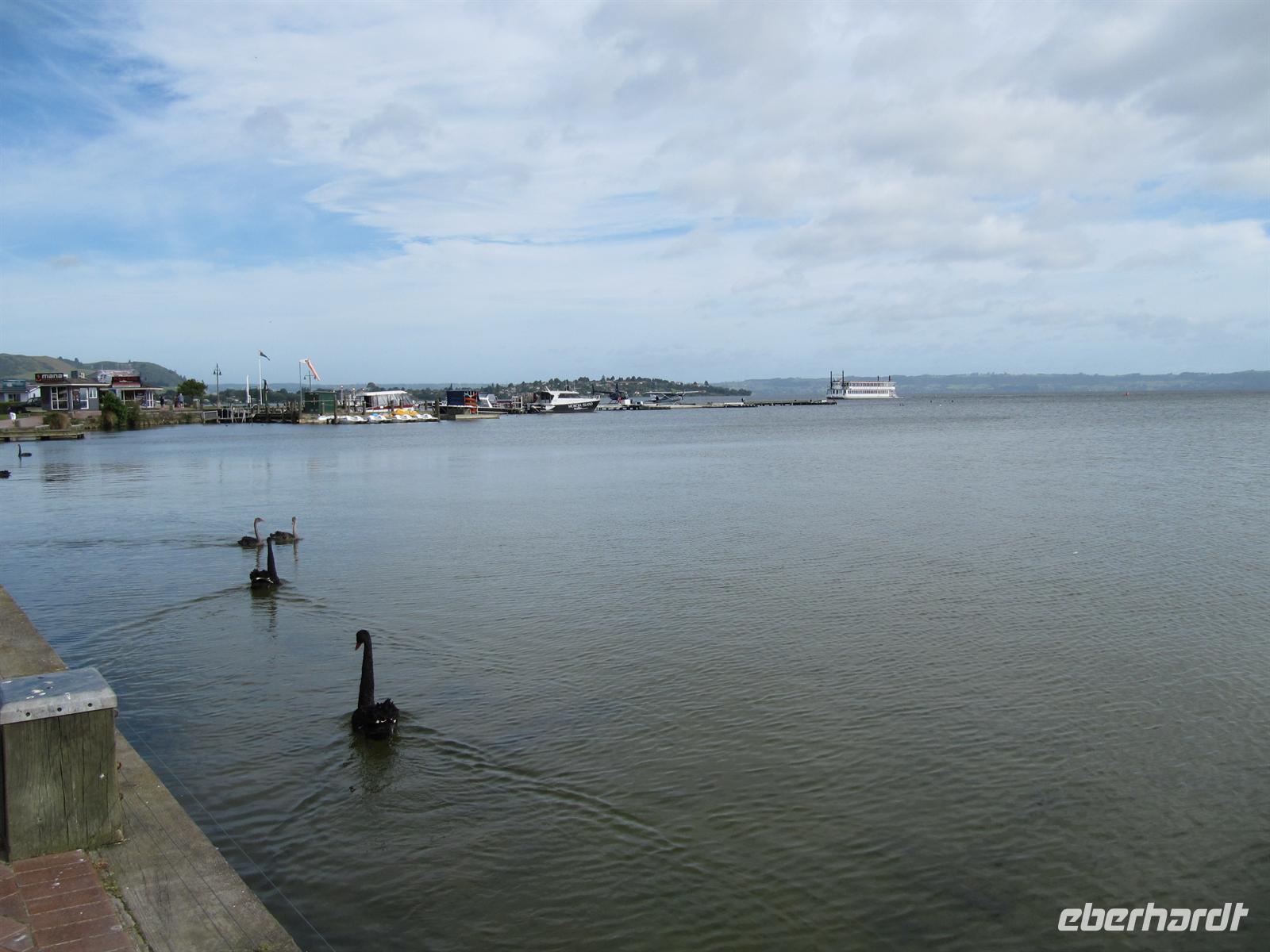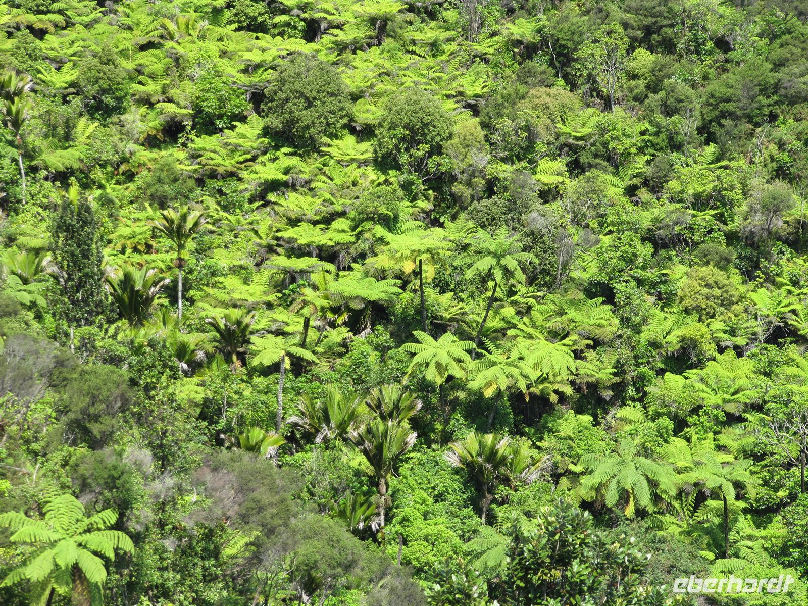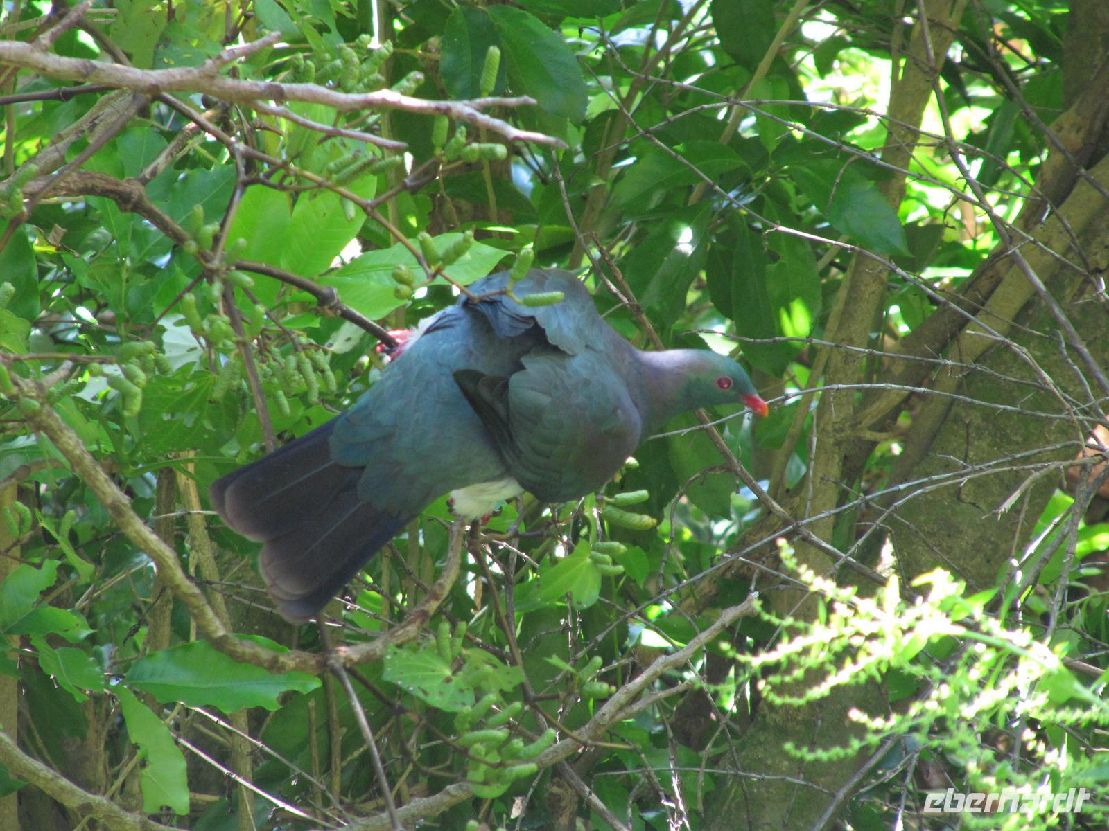 Es ist Heilig Abend, aber bei 30 Grad und Sonnenschein kommt irgendwie kein richtiges Weihnachtsgefühl auf. Nach dem Frühstück machen wir uns auf den Weg, um die riesigen Kauri-Bäume zu entdecken. Eine leichte Wanderung durch den Wald führt uns zu den siamesischen Kauri-Bäumen und schließlich zu einer Gruppe von acht gigantischen Kauris. Die Bäume sollen um die 600 Jahre alt sein und einen Durchmesser von 2,20 Meter haben. Neben diesen Riesen kommt man sich einfach nur klein vor. Unser Reiseleiter Bernd zeigt uns weiterhin Rimu, Silberfarne, Baumfarne, Kahikatea und zarte Orchideen. Wir lauschen einem Tui, dem Pastorenvogel, und freuen uns über die niedlichen Fantails (Fächerschwänze). Wir verlassen die zauberhafte Halbinsel Coromandel und durchqueren Betlehem (es ist schließlich Heilig Abend!) und das Kiwi-Land mit unzähligen Kiwi-Plantagen bis wir Rotorua erreichen. Ja, man riecht es lange bevor man es erreicht. Im Te Puia bestaunen wir farbige Sinterterrassen, brodelnde Schlammtöpfe, dampfende Fumarolen und den drolligen Kiwi. Den Heiligen Abend verbringen wir bei den Maori und erleben Tanz- und Gesangsvorführungen und genießen das leckere Hangi, ein Essen aus dem Erdofen. Frohe Weihnachten!