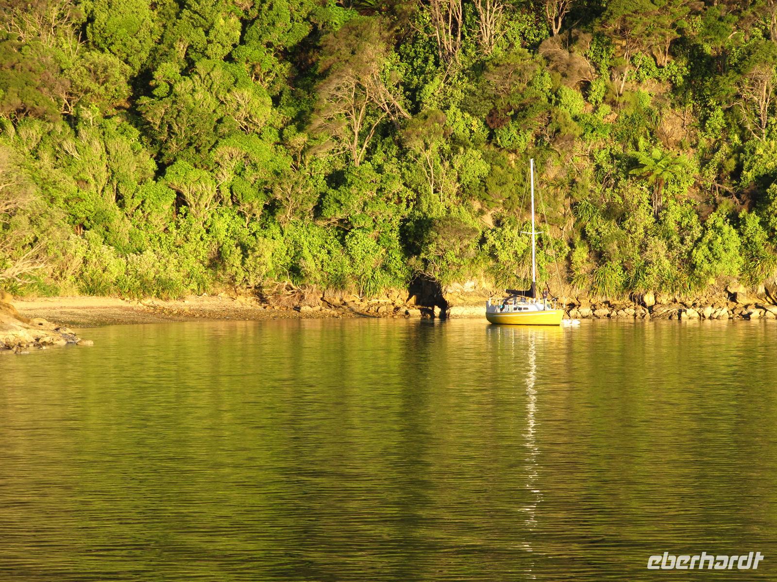 Mit der Interislander Fähre setzen wir von Wellington nach Picton über. Bei ruhiger See genießen wir den weiten Blick auf’s Meer und die fantastische Einfahrt in die Marlborough Sounds. In Picton erwartet uns bereits die Crew der „Affinity“. Mit Kurs auf Motuara Island schippern wir durch die „versunkenen Flusstäler“. Während unserer Wanderung zum Gipfel der Vogelinsel lauschen wir dem Konzert der Vogelstimmen und entdecken auch einige der seltenen Vögel: Pinguin, Sattelstar, New Zealand Pigeon und der neugierige Robin. Zurück an Bord steuern wir zur Resolution Bay, unserem Ankerplatz für die heutige Nacht. Ein Bad im kühlen Wasser erfrischt! Eine besondere Delikatesse wird zum Abendessen gereicht - es gibt frisch gefangene Scallops (Jakobsmuscheln) und zum Dessert die klassische Pavlova.