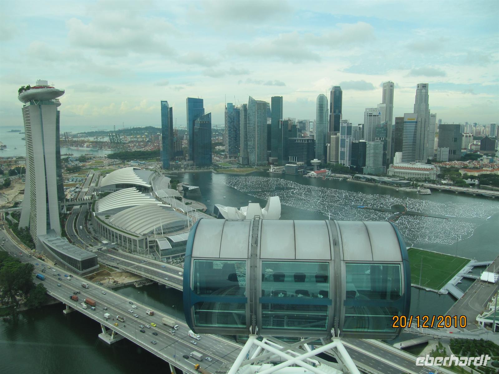 Auch wenn die Nacht kurz war, wir wollen Singapur erleben! Nach dem reichhaltigen Frühstück im Hotel spazieren wir zum Singapur Flyer - dem größten Riesenrad der Welt!