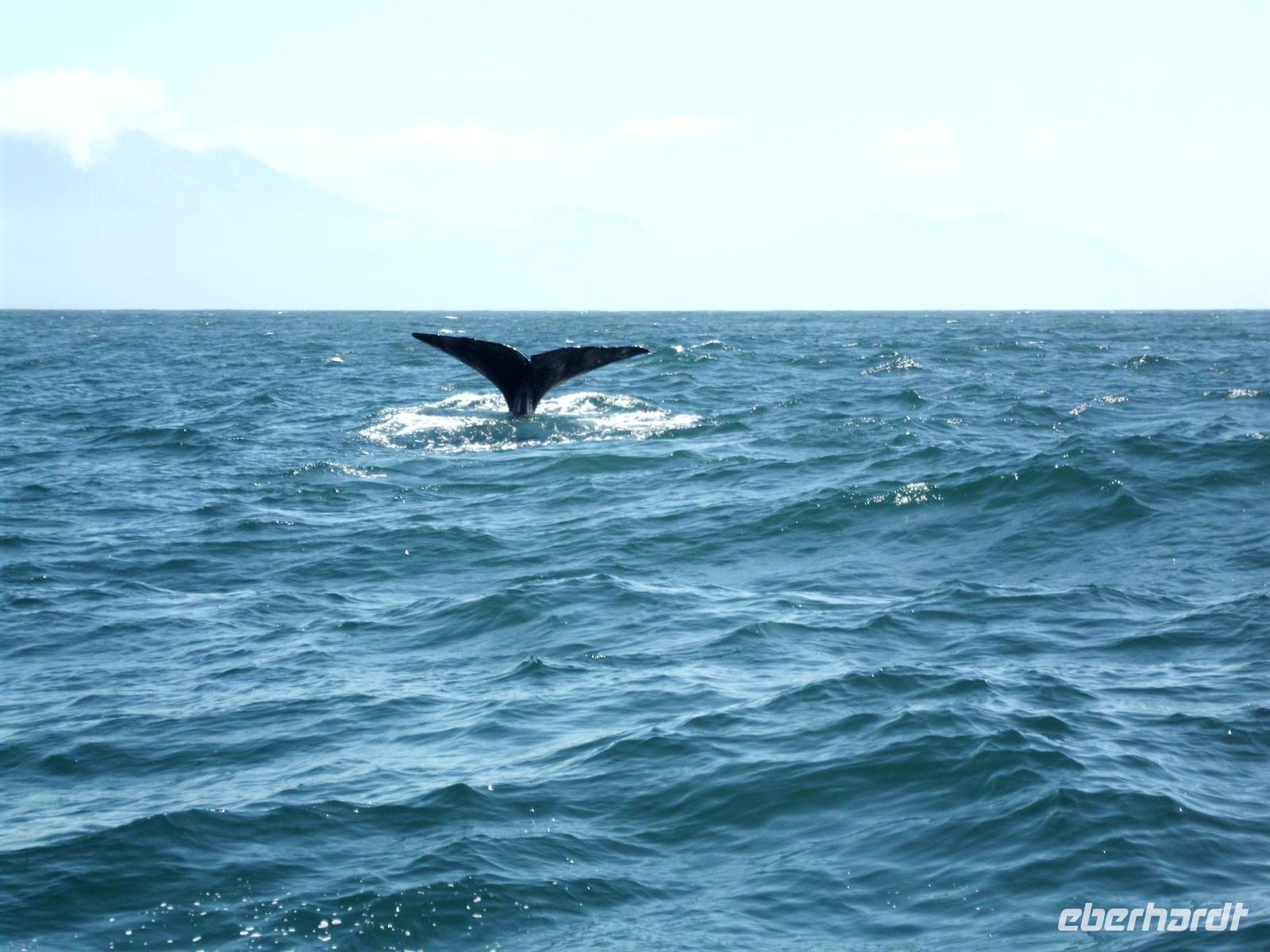 Der Tag beginnt früh, denn wir haben viel vor. Rund um Blenheim sind die Berge wie mit einem goldenem Samtteppich überzogen. Die Region gehört zu den besten Weinanbaugebieten Neuseelands. Besonders Sauvingon Blanc und Chardonnay gelingen hier, denn warme Tage und kühle Nächte begünstigen den Anbau. Die Panoramastraße verläuft später entlang der traumhaften Küste, das Blau des Meeres wirkt fast karibisch und unweit der Küste steigen die schneebedeckten Gipfel bis auf fast 2.600 Meter an! Ein großartiges Bild! Es sind die faszinierenden Kontraste, die eine Reise durch Neuseeland so besonders macht. Ein Teil der Gruppe begibt sich auf Walsafari. Kaikoura ist weltweit der einzige Ort, an dem man so nahe der Küste Pottwale beobachten kann. Die bis zu 18 Meter langen Wale tauchen bis auf 3.000 Meter - der tiefe Meeresgraben vor Kaikoura bietet beste Bedingungen für die Tiere. Der Katamaran kämpft sich durch die Wellen bis wir endlich einen Pottwal entdecken. Einige Zeit verweilt er an der Oberfläche bis er abtaucht und die Fluke majestätisch im Meer verschwindet. Wow!