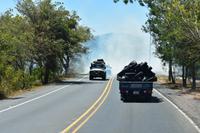 Hernan fuhr uns mit dem Bus aus dem kleinen Örtchen Monteverde die staubige Schotterstraße in unzähligen Kurven hinab. Es war ziemlich holprig und der Wind wirbelte den Staub der Straße auf und formte sogar auch eine Windhose - „remolino", wie man im Spanischen sagt. Wir hatten eine grandiose Aussicht auf die umliegenden Berge und konnten sogar bis zum Pazifik sehen. Der Golf von Nicoya war nun nicht mehr weit entfernt. Als wir weiter unten ankamen, schon beinahe in der Ebene, überquerten wir in Guacimal den gleichnamigen Fluss. Kurz dahinter legte Hernan nahezu eine Vollbremsung hin, denn wir drohten uns in einem tiefhängenden Stromkabel zu verfangen. Gerade so rutschte es über das Dach von unserem Kleinbus und verfing sich glücklicherweise nicht. So konnten wir die Reise unbeschadet fortsetzten. Freundlicherweise warnte Hernan auch entgegenkommende Transporter und Busse, die mit Sicherheit nicht passieren konnten, da sie noch ein Stück höher gebaut waren.