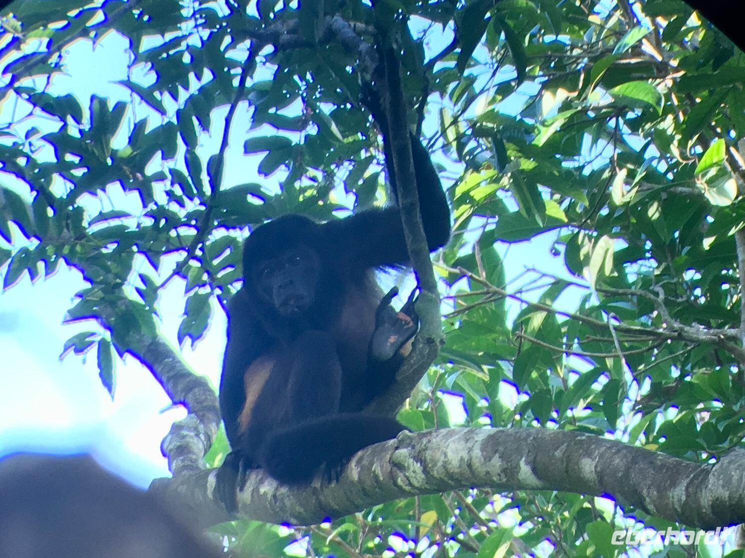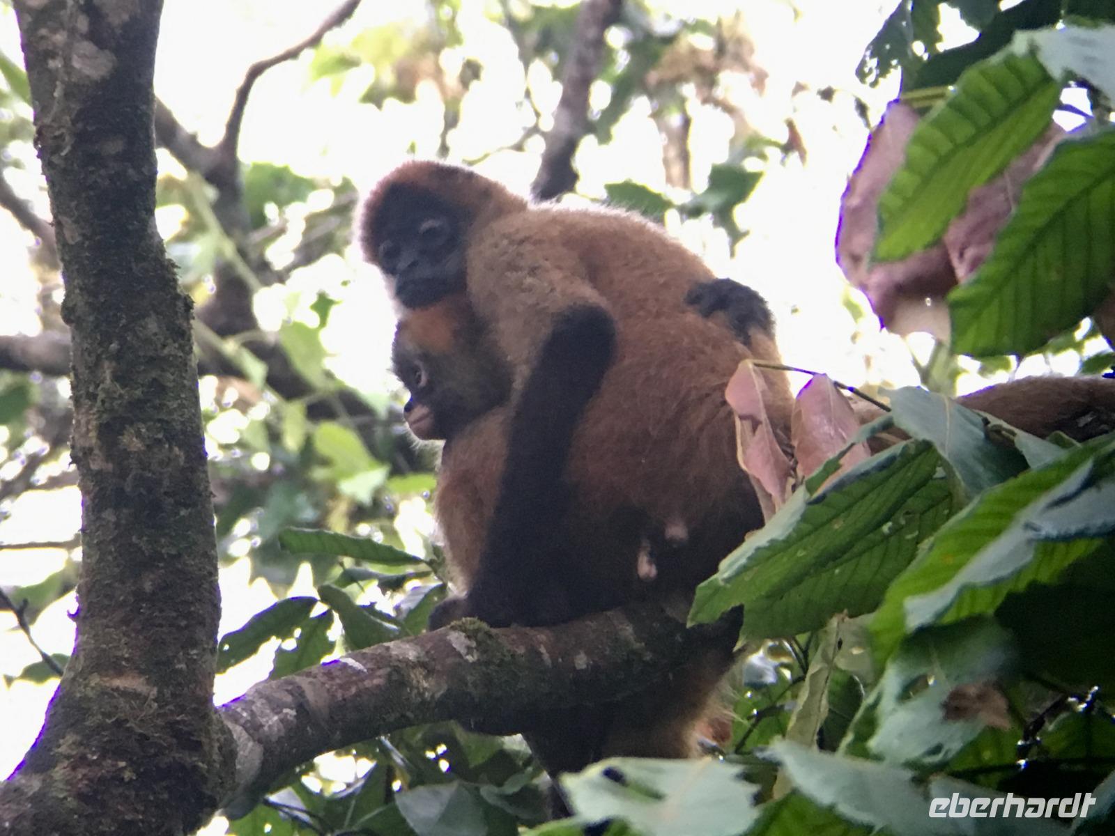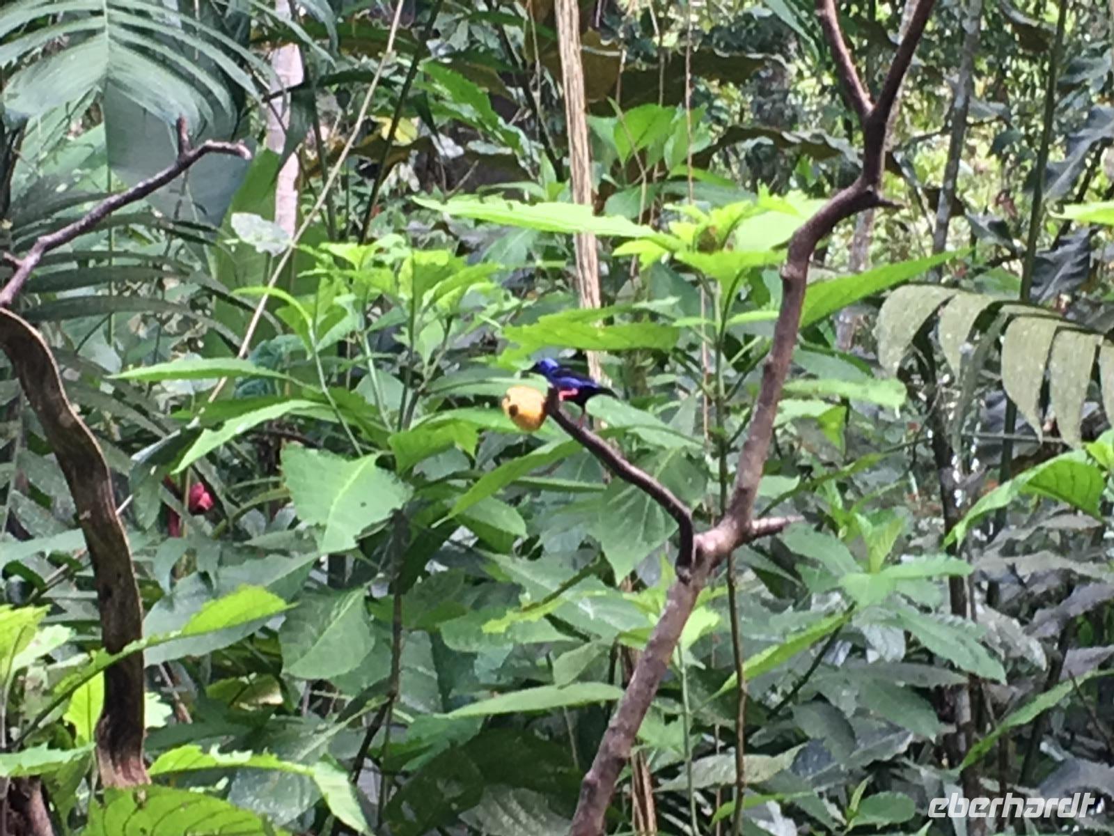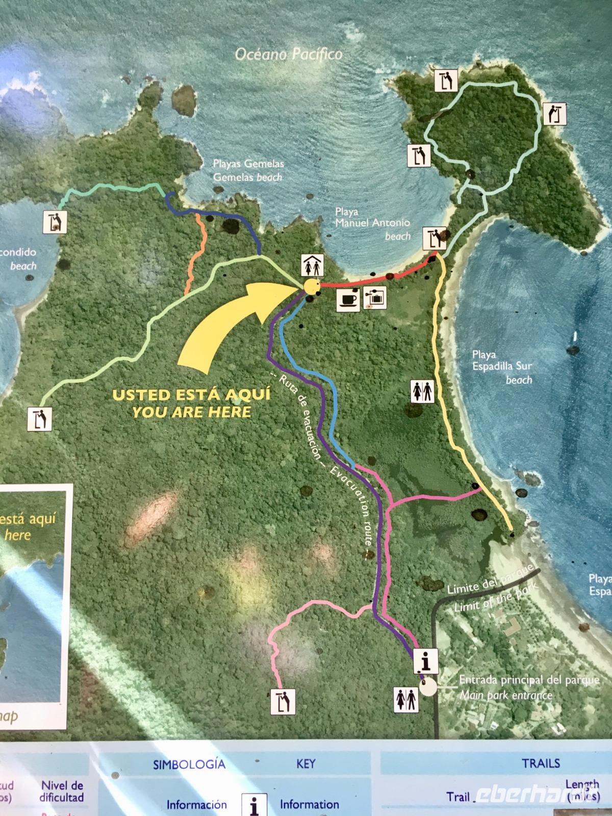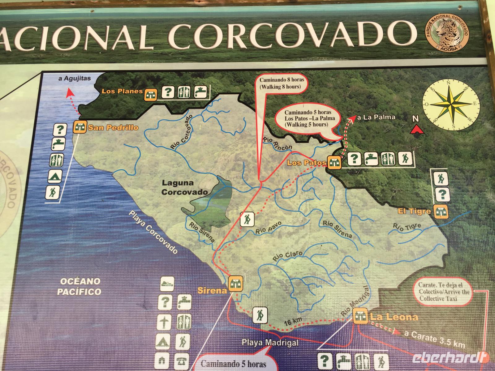Nun gehen wir auf dem Sandweg und sehen allerhand innert kuerzester Zeit. Eigentlich waeren die Toiletten bloss 20 Minuten entfernt aber wir sehen sie erst nach 1 Stunde, denn die Waldbewohner meinen es sehr gut mit uns. Aeffchen schwingen von Baum zu Baum. Einige Klammeraffen zuechtigen gerade die Jungmanschaft, andere saeugen und wieder andere liegen auf den Aesten mit allen vieren von sich gestreckt. Auch die Vogelliebhaber kommen wieder auf ihre Rechnung. Bobbies und Kormorane sitzen auf den Felsen waehrend der Hinreise und danach zeigen sich verschiedene Mot-mot, Papagaien, Guane, Reiher usw von der besten Seite. Ameisen aller Arten tragen fleissig Blaetter oder Waldabfall zu ihren Haufen, Echsen tarnen sich und Wildschweine rennen gerade ueber „ unseren" Weg. Oder gehen wir eher auf ihrem Weg ? Wir sehen auch ein Nasenbaer ganz hautnah und dann noch einen hungrigen und einen schlafenden Tapir. Der hungrige wollte genau wie wir, in der Lodge inmitten des Parks mal kurz Mittagessen. Aber es waren schon zu viele Eberhardt Gaeste dort es gab nichts mehr fuer ihn....Wir machen auch mal eine kurze Rast bei einem kleinen Strand. Wir muessen wieder neue Energie tanken fuer den Weg zurueck zum grossen Strand und unserem Boot. Das war ein aufregender und wunderbarer Ausflug. Steven und Manuel, unsere Guides werden auch reichlich belohnt denn mit ihren professionellen Spectoscope haben sie uns allen auch die besten Photos durch die Linse ermoeglicht und durch ihre Leidenschaft fuer diese Gegend haben wir ins Waldleben des Corcovado Parks einsicht erhalten. Mit vielen Eindruecken sitzen wir am Nachmittag gemuetlich am Meer beim Pool mit einer Cerveza in der Hand und reden noch lange von diesem herrlichen Ausflug. Keiner will Kayak fahren gehen also ist der Nachmittag frei. Das Abendessen um 18:30 ist wieder hervorragend. Pura Vida, meine Freunde, morgen gehts weiter mit einem Schnorchel-Ausflug.