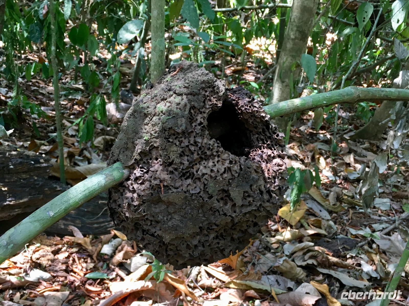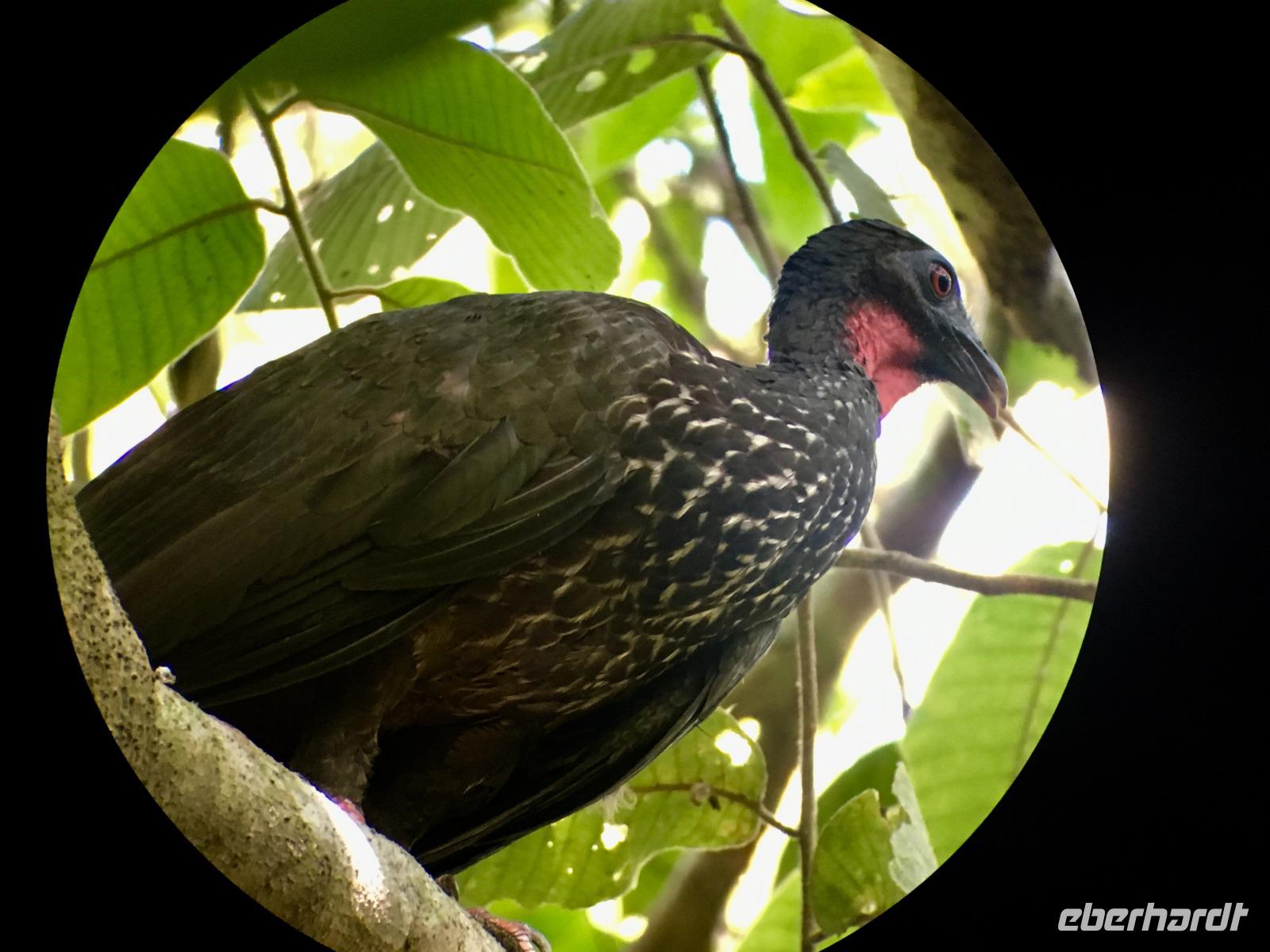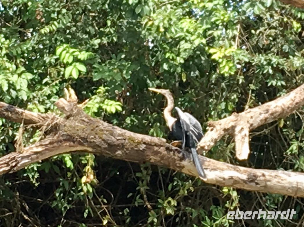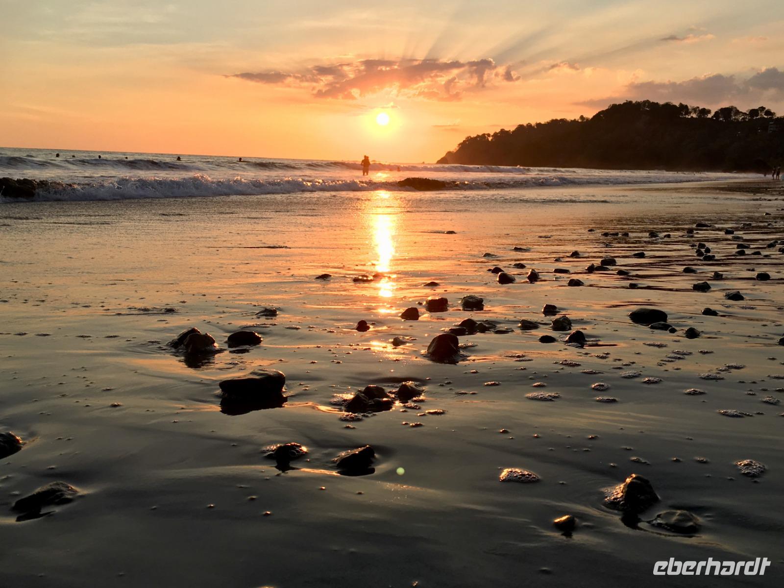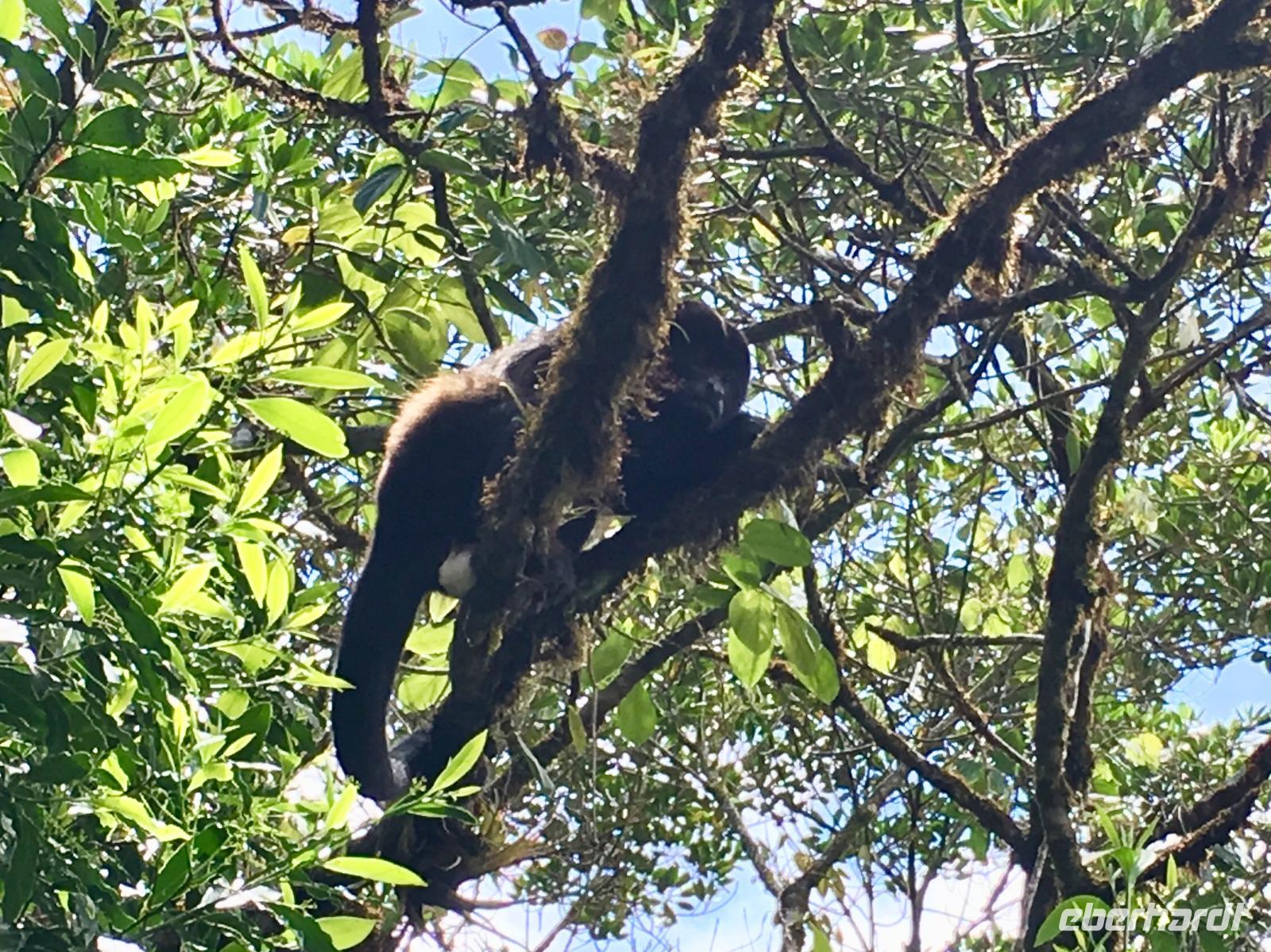 Nun gehen wir auf dem Sandweg und sehen allerhand innert kuerzester Zeit. Eigentlich waeren die Toiletten bloss 20 Minuten entfernt aber wir sehen sie erst nach 1 Stunde, denn die Waldbewohner meinen es sehr gut mit uns. Aeffchen schwingen von Baum zu Baum. Einige Klammeraffen zuechtigen gerade die Jungmanschaft, andere saeugen und wieder andere liegen auf den Aesten mit allen vieren von sich gestreckt. Auch die Vogelliebhaber kommen wieder auf ihre Rechnung. Bobbies und Kormorane sitzen auf den Felsen waehrend der Hinreise und danach zeigen sich verschiedene Mot-mot, Papagaien, Guane, Reiher usw von der besten Seite. Ameisen aller Arten tragen fleissig Blaetter oder Waldabfall zu ihren Haufen, Echsen tarnen sich und Wildschweine rennen gerade ueber „ unseren" Weg. Oder gehen wir eher auf ihrem Weg ? Wir sehen auch ein Nasenbaer ganz hautnah und dann noch einen hungrigen und einen schlafenden Tapir. Der hungrige wollte genau wie wir, in der Lodge inmitten des Parks mal kurz Mittagessen. Aber es waren schon zu viele Eberhardt Gaeste dort es gab nichts mehr fuer ihn....Wir machen auch mal eine kurze Rast bei einem kleinen Strand. Wir muessen wieder neue Energie tanken fuer den Weg zurueck zum grossen Strand und unserem Boot. Das war ein aufregender und wunderbarer Ausflug. Steven und Manuel, unsere Guides werden auch reichlich belohnt denn mit ihren professionellen Spectoscope haben sie uns allen auch die besten Photos durch die Linse ermoeglicht und durch ihre Leidenschaft fuer diese Gegend haben wir ins Waldleben des Corcovado Parks einsicht erhalten. Mit vielen Eindruecken sitzen wir am Nachmittag gemuetlich am Meer beim Pool mit einer Cerveza in der Hand und reden noch lange von diesem herrlichen Ausflug. Keiner will Kayak fahren gehen also ist der Nachmittag frei. Das Abendessen um 18:30 ist wieder hervorragend. Pura Vida, meine Freunde, morgen gehts weiter mit einem Schnorchel-Ausflug.
