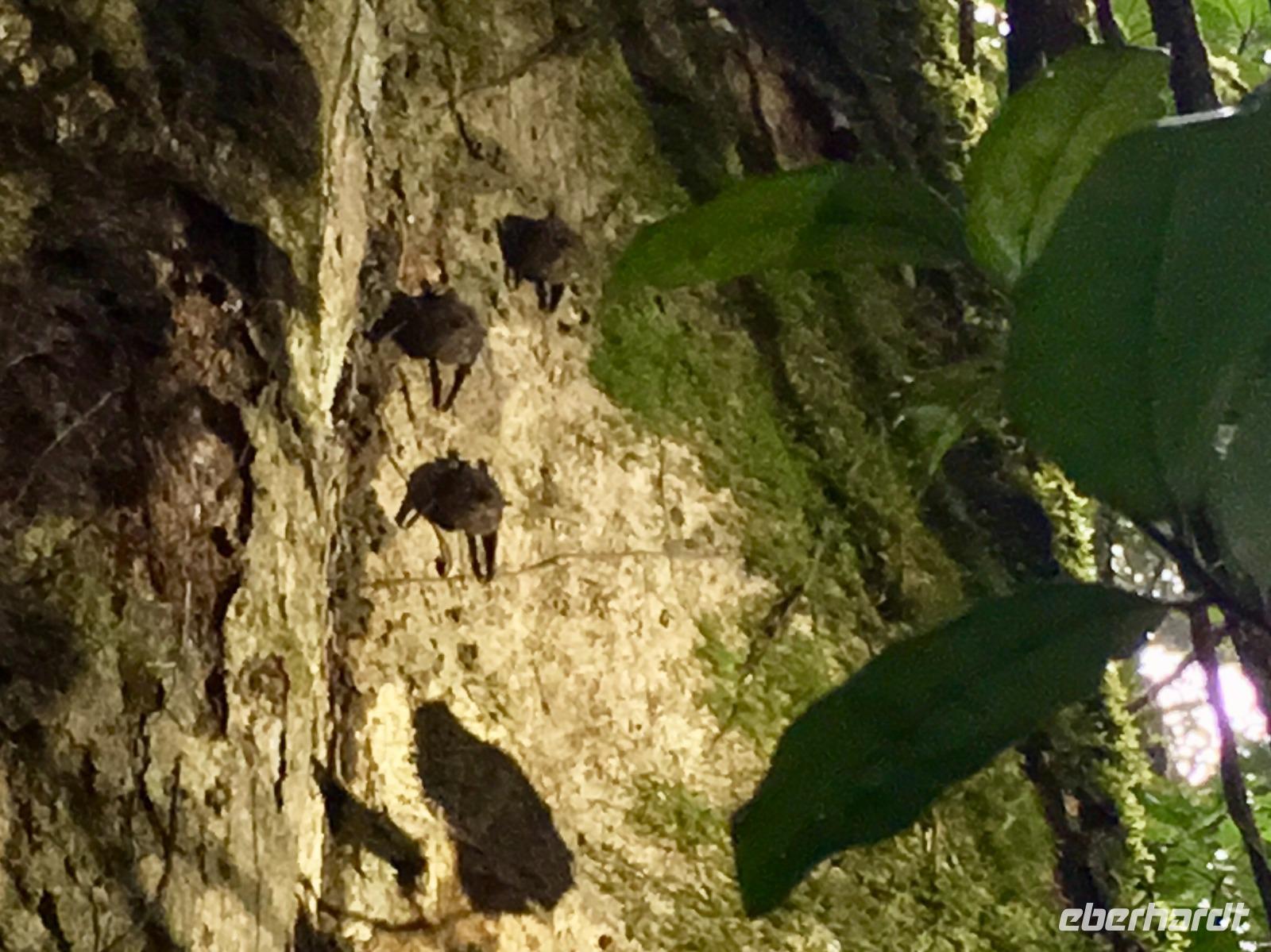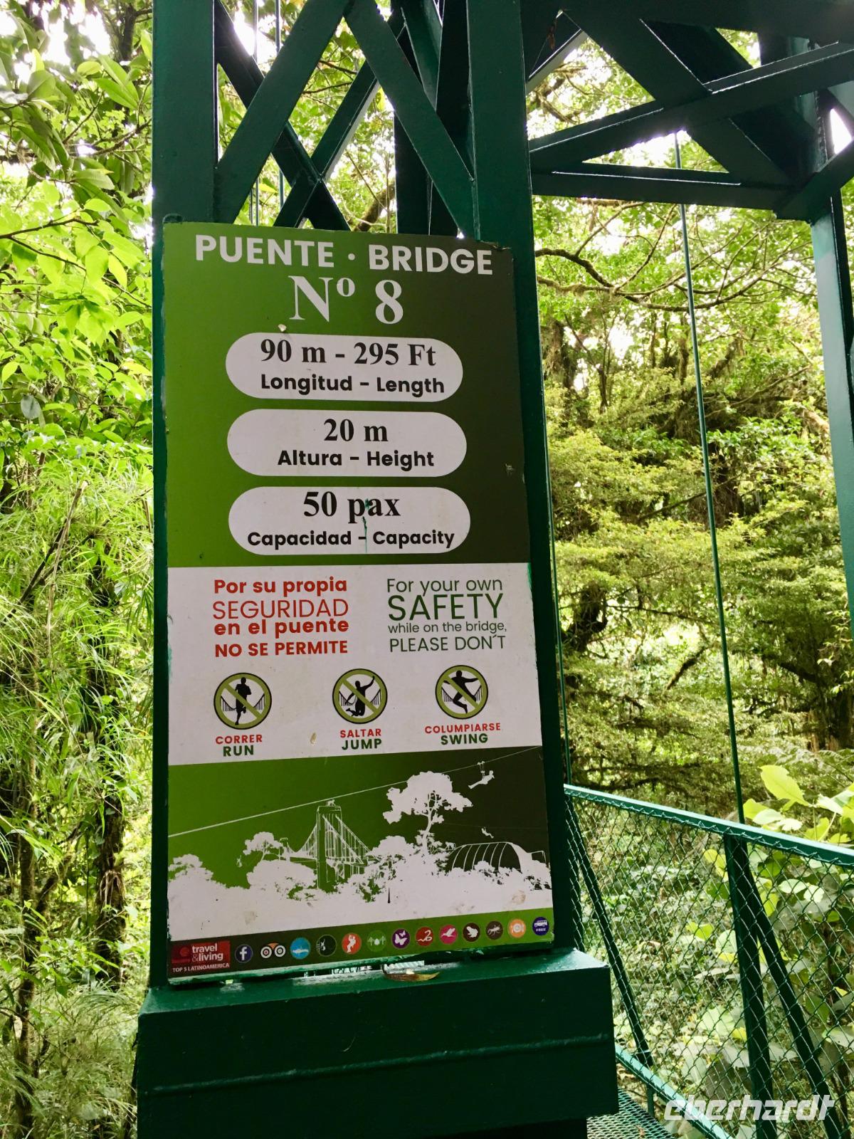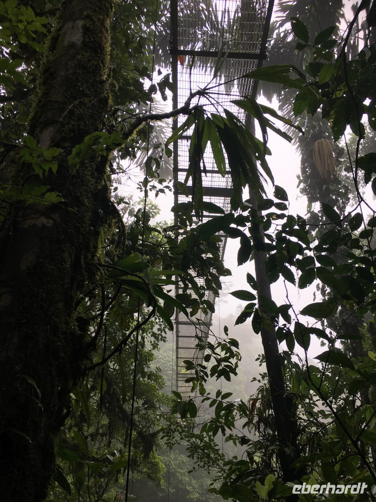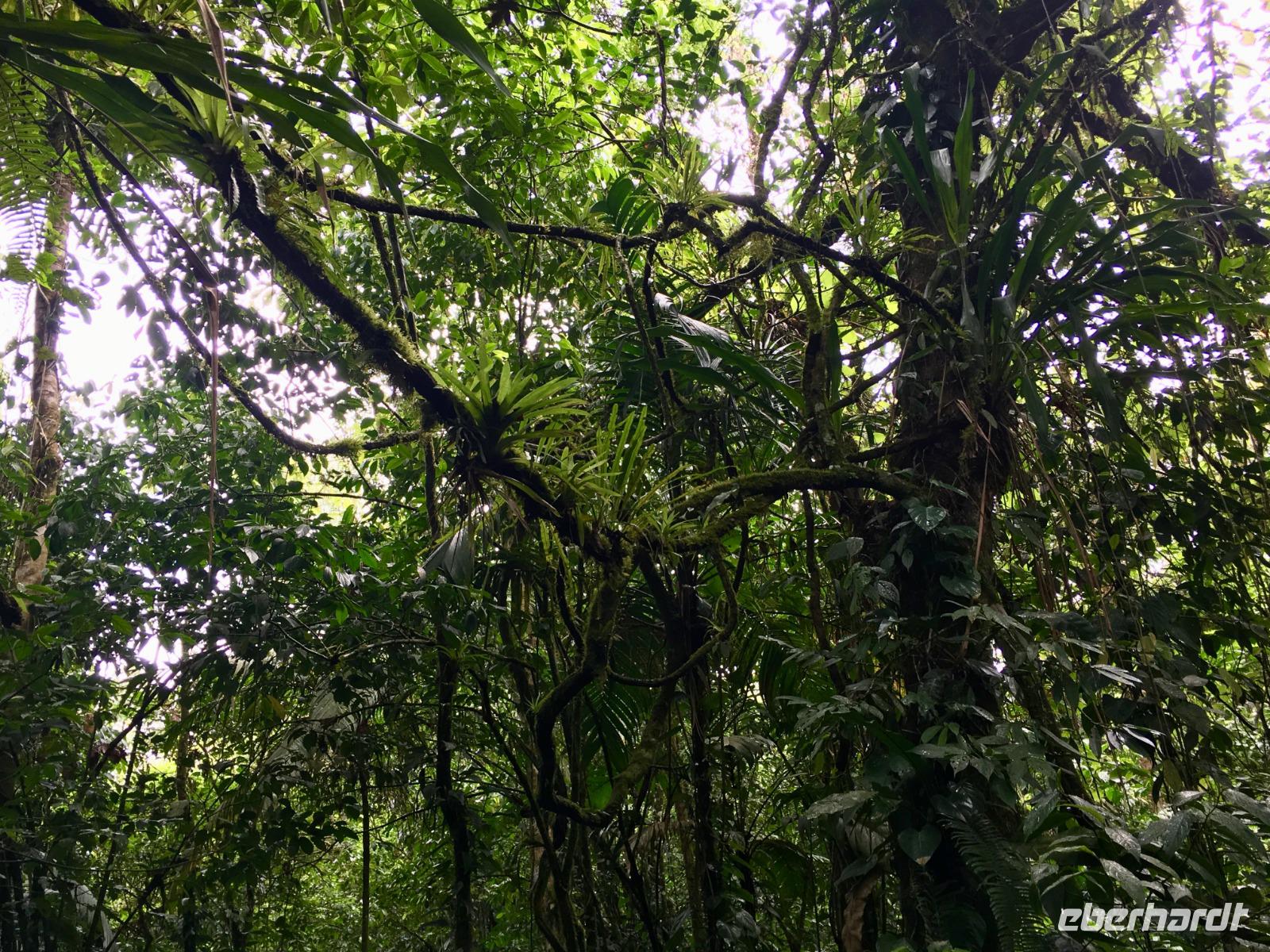 Heute wollen wir wieder frueh unterwegs sein, denn es erwartet uns ein besonders schoener, erlebnisreicher Tag. Vorerst fahren wir in ein Biologisches Reservat in Monteverde. Schoen angelegte Pfade, fuehren einem durch den Nebelwald. Er ist ganz anders als der Regenwald von gestern am Arenal. Dort gab es so viele verschiedene Palmen und er war sehr dicht, wobei hier mehr Baum-Vielfalt besteht was natuerlich wieder verschiedene Voegel und Tiere anzieht.