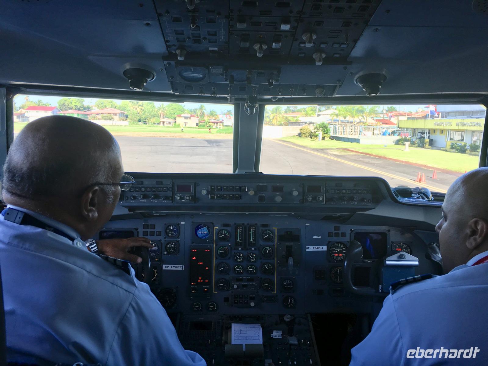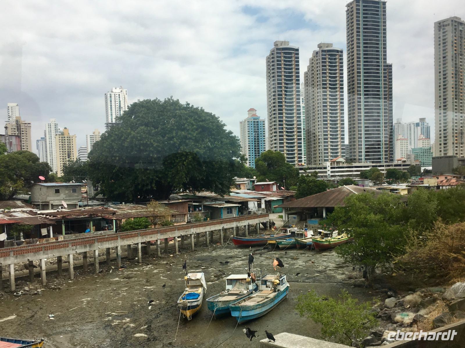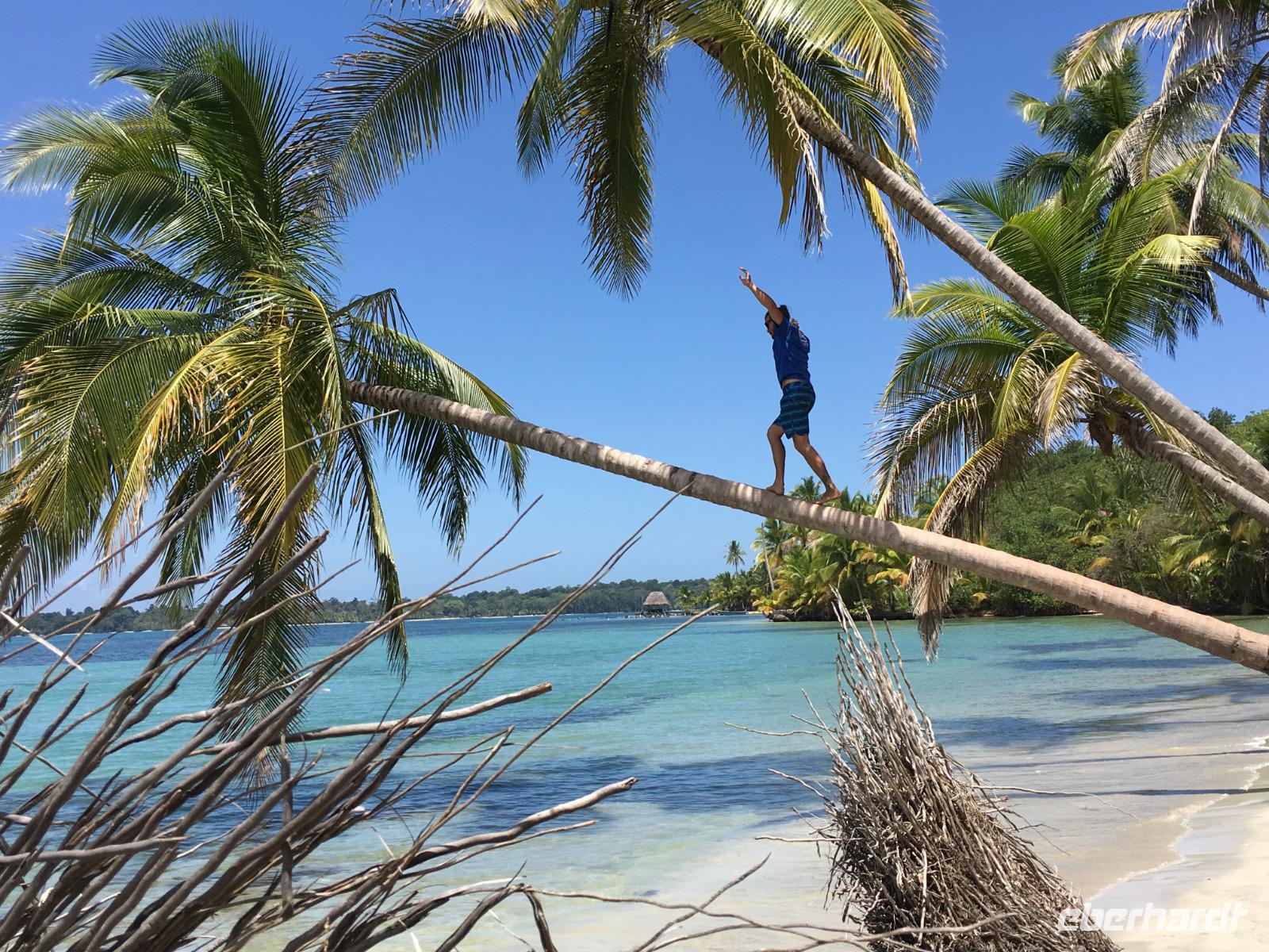 Was kann einem besseres passieren, als in der Karibik in einem tollen Hotel aufzuwachen bei Sonnenschein. Wir packen unsere sieben Sachen, geben alles in ein Zimmer und wandern zu unserem naechsten Abenteuer mit der Bade- und Schnorchelausruestung. Der Kapitaen unseres Bootes wartet bereits auf uns und schwups sitzen wir schon, mit den orangenen Schwimmwesten umgebunden, im Boot. Aha, die Kuestenwache will uns kontrollieren, also nichts wie hin. Die Papiere werden alle studiert und wir werden gemustert....wohl ob wir gut genug gelaunt sind fuer so einen herrlichen Tag ? Alles perfekt, wir koennen davonduesen. Ueber die kleinen Wellen huepfend segeln wir aus Boccas del Toro hinaus, an Saigon vorbei, direkt nach Boccas del Drago. Ja-Nein, es ist nicht jenes Saigon in Vietnam, sondern ein Fischerdorf auf der Insel Colon wo bloss Einheimische wohnen ! In Boccas del Drago steigen einige aus und gehen auf einen Spaziergang und andere moechten doch gerne ueber die hoeheren Wellen reiten um Bird-Island zu besuchen. Der Spaziergang war toll und Bird-Island war fuer unsere Vogelfreunde eine reine Freude. Sie haben sogar Paradiesvoegel und ein Albatross gesehen. Ach wie schoen. Alle sind gluecklich und so begeben wir uns auf die Strandwanderung bis zum Strand der Seesterne. Auf dem Weg bieten sich wieder etwa hundert Motive fuer das perfekte «Schatzilein und ich in der Karibik»-Bild. Mit / neben / auf / unter Palmen die sich ueber das kristallklare Wasser biegen, oder vor / neben den auf Stelzen stehenden Haeuser, oder einfach im Wasser stehend und aufs Meer blickend. Bei dem Postkartenwetter, ist die Wahl sehr schwer zu treffen, also wird wie wild geknipst und gelacht. Beim Seesternstrand angekommen trauen wir unseren Augen kaum. Es gibt hier tatsaechlich riesengrosse, dicke, gelbe und rote Seesterne. Man braucht gar nicht zu schnorcheln um sie zu sehen man muss bloss aufpassen dass man nicht auf sie draufsteigt. Wir nehmen Platz und gehen schwimmen, schnorcheln und erkunden. Besonders bei den Mangroven drueben, gibt es Millionen von kleinen Neonfischchen. Solch' dichte Schulen, dass sie um die Schnorchler herumziehen und man sich wie in einem National Geographic Film vorkommt. Ein BBQ wird zu Mittag hergerichtet und es schmeckt koestlich. Wir koennten hier noch lange bleiben, aber der Flieger nach Panama City ist schon in ein paar Stuendchen. Also wieder zurueck nach Boccas del Toro, Verabschiedung des Kapitaens, duschen, umziehen, einkaufen gehen und schon sind wir bereit fuer den Airport-Transfer ! Beim Flughafen, oder richtig Flughaefchen, sitzt auch ein Pilot und er ist ganz gluecklich, dass wir bereits eine Stunde vor Abflug bereit sind, also bittet er uns in den gecharterten Flieger einzusteigen.............ja, wir haben unser eigenes Eberhardt-Flugzeug, mit Pilot, Copilot und zwei charmanten Flugbegleiterinnen. Wir glauben es kaum, sowas, das Herz singt. Eine Stunde spaeter landen wir in Panama City und werden auch gleich von Archimedes, unserem ersten Fahrer, ins Hotel gebracht. Wir haben wieder unseren Super-Fahrer, es wird immer schoener. Was fuer ein erfolgreicher Tag, wir werden so schoen verwoehnt. In jedem Zimmer liegt auch ein Paeckchen Kaffee als Geschenk. Es ist eine Entschuldigung fuer den Linienbus von Boquete nach Boccas del Toro ! Das ist nun wirklich sehr nett.
