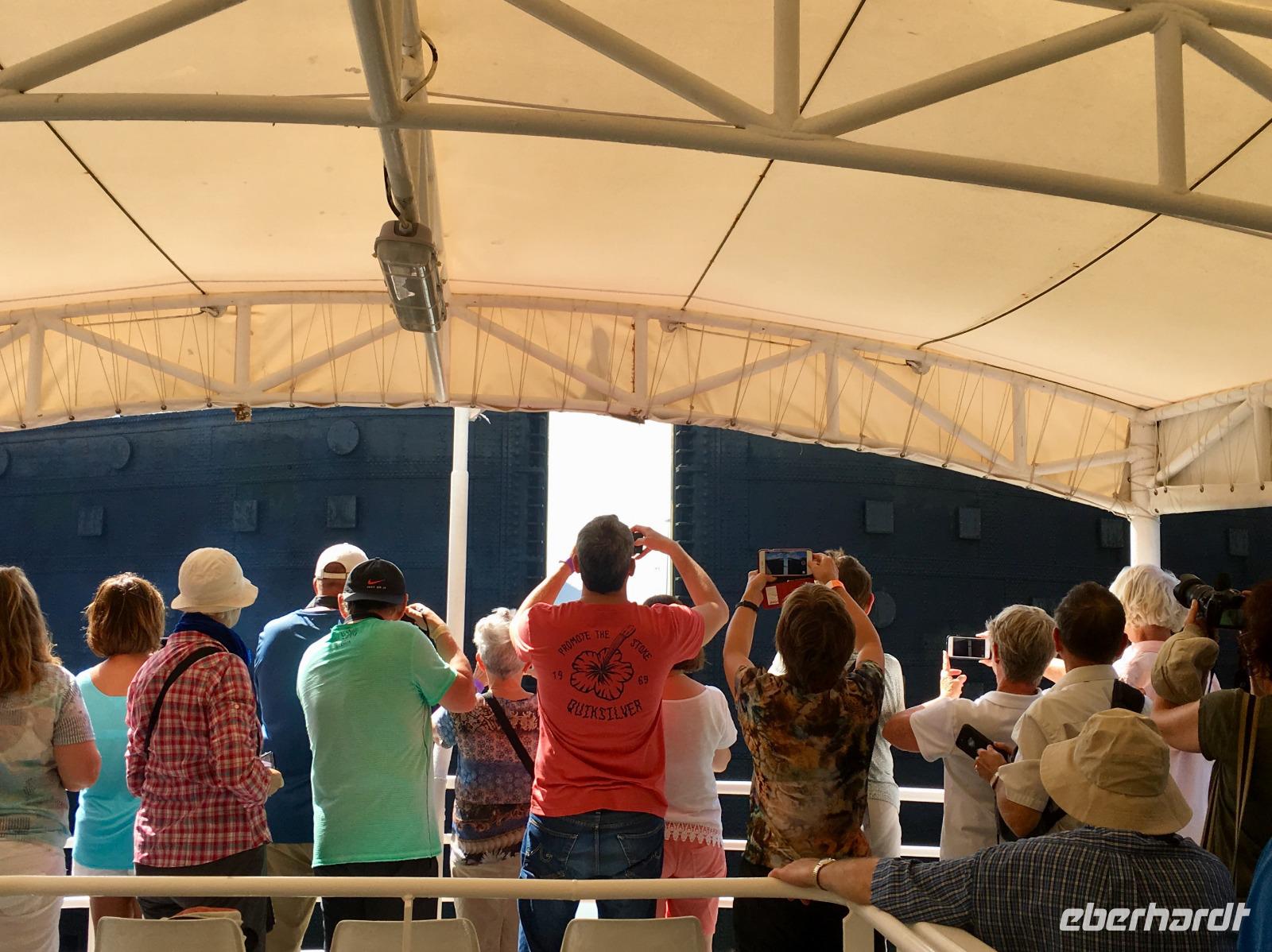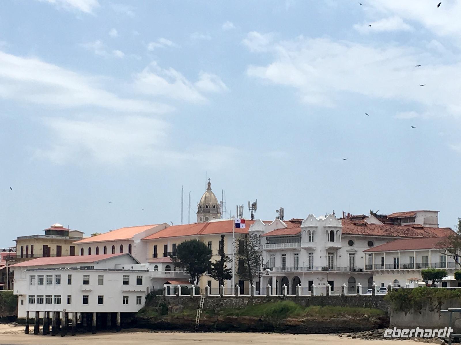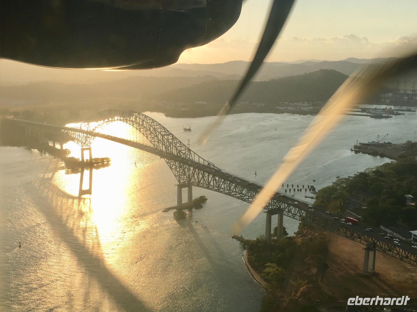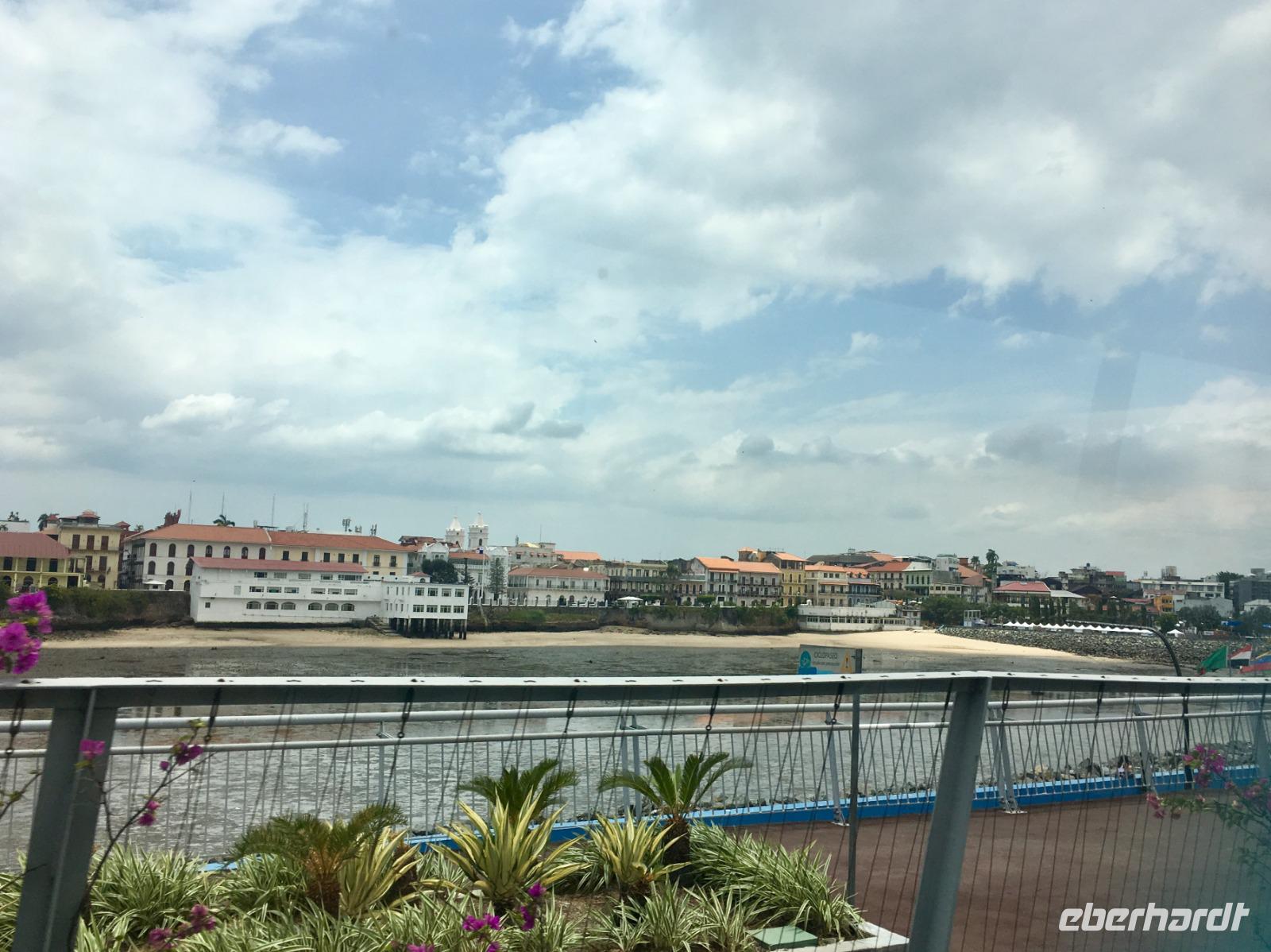 Letzter voller Tag hier in Zentral Amerika auf dieser Reise. Einige unter uns, werden sicher diese Laender nochmals bereisen, es ist zu schoen, zu vielfaeltig, zu ueberwaeltigend um es bloss einmal zu erleben. Heute geht es wieder zeitig los. 6:30 Uhr. Wir fahren naemlich zum Panama Kanal. Durch die Stadt faehrt uns Nino bis zum Flamenco Hafen. Dort wird jedem ein Baendchen um das Handgelenk gebunden und presto sind wir schon in dem 2-stoeckigen Schiff welches uns durch die Kanal Locks fahren wird. Wir sehen noch die schoene Skyline von Panama City mit dem ehemaligen Trump Tower welches nun ein Mariott Hotel ist und dem gruenen hohen spiralfoermigen Glassturm welcher weit hinauf in den tropischen Himmer ragt. Nun kommt auch schon der Lotse an Bord und es kann losgehen mit der Kanal Teil-Durchquerung. Bald kommen wir schon zu den Miraflores Locks. Es sind gleich 3 Locks mit je 8 Meter Hoehenunterschied. Wir fahren rein, das grosse schwarze Tor schliesst hinter uns, vor uns geht langsam das Tor auf, so viel Wasser um 50 olympische Schwimmbaeder fuellen zu koennen, das sind 14 Tonnen Wasser, fliessen hinein, blub-blub-blub innert 10 Minuten sind wir oben, vorderes Tor ist nun ganz offen, wir fahren raus und die naechste Stufe kann in Angriff genommen werden. Alles geht durch Schwerkraft und diese Schleusen sind bereits ueber 100 Jahre alt. Der Neue Kanal wurde vor 1 ½ Jahren eroeffnet, er ist wesentlich breiter und die Schleusen laenger, sodass auch noch groessere Frachtschiffe welche nicht bloss 14'000 Kontainer sondern sogar mit bis zu 20'000 Kontainer beladen sind, durch Panama durchfahren koennen. Der alte Kanal gehoert nun Panama und ist eine grosse Einnahmensquelle fuer dieses Land. Der neue Kanal hingegen, gehoert halb China halb Panama. Auf unserem Schiff ist auch eine Panamenia in ihrer Tracht. Stolz traegt sie das weisse bestickte Kleid mit den gruenen Pompons und einem tollen Haarschmuck aus Perlen, Ketten und goldenen Kaemmen. Wir schauen dem Treiben auf diesem Schiff genuesslich zu und halten natuerlich auch immer Ausschau auf die Pelikane, wie sie sich ins Wasser stuerzen um die Fische rauszuholen. Es wird ein Fruehstueck und auch ein Mittagessen serviert. Der panamenische Schiff-Reiseleiter erzaehlt vieles auf Spanisch und Englisch. Die deutschen Reiseleiter wechseln sich ab mit der deutschen Version. So plaudert es eigentlich staendig und man wird mit viel Wissenswertem mehrsprachig berieselt. Nach den Miraflores Locks kommen wir gleich zu den Pedro Miguel Locks und danach schlaengelt sich der Kanal durch den Gaillard Cut. Hier fuehrt der Kanal durch das Gebirge, ueber die Wasserscheide auf die karibische Seite bis zum Chagres Fluss. In Gamboa steigen wir aus und werden mit einem Bus wieder zum Ausgangspunkt gefahren. Dort wartet Nino wieder auf uns und bald sind wir im Hotel angekommen. Nun ist mal 2 Stunden Pause angesagt ehe das Abendprogramm beginnen kann. Wir wollen dem Sonnenuntergang in Panama beiwohnen und auf diese gelungene Reise anstossen. Bei Plaza de Francia stossen wir mit franzoesischem Champagner an. Schoen war diese Reise, wir haben alle Wuensche erfuellen koennen und hatten keine wesentlichen Pannen. Prost. Nun gehen wir zu Fuss in die Altstadt hinein. Da ist viel los, es ist Samstag Abend, nur gut, dass wir eine Reservierung im besten Lokal haben. Wir kommen etwas zu spaet an, da wir bei dem Panamahut Laden einfach nicht vorbeigehen koennen. 8 Huete und viel Gelaechter spaeter sind wir im Casa blanca Restaurant, Drinks gut, Essen gut, live Musik gut bis die Augen fast zufallen. Schnell ins Hotel, denn Morgen ist unser aller letzter Tag........