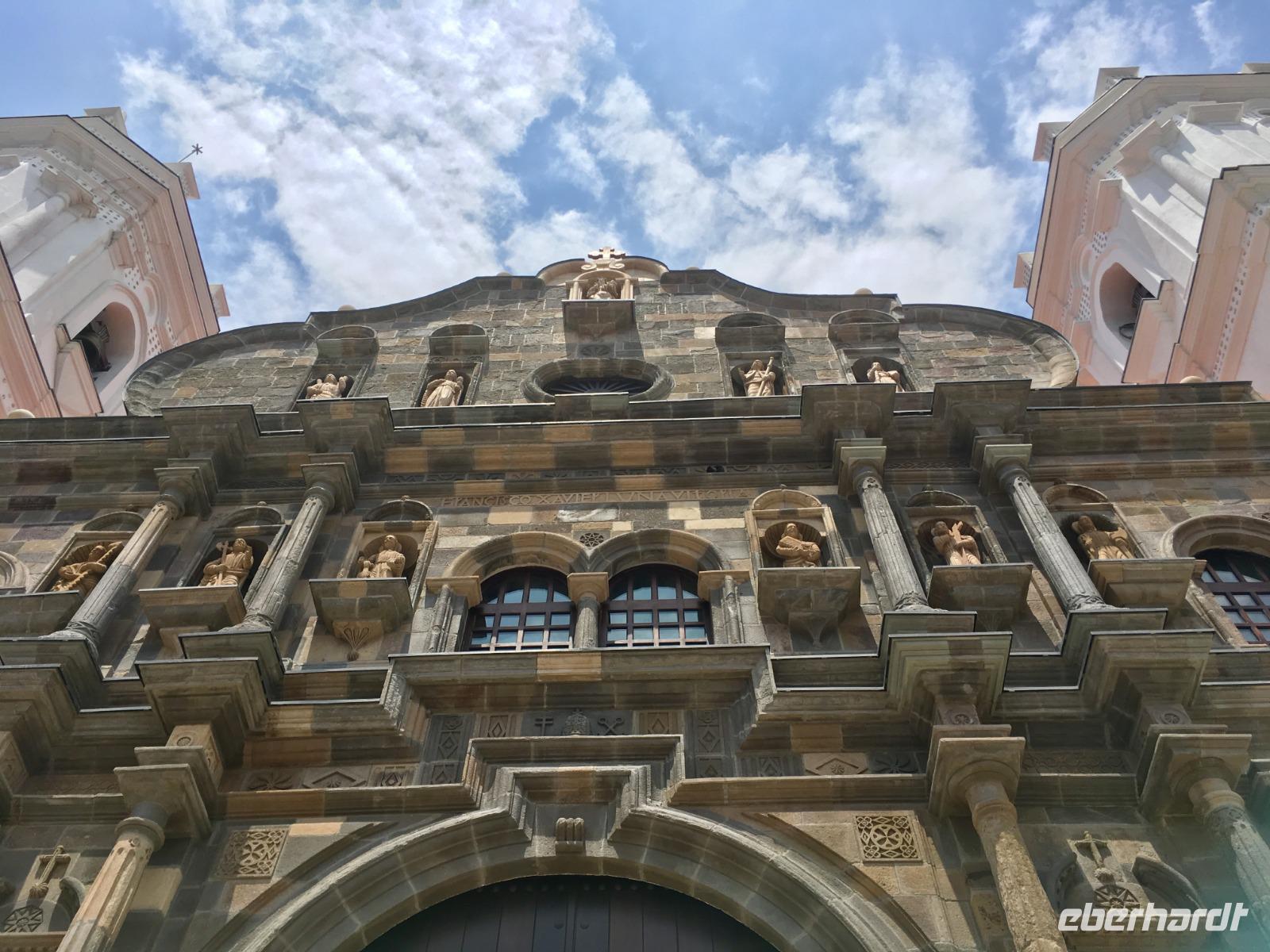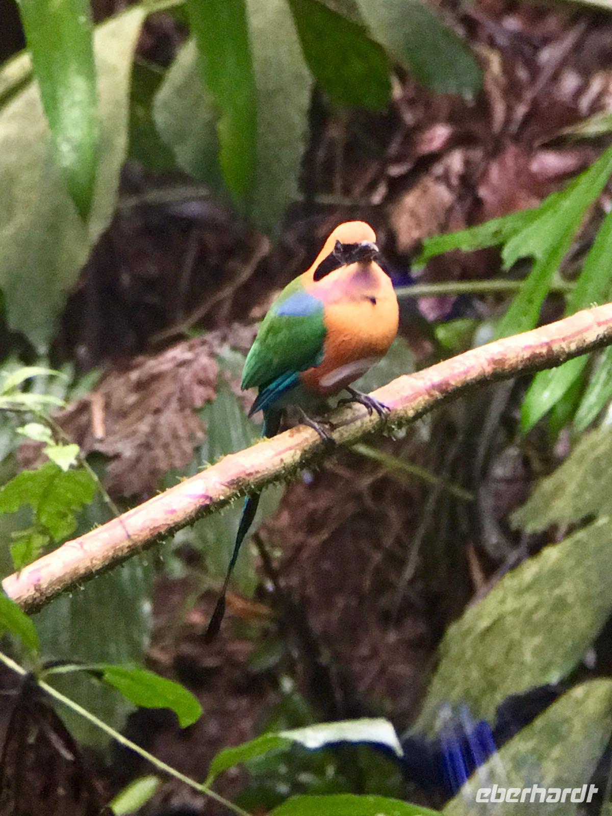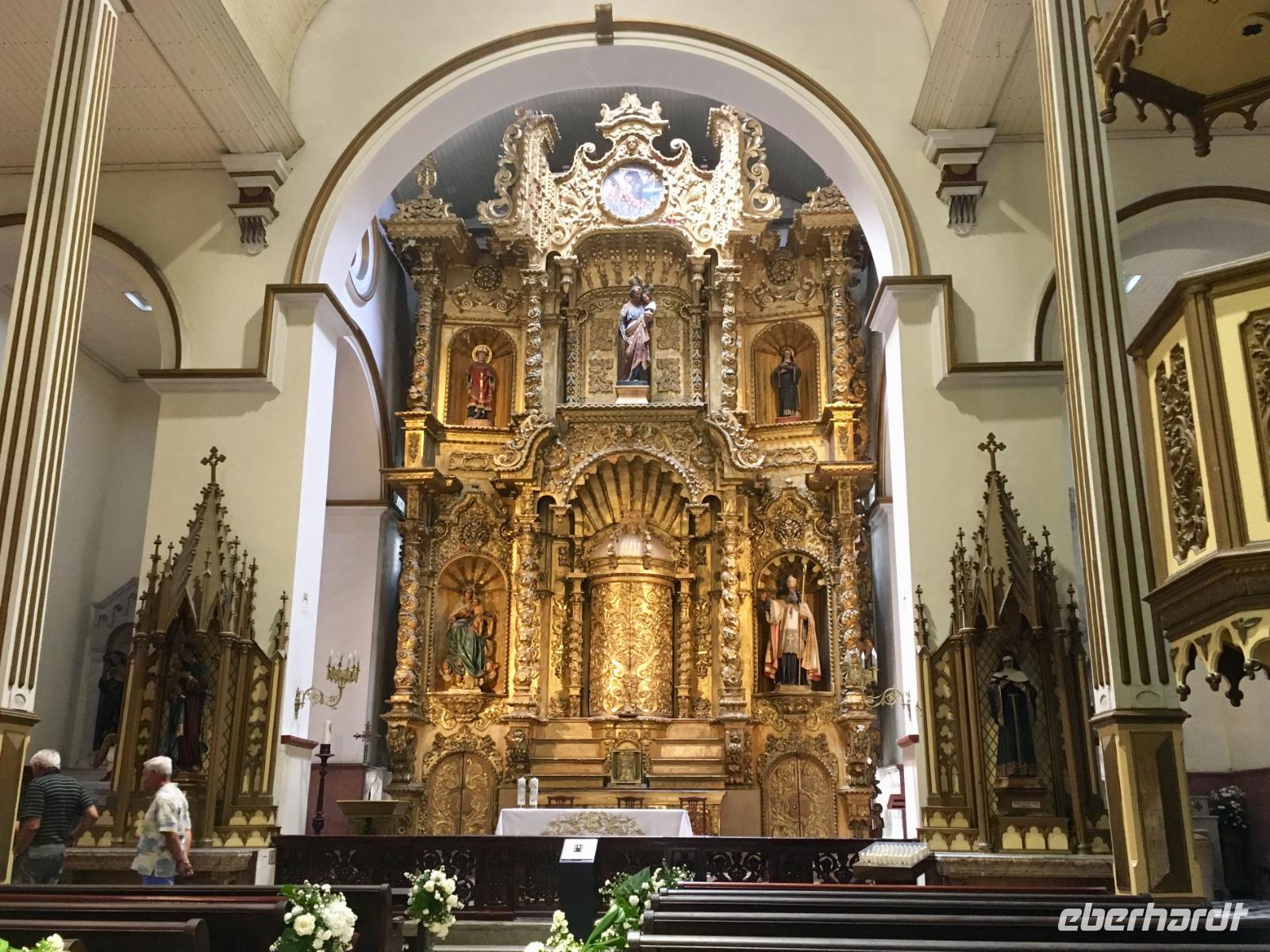 Alles klappt wieder perfekt und wir kommen puenktlich in San Jose an. Sogar unsere Koffer sind bei uns und Berny, unser Costa Rica Reiseleiter steht auch schon bereit. Hier ist der Bus ein wenig kleiner, dafuer ganz neu. Felix ist unser Fahrer der uns auch gleich ueber Cartago ins Orosi Tal faehrt. Es ist nicht weit entfernt von der Hauptstadt und wunderschoen gelegen. Unten im Tag besichtigen wir nun die Ruine der Kirche von Ujarras aus dem 17. Jahrhundert. Viele Erdbeben hat sie erlebt und viele franziskaner Moenche im Kloster beherbergt. Nun liegt sie stumm inmitten eines schoenen Parks wo wir auch unser Picknick einnehmen. Ach nein, wirklich, eine Kamera ist auf einem Sitz im Flugzeug sitzengeblieben ! So ein Pech, nun laufen aber die Handy heiss. ....unterdessen zwitschert es auch hier unaufhoerlich und die praechtige Natur mit ihren behangenen Riesenbaeumen, dem Bambus-Wirrwarr und den wunderbaren Blumen bietet eine perfekte Kulisse fuer die vielen Aufnahmen. Nach einer 20 minuetiger Fahrt sind wir beim Lankaster Botanical Garden. Nun sind wieder alle Sinne geweckt, denn so viele ausgefallene Orchideen haben wir noch nicht erlebt. Aber nicht bloss Orchideen, hier gibt es einen Schmetterlinggarten, einen japanischen Garten, einen Kaktus Garten, einen Farn Garten, Palmen Garten und dann einfach einen fantastischen Dschungel. Voegel und noch mehr Voegel...hat jemand einen Vogel gesehen...ja sogar den seltenen Blau-Scheitel-Mot-mot ! Bitte schaut Euch die Photogalerie an, denn sogar ich habe ihn bildlich erwischt ! Dieser Tag ist nun wirklich randvoll. Dring ! Die Kamera wurde gefunden und ist nun aufbewahrt. So was, das ist toll, morgen frueh werden wir gleich zum Flughafen fahren und Besitzer mit seiner Kamera vereinen. Unterdessen fahren wir wieder nach San Jose zurueck um in unser Hotel im Zentrum der Stadt ein zu checken. Auch hier werden wir verwoehnt mit schoenen Zimmer und weichen Laken auf den Betten. Das Abendessen nehmen wir heute im obersten Stock des Hotels ein. Die Aussicht auf die Stadt ist gigantisch, die Unterhaltung sehr angeregt und das Essen auch sehr lecker. Ein gelungener Tag verabschiedet sich.