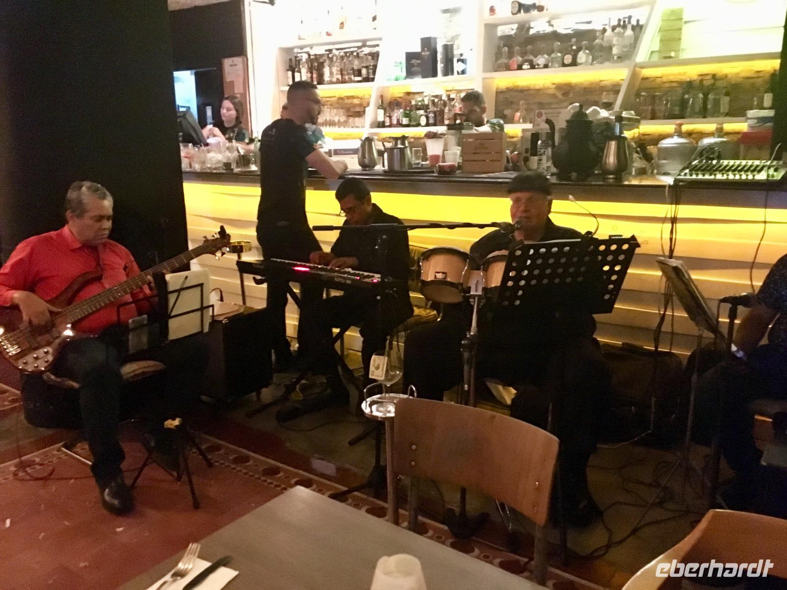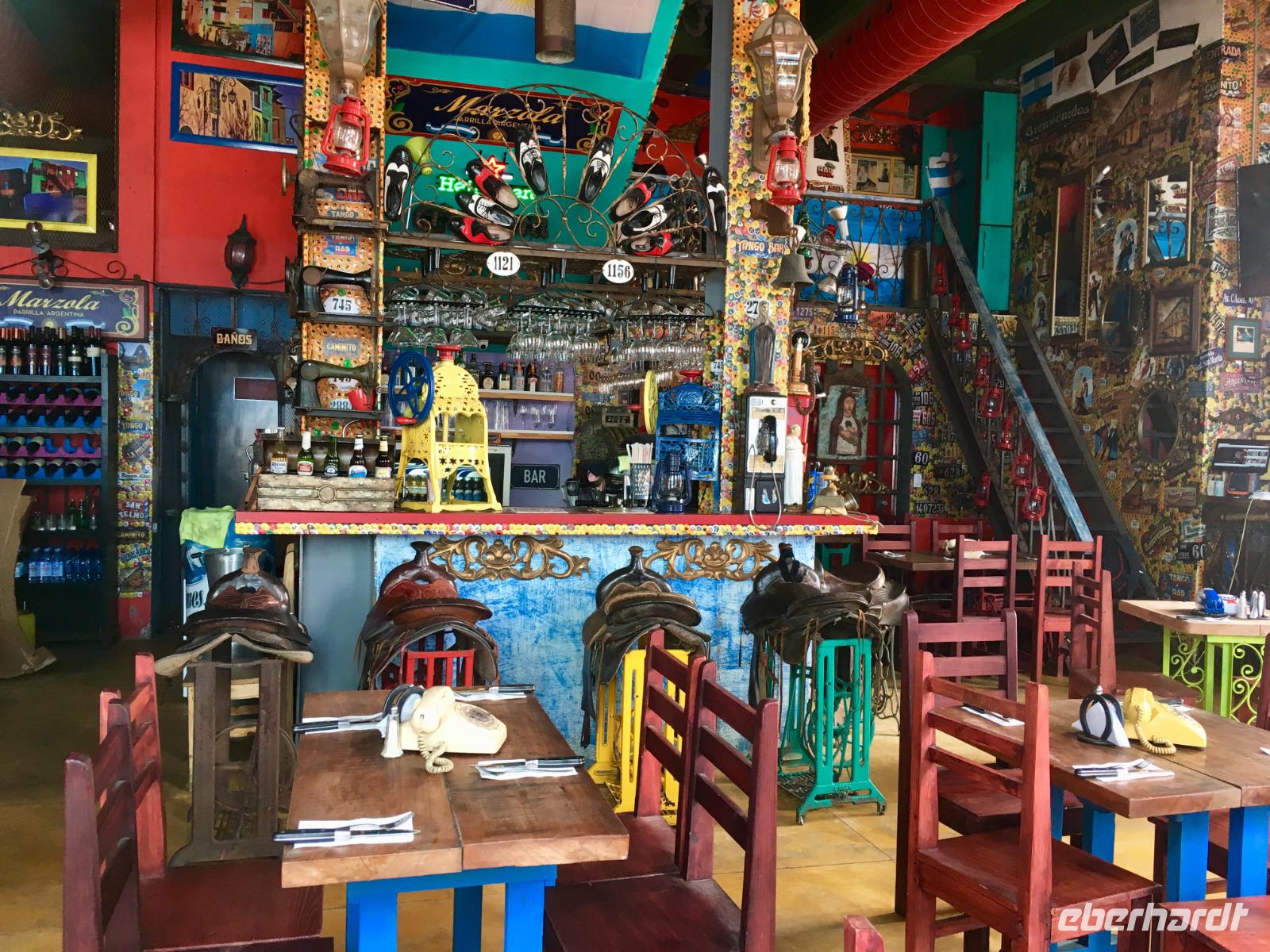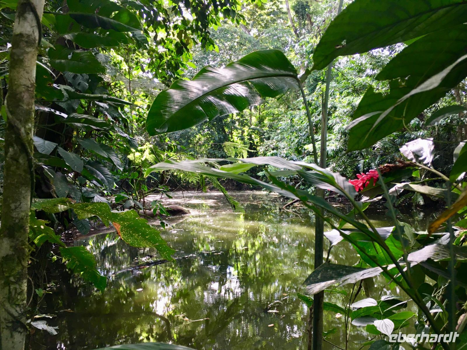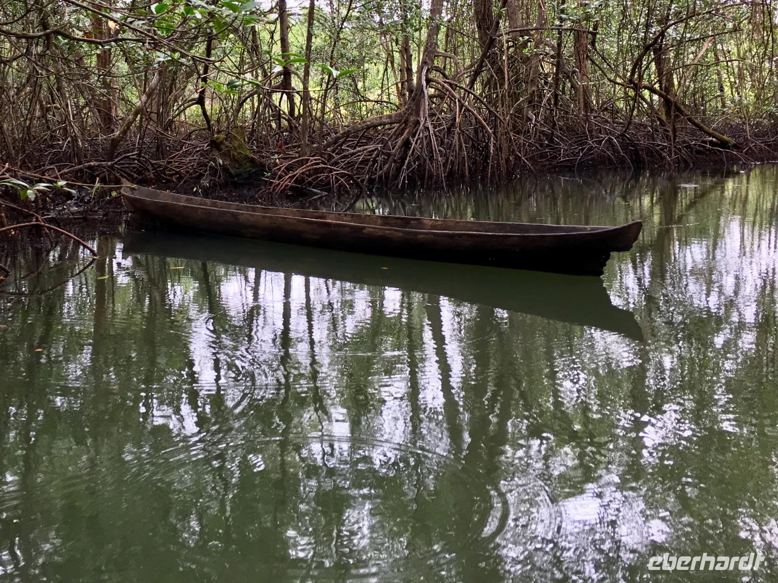 Die Suiten in diesem wunderbaren Hotel sind so schoen und gemuetlich und trotzdem freuen wir uns auf diesen Tag der Karibik. Blauer Himmel, super Fruehstueck gefolgt von kleinem Spaziergang zur Bootsanlegestelle. Dort wartet auch schon unser Kapitaen und er bringt noch eine blaue Plane aufs Gestell seines Motorbootes an. Aha, da drueben sind schon Wolken, oho zwei Minuten spaeter regnet es wie aus Kuebeln gegossen. Wir warten mal ab und siehe da, nach ca 15 Minuten hoert das prasseln wieder auf und wir steigen ins Boot ein. Los gehts in vollem Tempo durch die Inselwelt. Erst in den Mangroven fahren wir langsamer und langsamer bis zum Schrittempo, da der Wasserweg auch immer enger wird. Gespenstisch schaut es hier aus und dunkel. Ab und zu liegt wieder ein Faultier auf einem Ast, oder ein Voegelein hat sich verirrt, ein Kaiman lugt unter einer Wurzel hervor, zwei Krokodile kucken aus dem Teich wo ein Ibis gerade vorbeistolziert. Immer wieder sehen wir Einbaumkanus liegen und wundern uns wo deren Besitzer wohl sein moegen ? Hier, ein Indio-Mann steht auf einem Steg er laechelt uns zu und wir legen an. Unsere Tour im Regenwald kann beginnen. Erst wandern wir auf einem schmalen Pfad durch den Wald bis zu einer Hoehle. Au wei, soooo viele Fledermaeuse haengen da an den Waenden, bloss nicht WOW sagen und gleichzeitig hochgucken, meint unser Natur-Guide, denn die Fledermaeuse entleeren sich ploetzlich. Also gehen wir geschlossenen Mundes in die Hoehle hinein. Nur wenige, trauen sich bis weit in die Hoehle hinein, die anderen bleiben im Trockenen. Ploetzlich faengt draussen der Regen wieder an, aber wie. Hier uebernachten koennen wir nicht, also laufen wir so schnell wie moeglich auf dem, nun super matschigen und glitschigen, Weg zurueck zum Haus. Wie Lehmleute schauen wir aus und werden auch gleich abgespritzt zur Reinigung unserer Beine. Nur gut, dass es hier so warm ist, so trocknet alles wieder sehr schnell. Mit dem Motorboot gehts nun wieder aus dem Mangroven Wald hinaus auf eine andere Insel. Dort steht ein Restaurant auf Stelzen im Wasser wo wir auch unser Picknick einnehmen. Danke Eberhardt fuer das feine Bierchen dazu. Das Sandwich rutscht damit viel besser hinunter ! Die vielen Fische, die uns von unten zuschauen wollen wir nun auch mit der mitgebrachten Schnorchelausruestung gebuehrend betrachten. Das Wetter hat sich wieder erholt und die Fische tanzen um uns herum. Sogar einige schoene Korallen haben sich unter dem Restaurant angesiedelt. Unser Tag ist aber noch nicht zu Ende, mit dem Motorboot fahren wir nun wieder auf die Bastimientos Insel wo wir nun eine kleine Wanderung durch die Insel unternehmen um die roten Pfeilgiftfroesche zu sehen. Tatsaechlich sehen wir gleich mehrere. Jedes Froeschchen ist anders getupft aber allesamt sind sie leuchtend rot und sehr, sehr klein. Auf der anderen Inselseite ist der wunderbare Strand, idyllisch, romantisch, wild, wie auf einer Postkarte. Jeder geniesst die Stunde dort auf seine Art und Weise. Erst spaet nachmittags sind wir wieder zurueck in unserem schmucken Hotel. Was fuer ein ereignissreicher, toller Tag heute. Karibik pur. Das Abendessen mit Live Musik auf dem Wasser ist wieder koestlich. Ach wie schoen ist das Reisen.